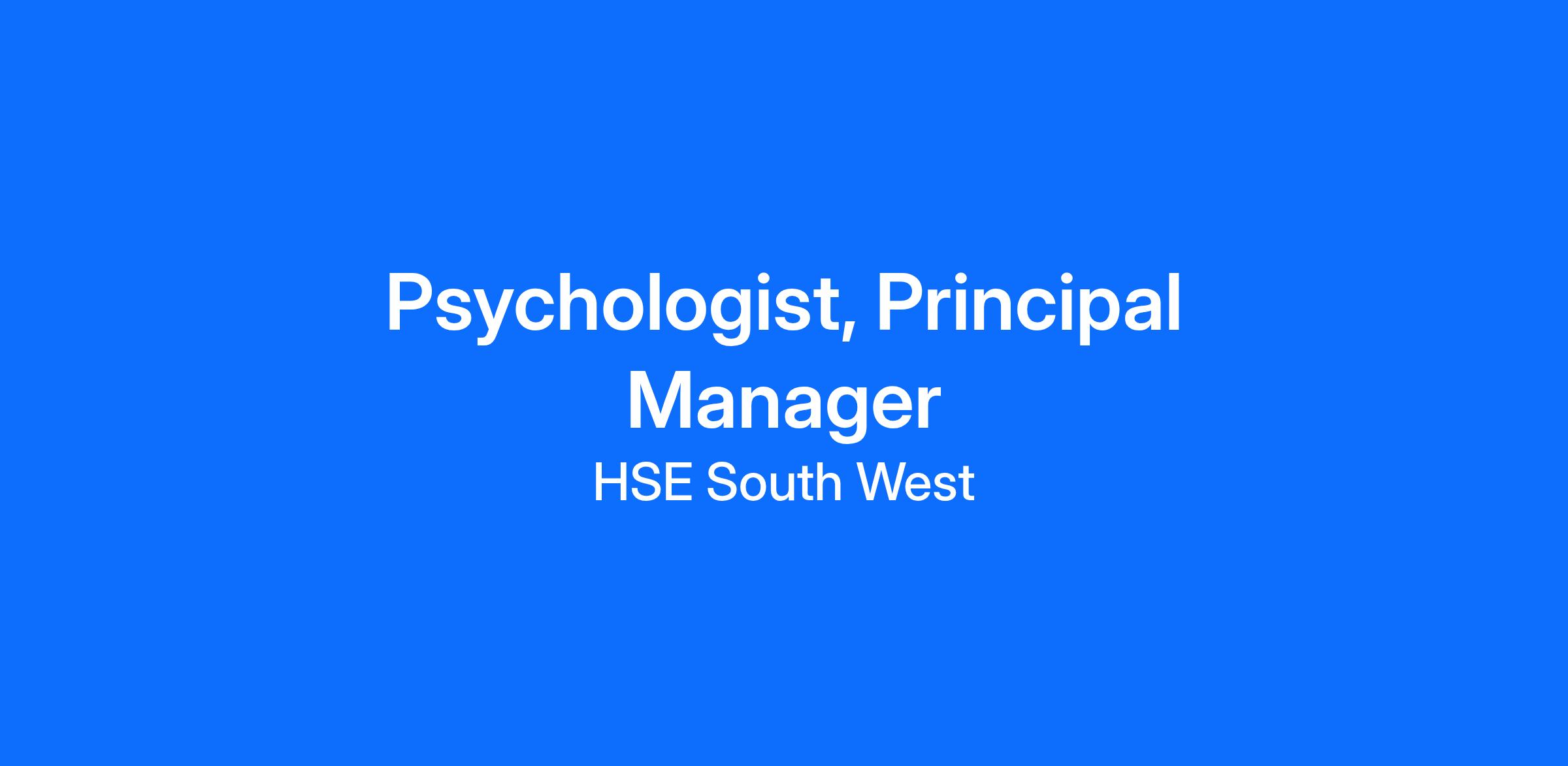 A panel may be formed as a result of this campaign for Psychologist, Principal Manager for HSE South West from which current and future, permanent and specified purpose vacancies of full or part-time duration may be filled.