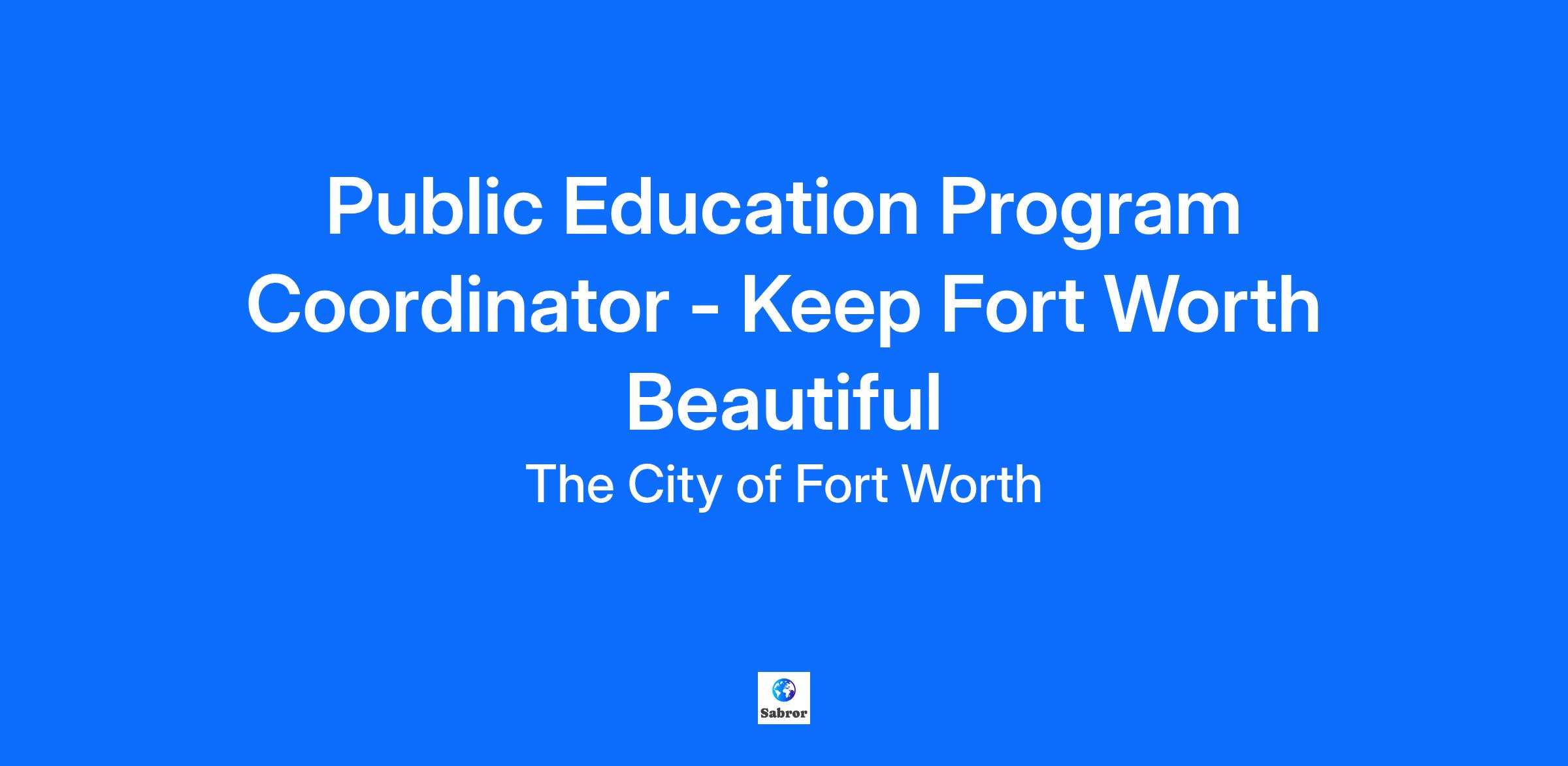Pay Range: $31.52 - $40.98/hr. | $65,563 - $85,232 annual compensation Job Posting Closing on: Tuesday, December 2, 2025 📅 Workdays & Hours: Monday – Friday 8 am – 5 pm; Some evening/weekend work required. Benefits for this position include: 11 Paid Holidays, Medical, Dental, Vision, Paid Time Off, Pension Plan, and Professional Development Opportunities. Find Out More! The City of Fort Worth is one of the fastest growing large cities in the U.S. Our employees serve the needs of over 1,000,000 residents, promoting our values of exceptional customer experience, mutual respect, embracing our diversity, continuous improvement, ethical behavior, and accountability. 🌆 A Public Education Program Coordinator job is available with the City of Fort Worth Environmental Services Department. Environmental Services works to safeguard the environment and foster sustainable, thriving neighborhoods through education and engagement with the community to manage waste, advocate for health and safety, and reduce incidents of environmental pollution. This position primarily serves as a Keep Fort Worth Beautiful coordinator, leading and assisting multiple large-scale, public-facing projects throughout the year and maintaining the organization’s programs. This position is also part of the Planning & Data Analytics team, supporting data-driven initiatives through data analysis, metrics gathering, GIS mapping, research, and local environmental and neighborhood-level studies. The successful candidate must be able to use computer software and technology to support the overall planning process, which includes development, implementation, and evaluation/measurements of plans, and possess excellent interpersonal skills to work with a diverse set of internal and external customers. Minimum Qualifications: Bachelor’s degree from an accredited college or university with major course work in Business Administration, Public Administration, Public Relations, Journalism, Social Sciences, Marketing, Communications, or a related field Three (3) years of increasingly responsible experience in public relations, volunteer management, public education, or community engagement, including one (1) year of administrative and budgetary responsibility Valid Driver's License Preferred Qualifications: Strong interpersonal and communication skills to foster positive relationships with internal and external partners Experience or interest in leading and supporting outreach and education activities and events on behalf of a Keep America Beautiful affiliate Strong writing and editing skills for developing a variety of public-facing and internal documents Skilled in comprehensive data analysis, statistics, data visualization, and presentation of results in written and oral presentation methods Project management skills and the ability to work collaboratively to manage multiple programs, projects, and initiatives Proficient in MS Office and experience with GIS, Adobe InDesign, or other document layout and graphic design software The Public Engagement Program Coordinator job responsibilities include: Supervises staff, which includes prioritizing and assigning work; conducting performance evaluations; ensuring staff is trained; ensuring employees follow policies and procedures; maintaining a healthy and safe working environment; and, making hiring, termination, and disciplinary decisions or recommendations. Coordinates volunteer needs and opportunities to support Keep Fort Worth Beautiful programs; including individuals, board members, schools, non-profits, stakeholders, businesses, and other local government agencies. Creates, develops, and provides training and presentations to volunteers, city staff, and public to promote volunteer engagement. Creates and develops communication to promote volunteer opportunities and engagement. Gathers and reports pertinent data relevant to planning activities and provides professional assistance to supervisory and management staff. Researches and analyzes data to identify trends or needs, and makes recommendations or develops strategies to address needs. Assists Senior Planners in performing special studies in program evaluation and compiles statistical data. Develops and reviews City ordinances and other documentation related to environmental planning. Educates residents and community members on environmental topics and City resources. Other duties include fulfilling daily and short-term project requests, technical writing (to include grants and reports), project evaluation and implementation, program management, and data management Working Conditions Depending on assignment, positions in this class typically require touching, talking, hearing, seeing, grasping, standing, stooping, kneeling, crouching, reaching, walking, and repetitive motions. Physical Demands Sedentary Work – Depending on assignment, positions in this class typically exert up to 10 pounds of force occasionally, a negligible amount of force frequently, and/or or constantly having to lift, carry, push, pull or otherwise move objects. Sedentary work involves sitting most of the time. Jobs are sedentary if walking and standing are required only occasionally and all other sedentary criteria are met Apply Now! Come be part of something special in Fort Worth. 🌟 Conditions of Employment The City of Fort Worth is proud to be an Equal Employment Opportunity employer. It is the policy and practice of the City to recruit, hire, train and promote a diverse workforce without regard to race, color, religion, sex (including pregnancy and gender identity), national origin, political affiliation, sexual orientation, marital status, disability, genetic information, age, membership in an employee organization, parental status, military service, or another non-merit factor. The City of Fort Worth is committed to full compliance with the Americans with Disabilities Act. Reasonable accommodations may be made to enable qualified individuals wi