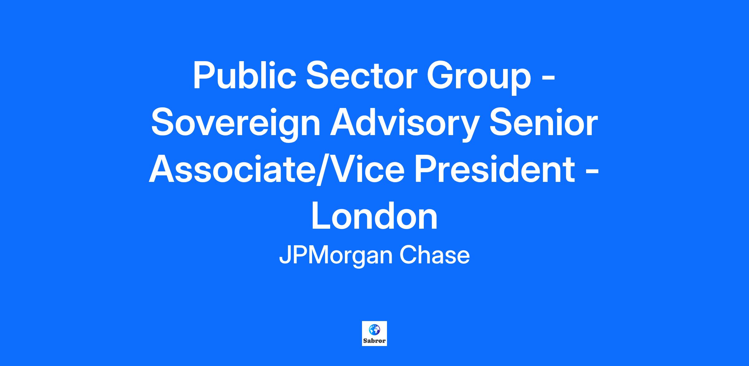 Business description: The Sovereign Advisory Group advises central banks, ministries of finance and economy, and multilateral institutions globally on a wide array of solutions, including credit ratings management, broader market and multilateral engagement, market-based funding strategies. The work entails stakeholder management at the highest levels of government, leveraging J.P. Morgan’s diverse lines of business to provide sovereign clients with best-in-class service and strategic guidance. Key Responsibilities The successful candidate will play a vital and accountable role in all aspects of supporting and leading sovereign advisory mandates. The Associate / Vice President’s responsibilities will include but not be limited to the following: Daily mandate execution and ratings management for sovereign clients Preparation and oversight of presentation materials, memorandum, briefing notes, pitches and other materials for use in interaction with CRA3 and other strategic client dialogue Detailed rating analysis for existing sovereign clients, including sovereign balance sheet, macroeconomic, contingent liability and political analysis Maintain and develop relationships with existing sovereign clients and actively market advisory services to key target clients Requirements 6-7 years minimum professional work experience Prior work experience in a Sovereign Advisory or Public Sector field (investment bank, institutional investor, multilateral development bank, official sector, rating agency) is a core requirement Familiarity with the full spectrum of sovereign financial accounts, encompassing public sector and central bank balance sheets, SOE/GRE inter-linkages with general government finances, indebtedness arbitrage between government and public sector entities Proven track record and a genuine interest in sovereigns Strong academic background in undergraduate level economics, international relations Experience in client interfacing roles, with a preference for candidates who have managed mandates previously Experience in product development and innovation Exceptional written and verbal communication skills in English Deep familiarity with credit rating agency models Ability to draft high quality presentations and documentation Ability to manage and prioritize workload during periods of high intensity Comfort in, and commitment to strong teamwork environment; demonstrated ability to mentor, coach, and develop junior team members Fluency in Mandarin and / or Spanish preferred, but not mandatory Additional Information: Sovereign Advisory is part of the broader Public Sector Group, which focuses on managing some of the most senior relationships of the firm with public sector institutions across multiple businesses. Our clients include central banks, sovereign wealth funds, public pension funds and other sovereign-related investors, governments, policy-related financial institutions, and international institutions. We build relationships with clients’ senior leadership including strategic decision makers, investment management, and risk management. We partner across Sales, Trading, and Corporate and Investment Banking businesses at J.P. Morgan to develop and create solutions that fit the needs of our clients. Our work is global in terms of geography and firm-wide in terms of products, linkage and interaction with product, legal, credit and risk teams. The Global Corporate Bank (GCB) manages J.P. Morgan's relationships with large corporations, financial institutions and public sector organizations globally. We help our clients meet their objectives in financing, risk management, investments, and in improving operational efficiency in how they manage their finances. Clients benefit from dedicated coverage provided by experienced bankers, who deliver the firm's extensive product platform and presence in more than 60 countries worldwide. The Global Corporate Bank is part of JPMorgan Chase & Co. (NYSE: JPM), a global financial services firm with assets of over $2.7 trillion. The Public Sector Group was created to expand J.P. Morgan's business with the public sector client segment, which for more than a century has been a large and important client set for the firm.