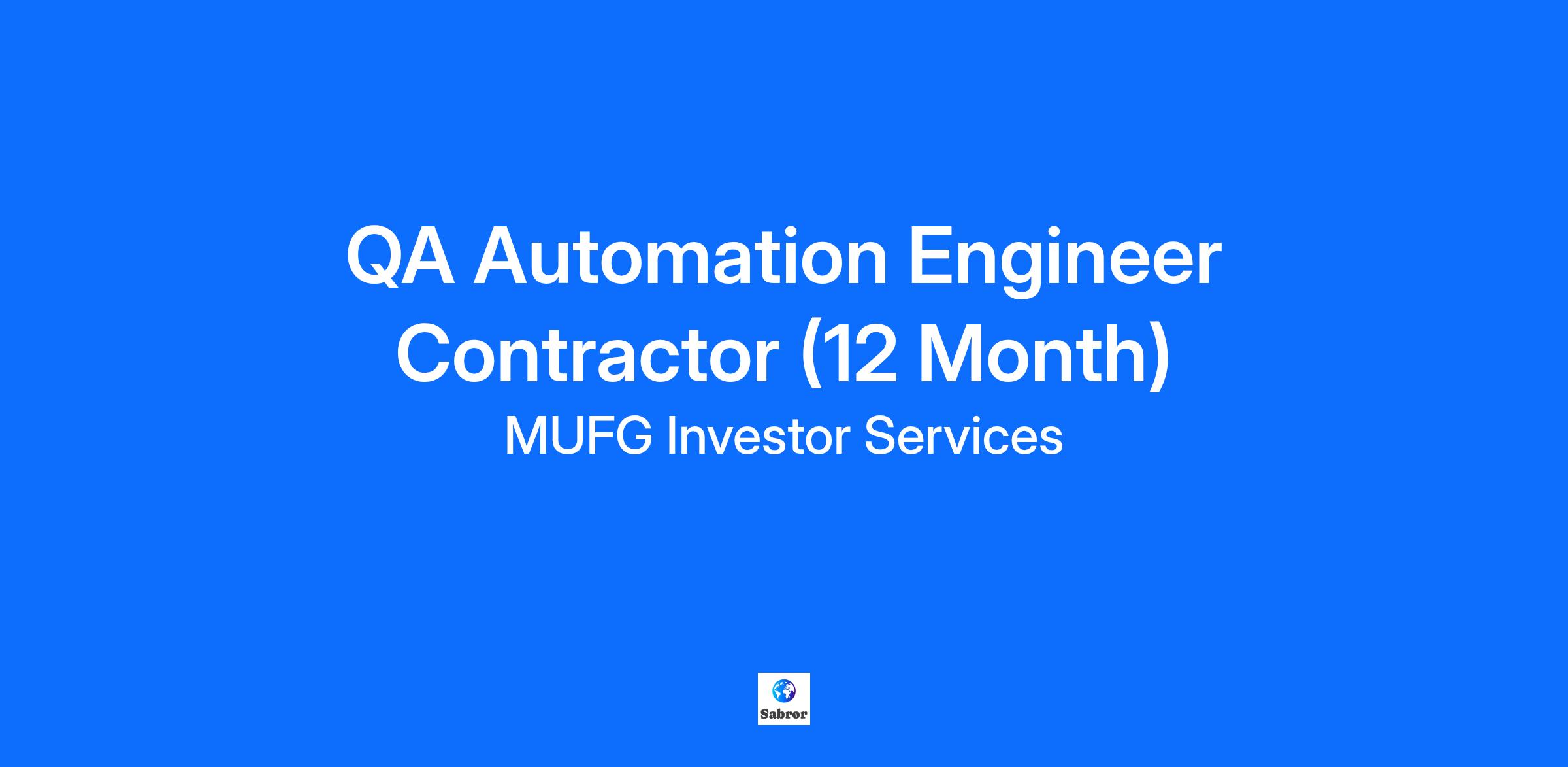 QA Automation Engineer Contractor (12 Month)