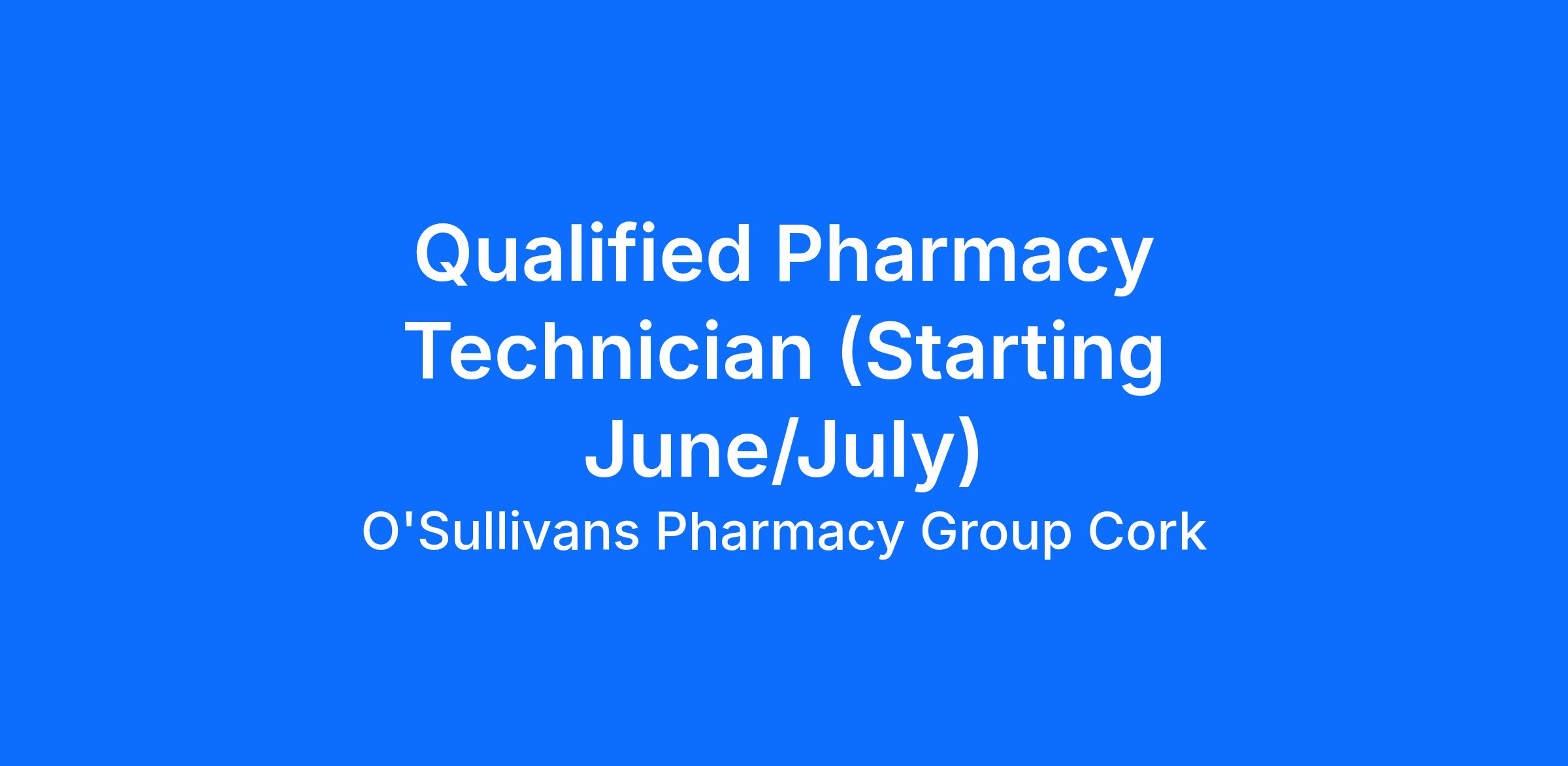 We are hiring for a 6 month to a year Pharmacy Technician for our Douglas Store next to Centra South Douglas Rd, Cork, for Maternity Leave Cover