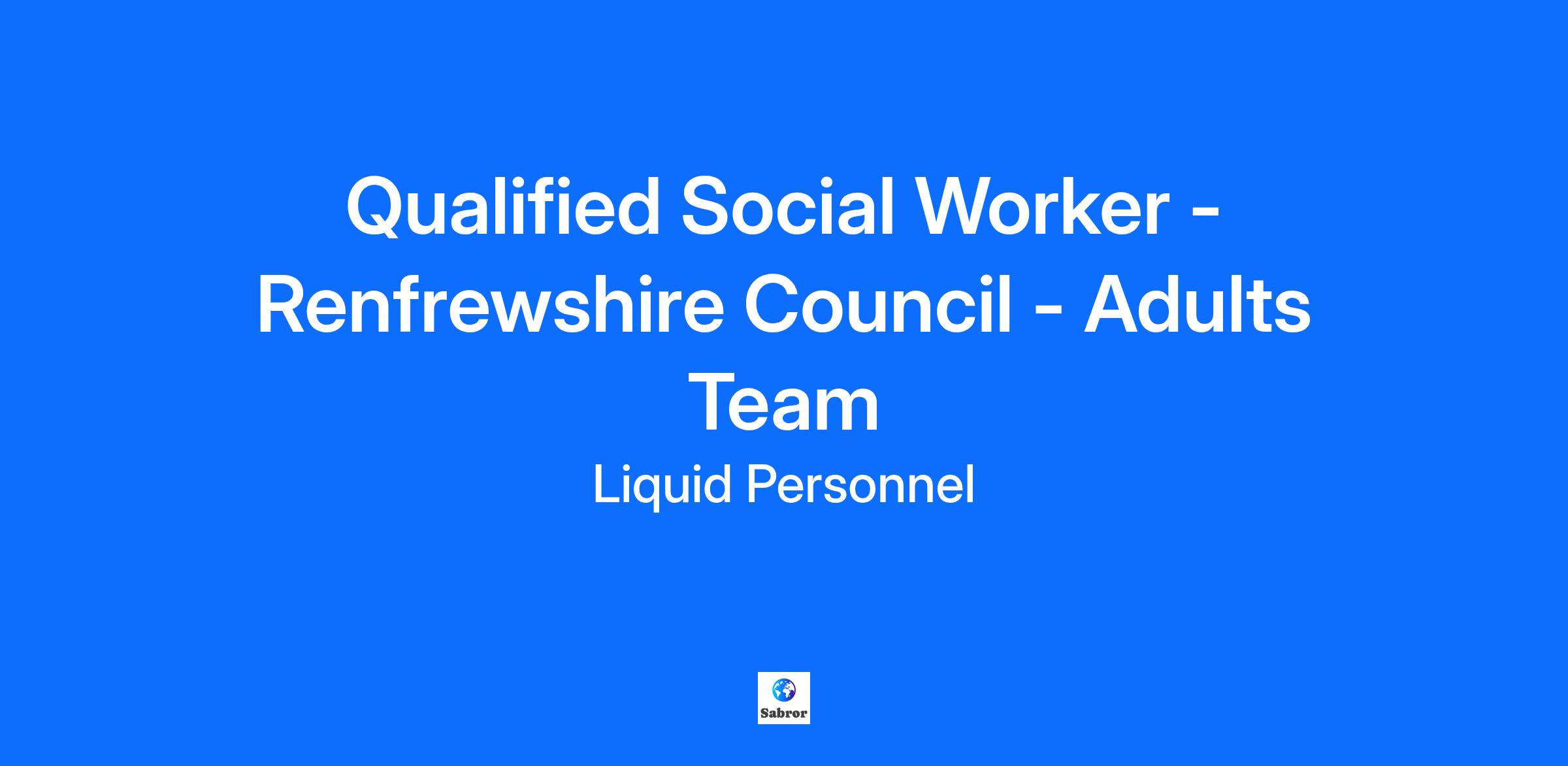 Job Title: Qualified Social Worker - Adults Team Location: Renfrewshire Rate: £35.00 An exciting job role has recently become available at Renfrewshire Council. They are looking for a new member for their Adults Team. What will your responsibilities be? As a Social Worker within the hospital-based Social Work Team, you will deliver a comprehensive range of services aimed at promoting the welfare and support of adults and older people. You will supervise various statutory orders as required, ensuring proper reporting and accountability to relevant bodies. Additionally, you will provide these services in accordance with current legislation and CHCP procedures and standards. Benefits of the role: Hybrid working available Diverse caseload Supportive team Qualifications and Experiences: To be eligible for this role, you must have Social Work England registration and be eligible to work in the UK. Additionally, you need to hold a full UK driving licence and possess post-qualified experience. A degree or equivalent qualification in Social Work is also required. How to apply? If this is a job for you, feel free to click apply below or if you want to learn more about it, please contact 0345 241 9590. Why Liquid Personnel? New ‘Faster Pay’ service getting you paid more quickly Twice weekly payroll Free DBS and compliance service Access to exclusive roles that aren’t available from other agencies Free access to Liquid’s exclusive social work training and CPD portal Your own dedicated consultant with extensive social work knowledge Access to a wide selection of social work positions across the UK “Refer a Friend” bonus – get £500 for each social worker you refer who we successfully place* “Find your own job” bonus – get £250 for bringing your own position to us * Liquid Personnel is an equal opportunities employer. Liquid Personnel Ltd is acting as an Employment Business in relation to this vacancy. *Terms and conditions apply to our bonus schemes. Reasonable Adjustments: If you consider yourself to have a disability or require any reasonable adjustment during the recruitment process or within the workplace, please highlight this at the earliest opportunity by contacting our team. With this information, we will provide appropriate support to you throughout the process and into your work placement. We are unable to support or accept applications from candidates who are residents within the Red or Amber list of the Code of practice for the international recruitment of health and social care personnel in England, based on the World Health Organisation (WHO) Workforce Support and Safeguard List 183713 23425