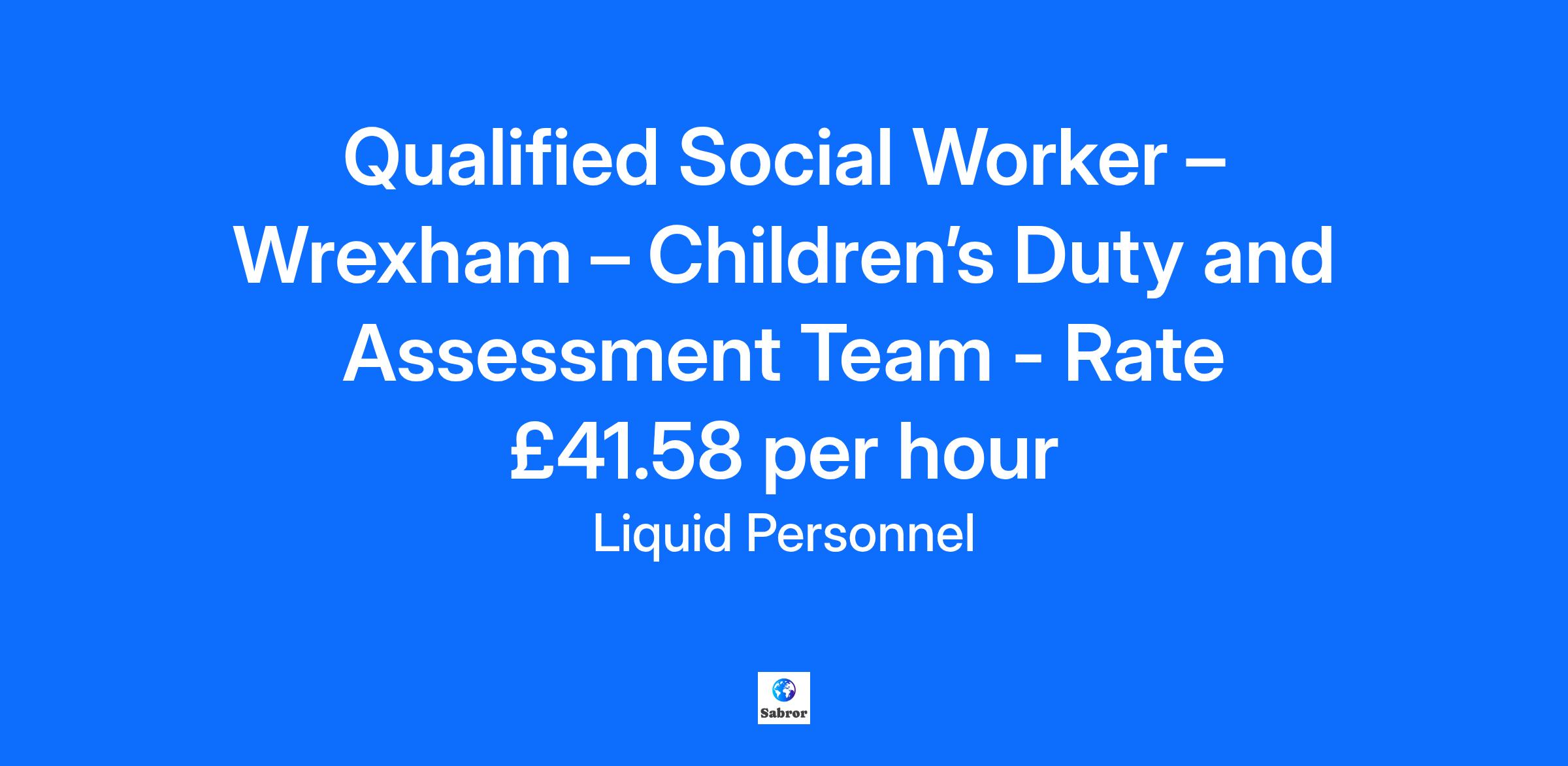 Job Title: Qualified Social Worker – Duty and Assessment Team Location: Wrexham Rate: £41.58 per hour Liquid Personnel is currently recruiting experienced Qualified Social Workers to join a busy team at Wrexham within the Duty and Assessment Team. To work in this role you must have Social Work England registration, be eligible to work in the UK, hold a qualification in Social Work at degree level, and have post-qualified experience. Responsibilities: Working collaboratively with other professionals/agencies to meet the identified needs of children, young people, and their families including the MASH Service, Police, and Education Services. Working within a fast-paced Duty Team and acting on referrals from the MASH (Multi Agency Safeguarding Hub). Attending to Section 47 enquiries. Completing Single Assessments. Benefits: * Flexible/Hybrid working opportunities * Manageable caseload * Excellent rate of pay * Condensed working and part-time roles can be discussed Qualifications and Experience: * Social Work England registration * Eligible to work in the UK * Hold a full UK licence * Post-qualified experience * Degree level or equivalent in Social Work How to apply? If this is a job for you, feel free to click apply below or if you want to learn more about it, please contact 0345 241 9590. Why Liquid Personnel? * New ‘Faster Pay’ service getting you paid more quickly * Twice weekly payroll * Free DBS and compliance service * Access to exclusive roles that aren’t available from other agencies * Free access to Liquid’s exclusive social work training and CPD portal * Your own dedicated consultant with extensive social work knowledge * Access to a wide selection of social work positions across the UK * “Refer a Friend” bonus – get £500 for each social worker you refer who we successfully place* * “Find your own job” bonus – get £250 for bringing your own position to us * Liquid Personnel is an equal opportunities employer. Liquid Personnel Ltd is acting as an Employment Business in relation to this vacancy. * Terms and conditions apply to our bonus schemes. Reasonable Adjustments: We are unable to support or accept applications from candidates who are residents within the Red or Amber list of the Code of practice for the international recruitment of health and social care personnel in England, based on the World Health Organisation (WHO) Workforce Support and Safeguard List. GH: 17966 BH: 172974