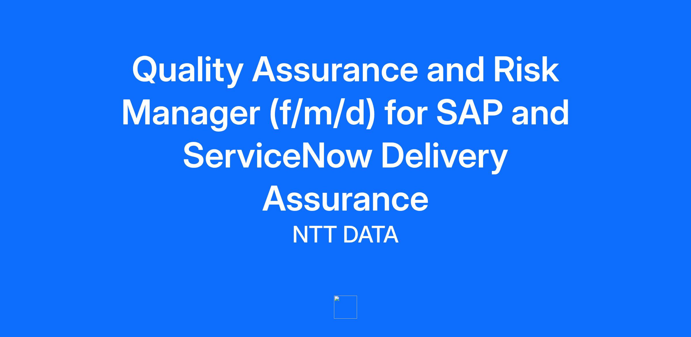 Quality Assurance and Risk Manager (f/m/d) for SAP and ServiceNow Delivery Assurance Full time Empowering You – to feel our passion for technology As NTT DATA Business Solutions, we are more than just a company. We are a team of passionate people who drive innovation – from advisory and implementation to managed services and beyond. With SAP at our core and a powerful ecosystem of partners, we continuously improve solutions and technology to make them work for companies – and for their people. Our success is based on TOGETHERNESS, INNOVATION, TRUST, and SUSTAINABILITY – this is the heart of our corporate culture. As part of the global NTT DATA Group, one of the top IT service providers worldwide, we stand for our open and sustainable acting. More than 16,700 employees from more than 90 nations in over 30 countries show that diversity is integral to our DNA and that we live tolerance and respect every day. People are the key to our success. We believe that every individual can make an important contribution and are therefore constantly on the lookout for talented people who can actively strengthen our team. ARE YOU READY TO BREAK NEW GROUND? Location: Europe What makes us special: We have a holistic view of the individual needs of our employees. Here you can find a detailed overview of our wide variety of benefits during different life phases. ■ Flexible working hours and locations: workation, mobile working, part-time models, sabbaticals, etc. ■ Your further development by plan: topic-specific induction, targeted career development based on career models, programs and your own academy ■ Family first: e.g. daycare allowance, paid maternity leave and paternity network ■ SAP Platinum Partnership: strong SAP partnership, large knowledge network, and SAP Learning Hub and certification opportunities. ■ We take care: e.g. 25% subsidy for company pension plan, company health management and cooperation with fitness providers ■ We help you get from A to B: company car (depending on your role), discount on public transport and bicycle leasing via JobRad®. Do you love challenges? As Quality Assurance and Risk Manager in the field of Delivery Assurance for SAP and ServiceNow Project and Managed Services, you will be responsible for: ■ Collaborating with NTT DATA regions to conduct risk and quality assessments for new and existing large customer engagements, ensuring SAP and ServiceNow-specific risks are addressed. ■ Providing feedback on the Deal Governance process to ensure that new projects and services meet agreed standards and quality expectations. ■ Supporting Red/Amber projects by developing and executing "Back to Green" action plans, including internal management reporting. ■ Managing customer escalations: working with regions to define the correct escalation path, supporting de-escalation managers, addressing root causes, and restoring customer confidence. ■ Defining, together with the regions, the necessary quality checks for SAP and ServiceNow services to ensure quality, speed and profitability Convince us with your potential! Your 10 years of work experience in Delivery Assurance, Project and / or Services Management proves your: ■ Bachelor’s degree in IT, Computer Science, or a related field ■ Expertise in SAP and ServiceNow within complex enterprise environments ■ Proven delivery assurance skills, supported by certification (e.g. Six Sigma) ■ Strong project/service management and leadership abilities ■ Solid analytical and problem-solving skills, with a data-driven approach ■ Excellent communication and collaboration with technical and business stakeholders ■ Commitment to continuous improvement, attention to detail, and adaptability under pressure ■ Knowledge of IT standards and regulations (ISO 9001, CMMI, GDPR) Do you have questions? We look forward to receiving your complete application documents stating your earliest start date. Get empowered by NTT DATA Business Solutions! Josephine Krueger Tel.: +49 1736966811 E-Mail: careers-solutions-de@nttdata.com Do you have questions about diversity, equity, and inclusion at NTT DATA Business Solutions? You can find more information here. Feel free to contact our colleagues at diversity-solutions-de@nttdata.com We transform. SAP® solutions into Value