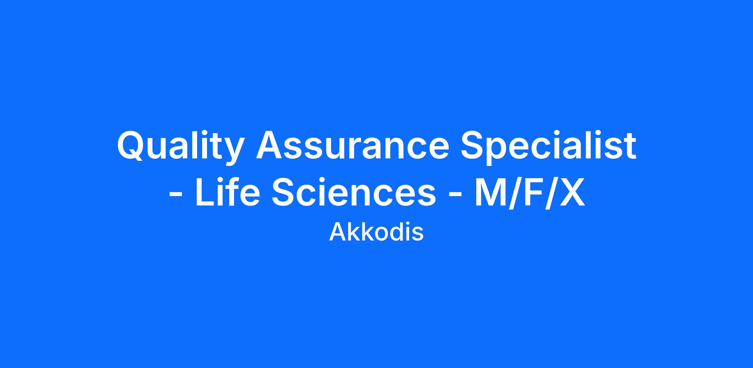 Quality Assurance Specialist - Life Sciences - M/F/X