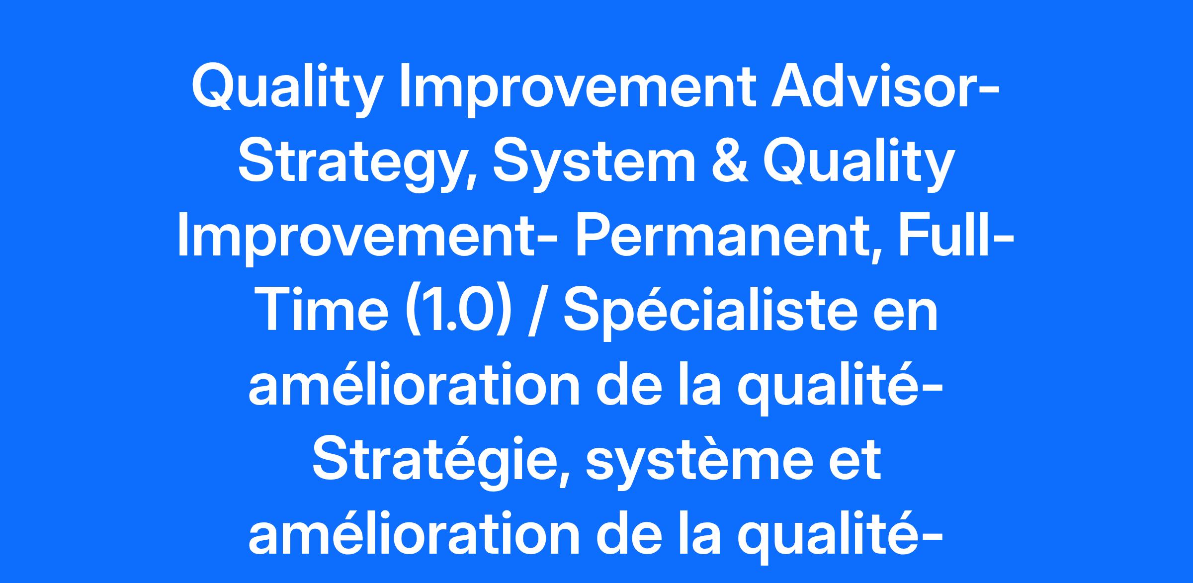 Compensation Pay Range: $50.26-$59.13 Job Description: If you are a current CHEO employee with access to Workday, please apply to this posting via the Workday application as an internal applicant using the Jobs Hub. To successfully apply for this position, please submit your application by 11:59 pm the day before the advertised closing date in the posting to ensure your application is received. Ottawa is built on un-ceded Algonquin Anishinabek territory. The peoples of the Algonquin Anishinabek Nation have lived on this territory for millennia and we honour them and this land. Their culture and presence have nurtured and continue to nurture this land. CHEO also honours all First Nations, Inuit and Métis peoples and their valuable past and present contributions to this land. CHEO is one of the few stand-alone, global leaders in pediatric health and is home to more than 6,500 staff, clinicians, scientists and researchers, as well as volunteers – all of whom work together to help children and youth achieve their best lives. Within its own walls and through partnerships with community providers, CHEO has transformed from a 20th century acute care hospital into a 21st century integrated child and youth health system. Ranked in the top 1% of Canadian hospitals for the digitization of its clinical infrastructure, CHEO combines excellence in clinical care, research, and education to advance seamless care that’s provided where, when, and how it is needed. CHEO’s Research Institute is dedicated to world-class clinical, translational, and basic science research covering a wide range of children’s health concerns. CHEO has been named Canada’s best health-care employer by Forbes in 2024 and 2025 and is ranked second among Canadian hospitals on its list of Canada’s Best Employers for multiple consecutive years. For the 14th consecutive year in a row, the editors of Canada's Top 100 Employers has recognized CHEO as a top employer in the National Capital Region. Every year CHEO helps more than 500,000 children and youth from Eastern Ontario, western Quebec, Nunavut and Northern Ontario. POSITION SUMMARY The Quality Improvement Advisor within Strategy, System & Quality Improvement (SSQI) is responsible for the following: training and coaching in Lean methodologies, communications, quality, project risk management, project coordination, documentation and ensuring the adoption and use of Lean improvement methodologies. ' MAIN RESPONSIBILITIES Guide and facilitate teams using Lean & Quality improvement methodologies throughout the organization. Develop templates for CHEO’s implementation and use of Lean & Quality improvement methodologies. Deliver Lean education using a variety of adult learning modalities including hands-on exercises and simulations. Create, customize, and modify existing Lean training materials for the health care industry based on needs assessments and knowledge of industry best practices. Provide individual mentoring and coaching to teams involved in process improvement initiatives, incorporating change management strategies to enhance their effectiveness in their respective areas. Lead or support Corporate projects using standard project management standards, Define, Measure, Analyze, Improve, Control (DMAIC) methodology and CHEO methodologies / templates. Work in collaboration with Decision Support in determining indicators and data elements required with each process improvement project. Ensure that employees are provided with and use the appropriate training and/or procedures, equipment, material to perform assigned duties. Perform other related duties as assigned by Manger or Director. QUALIFICATIONS Degree in Health Administration/Industrial Engineering or similar program (Essential)* Lean Green Belt (or commitment to obtain within 6 months) (Essential) Project Management Professional (PMP) Certification by a recognized organization (or demonstrated commitment to working towards completing designation) (Preferred) Minimum three (3) years managing Lean project portfolios, leading team training, and providing focused mentoring and coaching (Essential) Demonstrated proficiency and application of Lean/Quality Improvement methodologies (Essential) Experience with Lean deployment/Quality Improvement in the healthcare sector (Preferred) Strong fundamentals in project management (Preferred) Leadership experience, formal/informal (Preferred) The ability to guide teams in gathering feedback from families and patients on process improvements (Essential) Experience developing training curricula and associated training materials, particularly using principles of adult education (Preferred) Dynamic approach to presentation/training at all levels of an organization with the ability to translate concepts into practical application (Essential) Demonstrated analytical, problem solving, and change management skills (Essential) Exceptional computer skills including operation of Microsoft Office, Visio, Microsoft Project, or other value stream mapping computer tools (Essential) Criminal Record Check (Level 1) (Essential) Bilingualism (French/English) (Preferred) * Experience and formal training combined with demonstrated performance and ability may substitute for academic requirements Effective March 29, 2021, CHEO will conduct a more comprehensive pre-screening and evaluation process. This process may include more varied and multidimensional testing such as a written test, practical exam, or other assessment. All candidates who meet the essential and preferred qualifications may be tested. Bilingualism (French/English) will be validated by a language proficiency assessment conducted by a third party provider. Candidates will be required to meet the minimum linguistic profile prior to the date of hire. Should you require accommodation during any phase in the recruitment process, please contact Human Resources at TalentAcquisition@cheo.on.ca. All information received in relation to accom