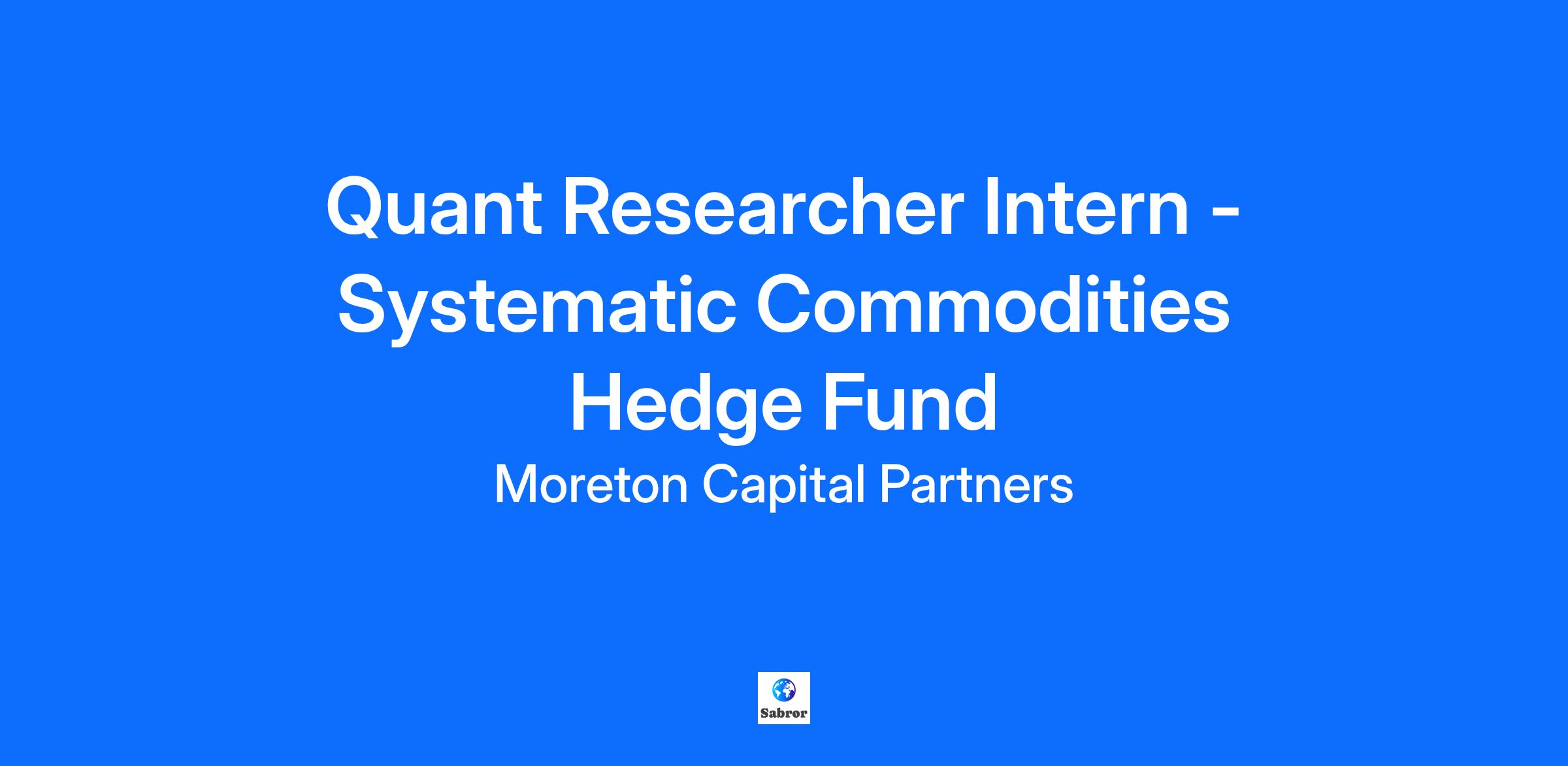 Quant Researcher Intern - Systematic Commodities Hedge Fund
