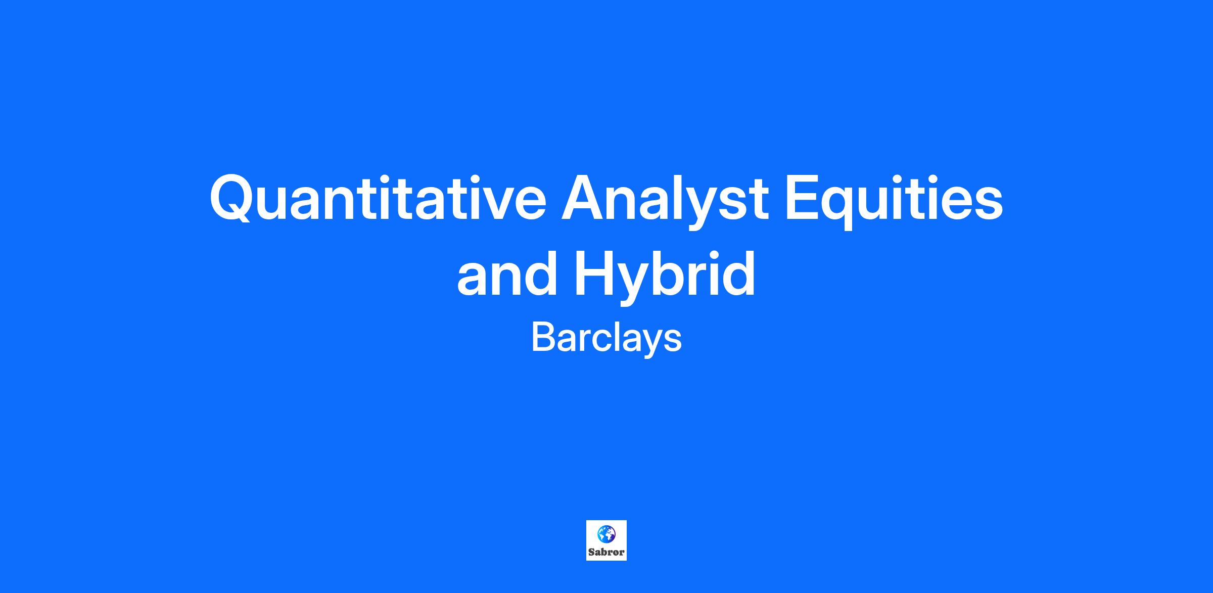 Job Description Purpose of the role To provide quantitative and analytical expertise to support trading strategies, risk management, and decision-making within the investment banking domain, applying quantitative analysis, mathematical modelling, and technology to optimise trading and investment opportunities. Accountabilities Development and implementation of quantitative models and strategies to derive insight into market trends and optimize trading decisions, pricing, and risk management across various financial products and markets. Working closely with sales teams to identify clients' needs and develop customised solutions. In-depth research, data analysis, and statistical modelling to derive insights into market trends, pricing, and risk dynamics. Provide front office infrastructure support though ownership and maintenance of analytical libraries. Provision of expertise on quantitative methodologies, technological advancements, and industry best practices to drive innovation within the trading environment. Assistant Vice President Expectations To advise and influence decision making, contribute to policy development and take responsibility for operational effectiveness. Collaborate closely with other functions/ business divisions. Lead a team performing complex tasks, using well developed professional knowledge and skills to deliver on work that impacts the whole business function. Set objectives and coach employees in pursuit of those objectives, appraisal of performance relative to objectives and determination of reward outcomes If the position has leadership responsibilities, People Leaders are expected to demonstrate a clear set of leadership behaviours to create an environment for colleagues to thrive and deliver to a consistently excellent standard. The four LEAD behaviours are: L – Listen and be authentic, E – Energise and inspire, A – Align across the enterprise, D – Develop others. OR for an individual contributor, they will lead collaborative assignments and guide team members through structured assignments, identify the need for the inclusion of other areas of specialisation to complete assignments. They will identify new directions for assignments and/ or projects, identifying a combination of cross functional methodologies or practices to meet required outcomes. Consult on complex issues; providing advice to People Leaders to support the resolution of escalated issues. Identify ways to mitigate risk and developing new policies/procedures in support of the control and governance agenda. Take ownership for managing risk and strengthening controls in relation to the work done. Perform work that is closely related to that of other areas, which requires understanding of how areas coordinate and contribute to the achievement of the objectives of the organisation sub-function. Collaborate with other areas of work, for business aligned support areas to keep up to speed with business activity and the business strategy. Engage in complex analysis of data from multiple sources of information, internal and external sources such as procedures and practises (in other areas, teams, companies, etc).to solve problems creatively and effectively. Communicate complex information. 'Complex' information could include sensitive information or information that is difficult to communicate because of its content or its audience. Influence or convince stakeholders to achieve outcomes. All colleagues will be expected to demonstrate the Barclays Values of Respect, Integrity, Service, Excellence and Stewardship – our moral compass, helping us do what we believe is right. They will also be expected to demonstrate the Barclays Mindset – to Empower, Challenge and Drive – the operating manual for how we behave. We are seeking a skilled and motivated Quantitative Analyst to join our Equity & Hybrid Products team. You will work at the intersection of financial engineering and quantitative research, supporting pricing, risk management, and trading strategies for a wide range of equity derivatives products. In role you will: Develop and maintain pricing and risk models for equity derivatives. Implement models in C++, Python, or proprietary libraries used by front-office desks. Calibrate models to market data and perform quantitative analyses to support trading strategies. Collaborate with traders, structurers, and risk managers to deliver robust analytical tools and pricing solutions. Ensure model governance compliance, including documentation and validation support. Contribute to innovation in pricing methodologies, numerical techniques, and model efficiency improvements. Conduct scenario analysis and stress testing for complex structured products. To be successful as a Quantitative Analyst you should have: MSc/PhD in a quantitative field (e.g., Mathematics, Physics, Financial Engineering, Computer Science). Strong programming skills (C++, Python or similar). Deep understanding of stochastic calculus, numerical methods, and derivatives pricing. Experience with equity derivatives (vanilla and exotics); hybrid product experience is a strong advantage. Additional skills of value include: Familiarity with market data sources (e.g., Bloomberg, Reuters) and calibration techniques. Effective communication skills with ability to explain complex models to non-technical stakeholders. Previous experience in an equity front-office quant role or equity model valuation team is preferred. You may be assessed on the key critical skills relevant for this role, such as risk and controls, change and transformation, business acumen strategic thinking and digital and technology, as well as job-specific technical skills. This role is based in London. Our Work Experience is the combination of everything that's unique about us: our culture, our core values, our company meetings, our commitment to sustainability, our recognition programs, but most importantly, it's our people. Our employees are self-disciplined, har