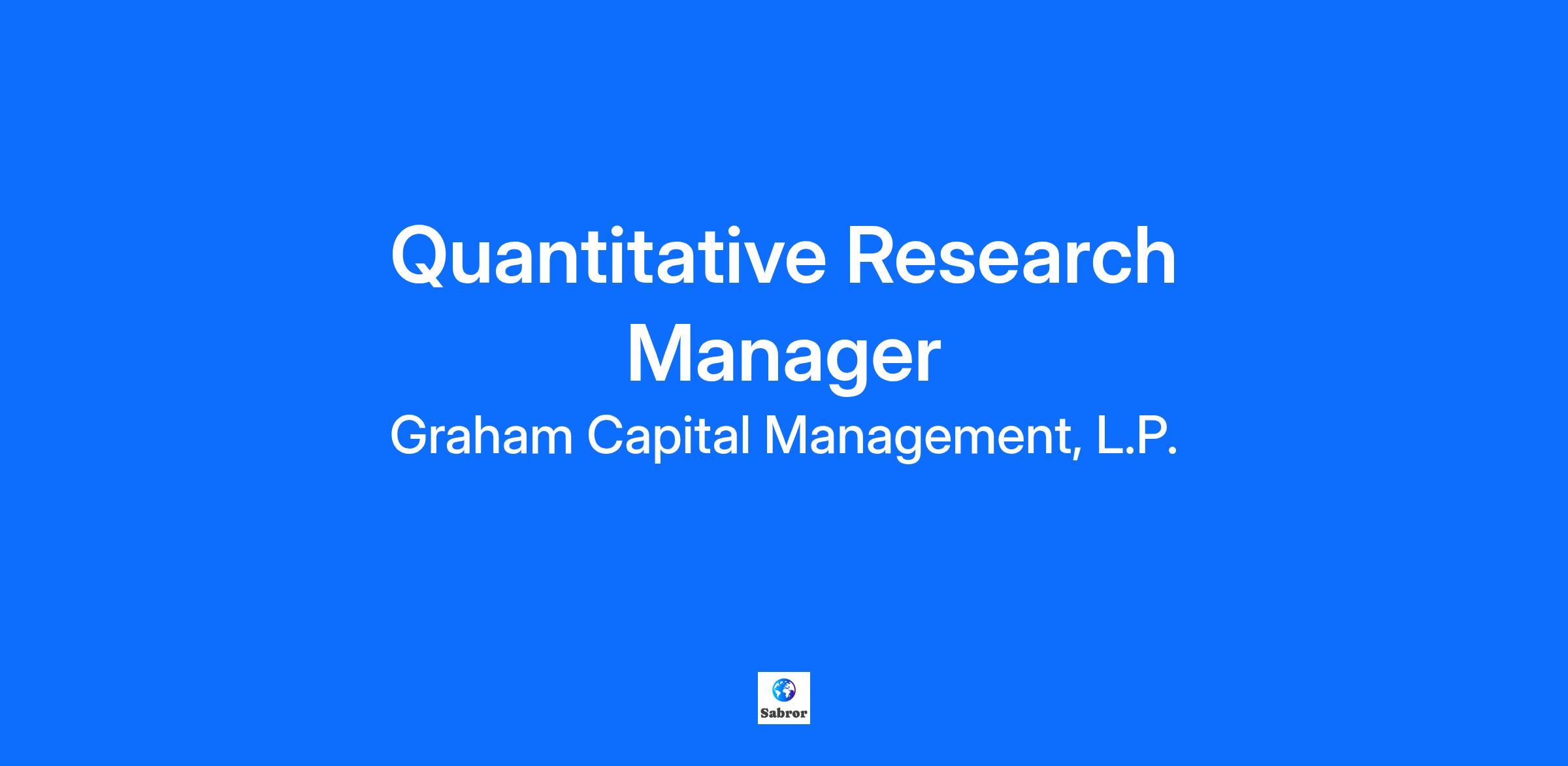 Graham Capital Management, L.P. ("Graham") is an alternative investment manager founded in 1994 by Kenneth G. Tropin. Specializing in discretionary and quantitative macro strategies, Graham is dedicated to delivering strong, uncorrelated returns across a wide range of market environments. As one of the industry’s longest-standing global macro and trend-following managers, Graham remains committed to innovation, evolving its strategies through a robust investment, technology, and operational infrastructure. Graham harnesses the synergies between its discretionary and quantitative trading businesses to offer a broad suite of complementary alpha strategies, each built on the principles of thoughtful portfolio construction, active risk management, and diversification by design. Graham invests significant proprietary capital alongside its clients – including global institutions, endowments, foundations, family offices, sovereign wealth funds, investment management advisors, and qualified individual investors – reinforcing alignment of interests across all strategies. The foundation of Graham’s sustainability and success is the experience and contributions of its people. The firm seeks to cultivate talent, encourage the diversity of ideas, and respect the contributions of all. In turn, each employee shares in the responsibility of strengthening those around them. Description Graham Capital Management, L.P. is seeking a Quantitative Research Manager to join our Quantitative Strategies team, and report directly into our Chief Investment Officer of Quantitative Strategies. The individual will research and develop ways to improve GCM’s current trading systems while creating new systematic trading signals to complement and diversify the firm’s main strategies. The individual will maximize performance and competitiveness by utilizing advanced methods in quantitative analysis, risk management and portfolio optimization. In addition to leading collaborative team research efforts, this individual will also have the opportunity to manage their own alpha generating portfolio. Responsibilities Research and develop methods to make existing trading signals more efficient, profitable and robust Research and develop new signals that trade futures and FX markets that complement and diversify production strategies in terms of style, source of alpha and markets traded Research and develop portfolio construction and optimization methods to maximize performance while controlling risk, drawdowns and trading cost Enhance the scalability and flexibility of portfolios to accommodate bespoke investment needs of clients Follow robust research and development procedures to reduce differences between simulated and actual performance Work collaboratively in a research team environment, using common development tools to facilitate robust implementation of research as well as production versions of trading systems Interact with other departments – technology, operations, trading, marketing, and accounting - to ensure current and proposed ideas are implemented, monitored and executed efficiently and accurately Regularly present findings and ideas to management and investment committee Complete other projects as requested by senior management Requirements PhD or MS in a quantitative field 7+ years related experience in systematic futures and/or FX trading on the buy side Exposure to securities and derivatives markets and investment processes with knowledge in mid-to-low frequency systematic strategies Advanced programming experience in languages suited for quantitative research and strategy implementation Ability to synthesize complex topics into easily digestible written commentary Strong communication skills – both written and verbal Experience managing a team of quantitative researchers is a plus This role requires commuting into one of our offices Mondays through Fridays. We have offices in Rowayton, CT, New York, NY, West Palm Beach, FL, and London, UK. Please note that our central Quantitative Research team sits out of Rowayton, CT. Base Salary Range The anticipated base salary range for this position is $250,000 to $300,000. The anticipated range is based on information as of the time this post was generated and does not include any discretionary bonus or benefits (see eligibility below). The applicable annual salary or hourly rate paid to a successful applicant will be determined based on multiple factors, including without limitation the nature and extent of prior experience, skills, and qualifications. This wage range may be modified in the future. In addition, the employee who fills this role will be eligible for a discretionary annual bonus, as well as a wide array of benefit programs, such as medical and life insurance, 401(K) plans, and access to other healthcare programs. Notes: No amount of pay is considered to be wages or compensation until such amount is earned, vested, and determinable. The amount and availability of any bonus, benefits, or any other form of compensation that a particular employee may be eligible for remains in the Company's sole discretion unless and until paid and may be modified at Graham’s sole discretion, consistent with the law. Graham is committed to providing equal employment opportunity to all employees and applicants for employment without regard to their race, color, religious creed, gender, age, national origin, ancestry, alienage, citizenship status, handicap, disability, marital status, sexual orientation, gender identity, pregnancy, childbirth or other related conditions, military status, genetic information, or any other personal characteristics protected by applicable law. This policy applies to all terms and conditions of employment, including hiring, placement, promotion, layoff, termination, transfer, leave of absence and compensation.