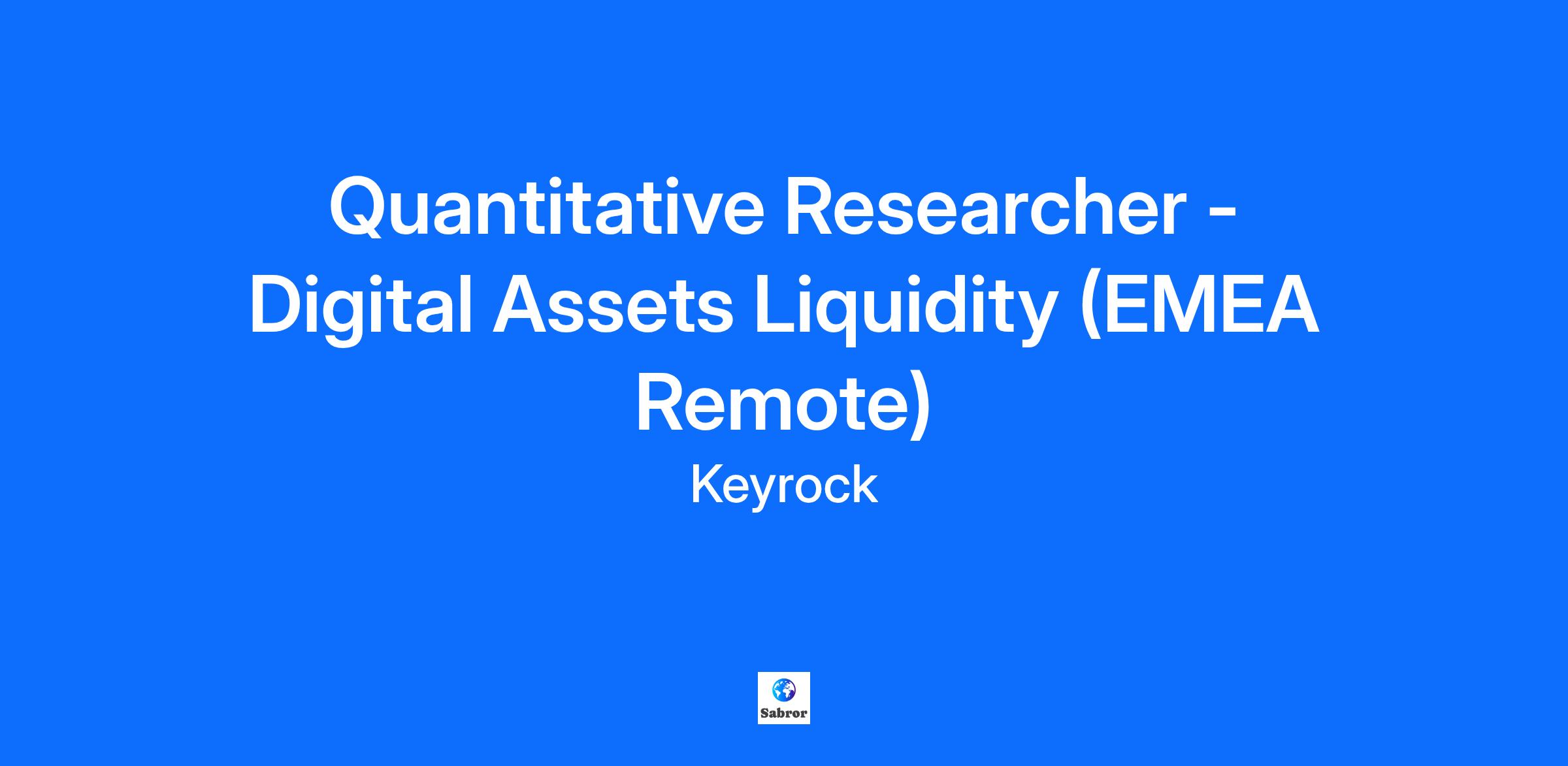 What we are looking for...A dynamic, experienced Quantitative Researcher to work in collaboration with our engineers, data scientists and quantitative traders to support our market-making and proprietary trading initiatives.