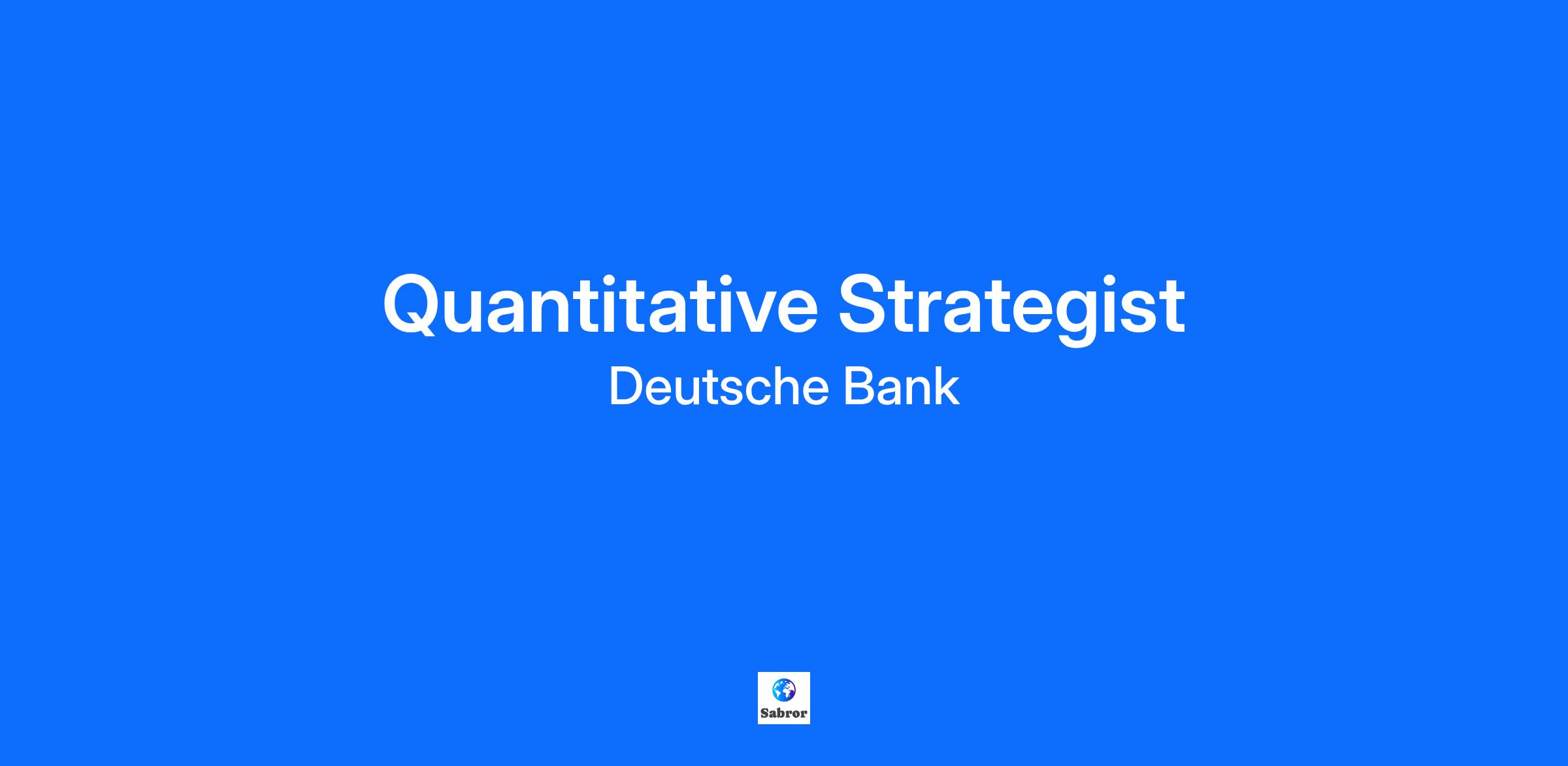 Job Description: Job Title Quantitative Strategist Location London Corporate Title Associate Group Strategic Analytics is part of Group Chief Operation Office (COO) which acts as the bridge between the Bank’s businesses and infrastructure functions to help deliver the efficiency, control, and transformation goals of the Bank. You will be joining the Deutsche Bank Analytics (DBA) team in London. DBA is the front office quantitative research team in charge of the development of the pricing models used across all divisions of Deutsche Bank for trading and the risk management of Cash and Derivatives in all asset classes of the Bank including Rates, Credit, Foreign Exchange (FX), Commodities, Equities and Hybrids. What we’ll offer you A healthy, engaged and well-supported workforce are better equipped to do their best work and, more importantly, enjoy their lives inside and outside the workplace. That’s why we are committed to providing an environment with your development and wellbeing at its centre. You can expect: Hybrid Working - we understand that employee expectations and preferences are changing. We have implemented a model that enables eligible employees to work remotely for a part of their working time and reach a working pattern that works for them Competitive salary and non-contributory pension 30 days’ holiday plus bank holidays, with the option to purchase additional days Life Assurance and Private Healthcare for you and your family A range of flexible benefits including Retail Discounts, a Bike4Work scheme and Gym benefits The opportunity to support a wide ranging CSR programme + 2 days’ volunteering leave per year Your key responsibilities Supporting pricing models for credit derivatives (structured, flow and credit correlation products) Developing and testing new and existing models Supporting the DBA library to Trading and Strats Your skills and experience Experience in Financial modelling and derivatives pricing Educated to Master of Science (MSc)/ Doctor of Philosophy (PhD) or equivalent qualification/work experience in a relevant subject such as Finance, Maths, Physics, Computer Science Excellent communication skills, both written and verbal with attention to detail Strong Maths skills in probability, stochastic calculus and numerical methods (finite differences, Monte Carlo) Good computing and programming skills, including C++ experience Highly motivated with enthusiasm and willingness to learn and take on new challenges How we’ll support you Training and development to help you excel in your career Flexible working to assist you balance your personal priorities A culture of continuous learning to aid progression A range of flexible benefits that you can tailor to suit your needs We value diversity and as an equal opportunities’ employer, we make reasonable adjustments for those with a disability such as the provision of assistive equipment if required (for example, screen readers, assistive hearing devices, adapted keyboards) About us Deutsche Bank is the leading German bank with strong European roots and a global network. Click here to see what we do. Deutsche Bank in the UK is proud to have been named in The Times Top 50 Employers for Gender Equality 2024 for five consecutive years. Additionally, we have been awarded a Gold Award from Stonewall and named in their Top 100 Employers 2024 for our work supporting LGBTQ+ inclusion. We strive for a culture in which we are empowered to excel together every day. This includes acting responsibly, thinking commercially, taking initiative and working collaboratively. Together we share and celebrate the successes of our people. Together we are Deutsche Bank Group. We welcome applications from all people and promote a positive, fair and inclusive work environment. For over 150 years, our dedication to being the Global Hausbank for our clients has been driven by our people – in around 60 countries and across more than 150 nationalities. Their deep understanding, insights, expertise, and passion help our clients navigate an increasingly complex world – be it in our Corporate Bank, our Private Bank, our Investment Bank or our Asset Management (DWS) division. Together we can make a great impact for our clients at home and abroad, securing their lasting success and financial security. More information at: Deutsche Bank Careers (db.com)