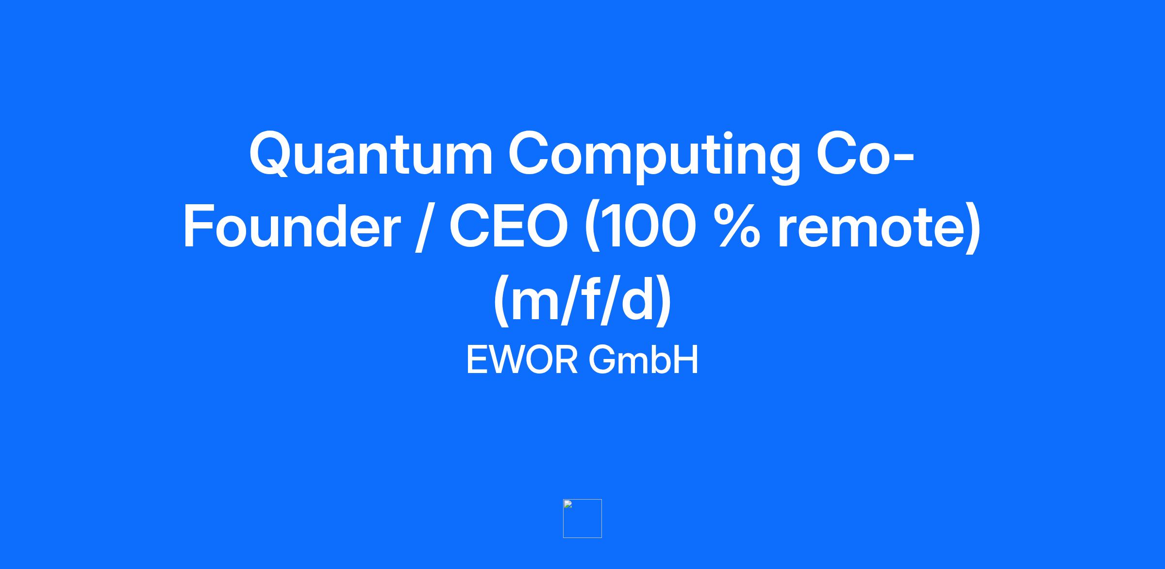 We are looking to hire ambitious entrepreneurs to start and scale their own startups. We are serial entrepreneurs, for example Paul Müller (founder Adjust, €1.2B exit) and Petter Made (founder SumUp, €8B) who are eager to support outlier personalities and serial entrepreneurs to build €1B+ companies. Our offer: A salary while you build your startup as you will directly be employed by us. Alternatively, you can opt for up to €500k in funding. 1:1 sparring with unicorn founders on a weekly basis Community: Access to the top 0.1% of founders, peers and investors Team building: Hiring top notch talent supported through our network (over 50,000 professionals) Distribution: Support in reaching product-market-fit and building up a sales force / marketing machine Funding support for securing a multi-million euro funding round within 12 months (on average, EWOR Fellows raise > €2M after our Grand Pitch) One of our fellows set a record for Europe’s largest pre-seed round by a first-time founder, securing a €12M pre-seed investment. Tasks You will own, build, and run your startup in fields such as Quantum Computing You will embark on an extensive personal development journey crafted by unicorn founders and follow a fully customised programme enhancing your goal, time, and energy management You will receive support in hiring through our network to over 50,000 professionals and advice as well as best practices from serial entrepreneurs You will receive intensive coaching to make your startup ready to raise millions in funding You will iterate your product with us until having reached product-market-fit and receive support in building up a sales force or creating a marketing engine respectively Requirements You are based in Europe or the Americas or open to relocate You are willing to take full responsibility for your own startup and scale it to €100M+ in revenues You have excellent communication skills in the English language Join us and build a €1B+ company with us!