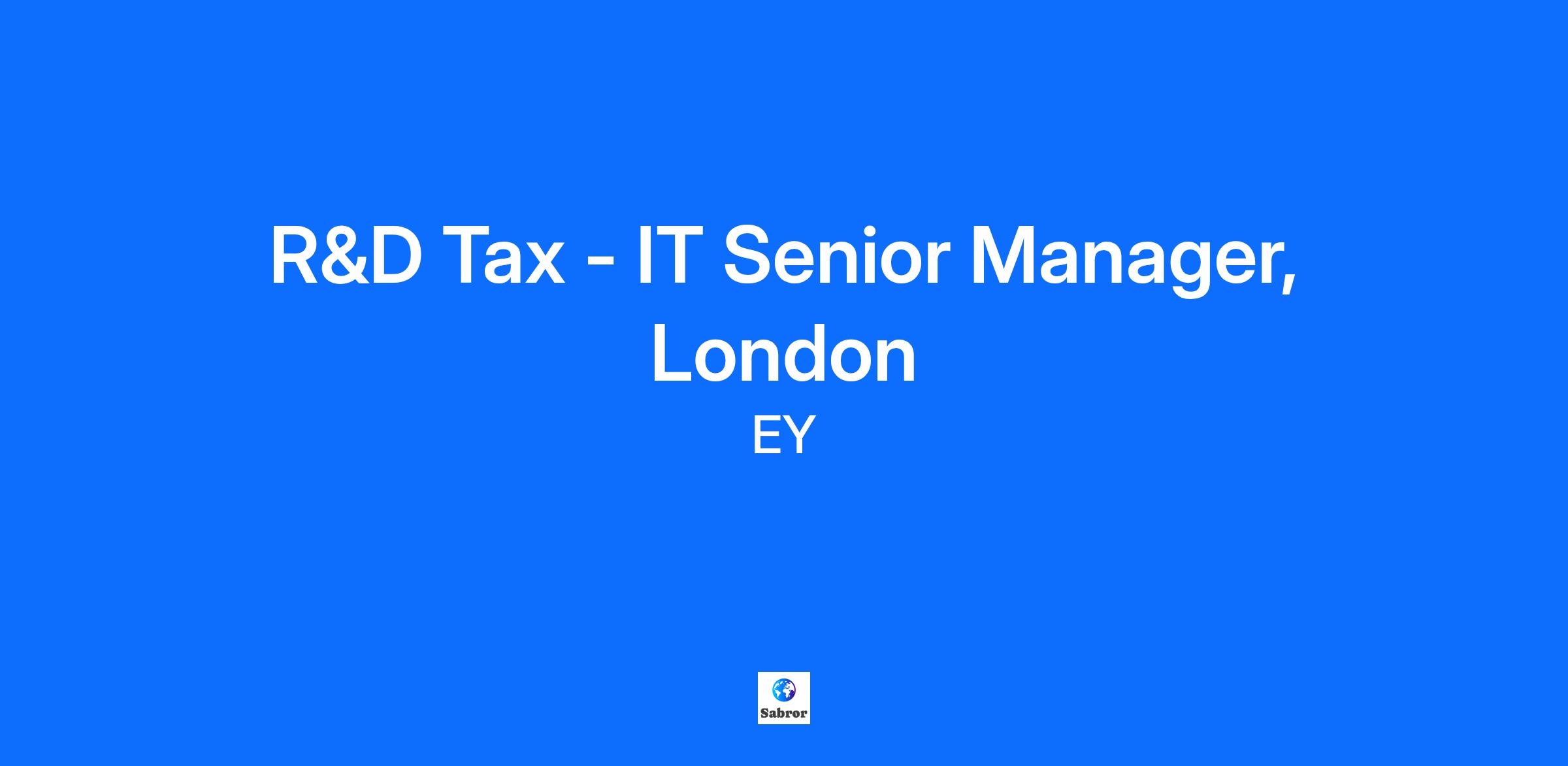 R&D Tax - IT Senior Manager, London