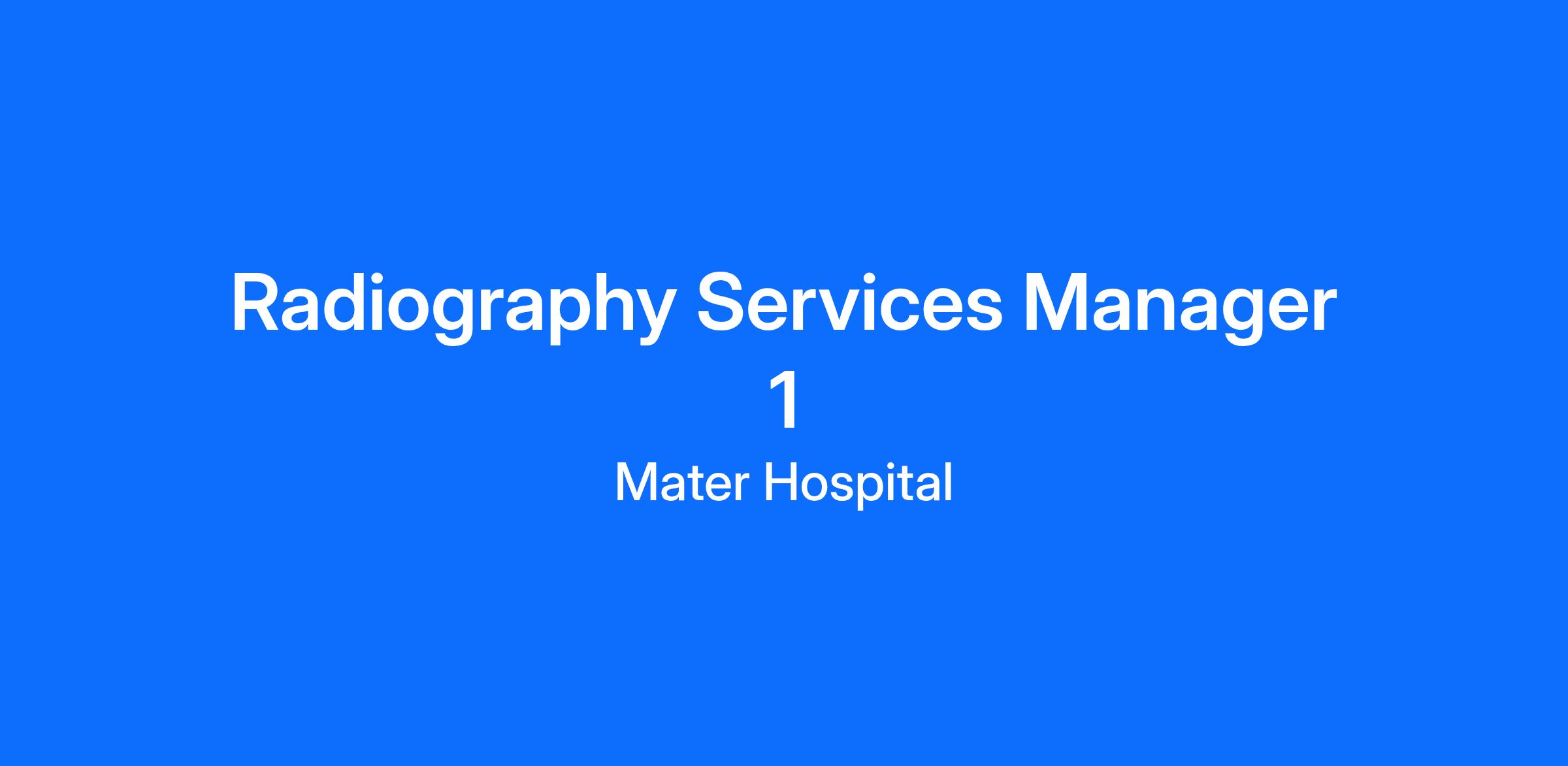 Reporting directly to the Radiography Services Manager 3, the position of Radiography Services Manager 1 requires an ability to lead, guide and supervise Radiographic staff and to successfully manage service delivery on a day to day basis.