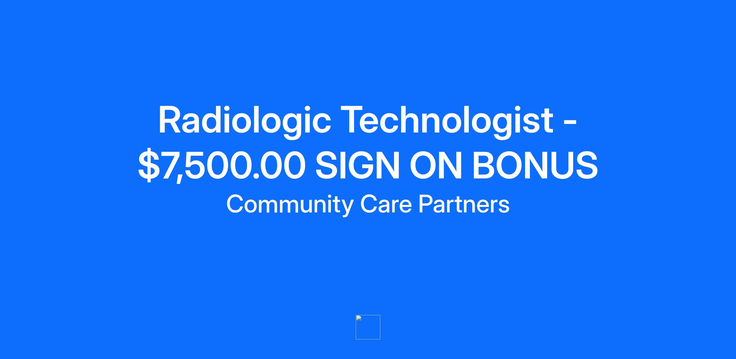 *$7,500.00 SIGN-ON BONUS OFFERED FOR FULL-TIME OPPORTUNITY* The Radiologic Technologist prepares for and performs standard x-ray examinations utilizing x-ray equipment, while using proper technique and positioning per provider orders. The ideal Rad Tech is energetic, eager to learn, has a positive attitude and above all else, has a passion for patient care! The Rad Tech will also be responsible for performing blood draws, taking vital signs, inputting medical histories, administering medication injections and vaccines as well as assisting providers in medical procedures. Essential Functions and Responsibilities: Follow prescribed safety standards in operating all required radiologic equipment Experience with positioning patients and x-ray equipment to achieve desired diagnostic image Knowledge and experience with appropriate shielding protocols Prepare patients for examination, taking vital signs and history, and provides treatment as applicable Performs blood draws and administers medication injections and vaccines. Prepares exam/treatment rooms; select, setup, sterilize, and maintain medical supplies and equipment for procedures Select length and intensity of radiation exposure on individual patient basis or to specification of examination Use of CR and DR systems Examine images for properties such as density, contrast, definition, magnification, and distortion Send and store images Perform other duties as assigned Requirements and Qualifications: Education: Graduate of an accredited Radiologic Technology Program required Certification/License: Current state Radiologic Technologist licensure. Current BLS for Healthcare Providers required. Experience: Prior Radiologic Technologist experience (preferred), however new graduates are encouraged to apply Community Care Partners is an Equal Opportunity Employer (EEO). #RT