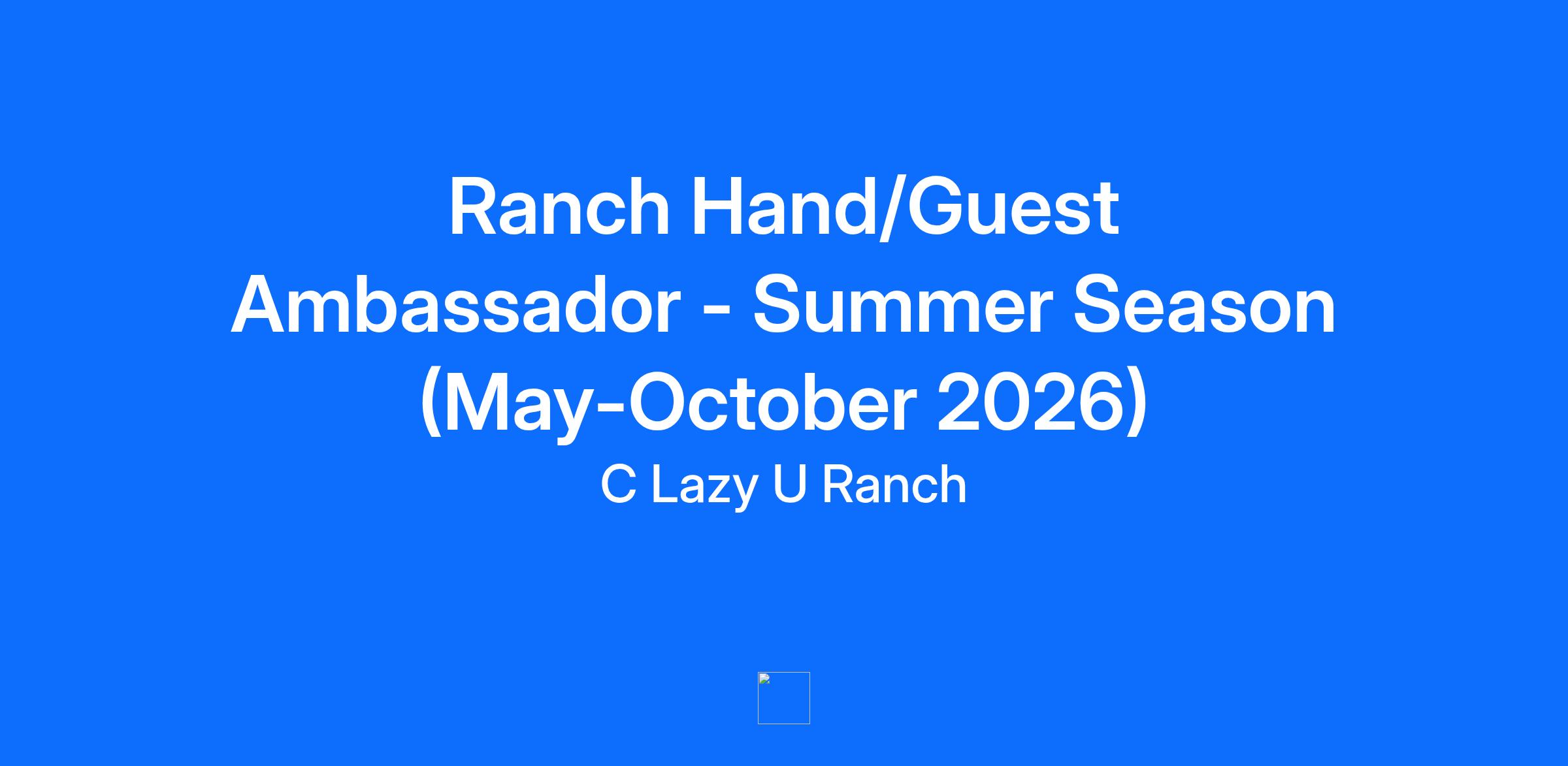 Description Work where Adventure meets Hospitality! Hiring Ranch Hands/Guest Ambassadors for Summer Season (May-October 2026) - MUST BE ABLE TO WORK THROUGH OCTOBBER! Join a legacy 107 years in the making! C Lazy U Ranch, one of America’s top guest ranches, is hiring for the 2026 summer season in beautiful Granby, Colorado. We pride ourselves on delivering exceptional service that sets us apart. To maintain this standard, we seek enthusiastic, service-oriented professionals with strong communication skills who go above and beyond to create unforgettable guest experiences. We offer below-market housing and three complimentary meals daily. Spend your summer in the Rockies—apply today! Working Environment: Working Ranch & Guest Hospitality OBJECTIVE: The Ranch Hand Guest Ambassador is a guest-focused role that plays a critical part in delivering exceptional summer experiences across 8,500 acres of ranch property. Unlike traditional ranch hands, this position does not involve livestock care—instead, Summer Ranch Hands support a wide range of seasonal guest activities and behind-the-scenes operations. From facilitating guest activities to executing smooth guest arrivals, this hands-on role ensures the ranch runs smoothly throughout the season. ESSENTIAL DUTIES AND RESPONSIBILITIES: Guest Services: Greet guests upon arrival and assist with luggage at check-in and check-out. Show guests to cabins and orient them to the Ranch and their cabin. Guide guest activities, including trap, archery, hatchets, ropes course, ranger rides, tubing and Amazing Race. Facilitate night-time events, including karaoke, branding, game night, and more. Possess superb hospitality skills while meeting the standards of C Lazy U Ranch. Valet parking. Provide transportation/shuttles. Ranch Banquet and Grounds Labor: Event/Banquet: multi-purpose room and special event setup and breakdown. Audio video set up, operation and breakdown. Grounds: trash removal, shoveling, to include snow shoveling and removal and general exterior caretaker duties. General labor: fire building, splitting wood, sweeping, unloading trucks, moving furniture, staining wood, cleaning vehicles. Minor maintenance. NON-ESSENTIAL DUTIES AND RESPONSIBILITIES: Performs all related duties as assigned Requirements QUALIFICATION REQUIREMENTS: Experience in physical activities and a love of the outdoors. Ability to take initiative and exercise common sense. Strong customer service experience, and the ability to respond in a polite and professional manner to ensure a memorable guest experience. Adaptable to changing circumstances. Valid CPR and First Aid certification. Must have a valid Driver’s License and be insurable by the company’s auto insurance carrier. WORKING CONDITIONS AND PHYSICAL REQUIREMENTS: Team member is regularly required to talk and listen, and is frequently required to sit, stand, and use hands. Team member is required to walk, reach with hands, climb, or balance, stoop, kneel, or crouch. Must be able to frequently lift and move up to 40 pounds and occasionally to lift and or move up to 50 pounds. Specific vision abilities required by this job include close vision and distance vision. This Job Description is an overview of the scope of responsibilities for the Ranch Hand / Guest Ambassador position and is not intended to be an inclusive list of tasks and expectations. Team members are held accountable for all duties of this job. I further understand that this Job Description does not constitute a written or implied contract of employment and that the company reserves the right to revise and change duties as the need arises.