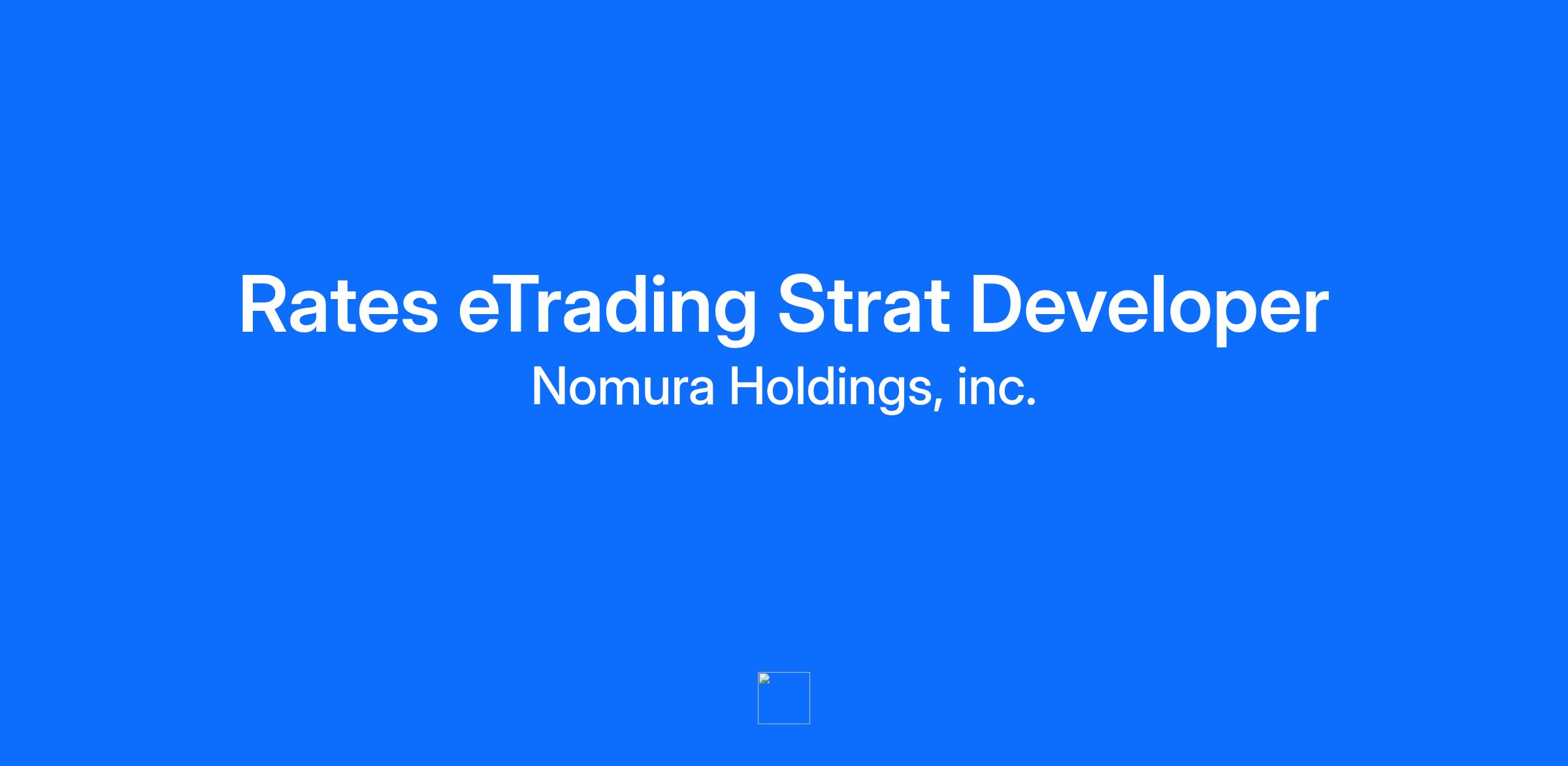 Company overview Nomura is a global financial services group with an integrated network spanning approximately 30 countries and regions. By connecting markets East & West, Nomura services the needs of individuals, institutions, corporates and governments through its three business divisions: Wealth Management, Investment Management, and Wholesale (Global Markets and Investment Banking). Founded in 1925, the firm is built on a tradition of disciplined entrepreneurship, serving clients with creative solutions and considered thought leadership. For further information about Nomura, visit www.nomura.com   Job title: eTrading Strategist / Developer Corporate Title: Associate / Vice President / Executive Director Department: Global Markets Digital Office Location: London, New York      Department overview: We are a Rates focused eTrading Strats team, operating globally in London, New York and Tokyo. We are responsible for the development and operation of automated trading strategies, eBooks and pricing models across client and interdealer electronic venues.   Role Description You are a confident and self-motivating strat/developer with a solid understanding of electronic markets. You are client focused and are comfortable communicating with stakeholders across the bank. You are at home developing in a small self-organising team and value user feedback within an agile development process. You can manage expectations effectively and have a demonstrable track record of owning delivery of a high profile product to demanding business users. You are familiar with the Fixed Income markets, both cash and derivatives, and understand the value of an intuitive, robust and reliable eTrading systems to a trading desk.   Summary: We are seeking an innovative and experienced eTrading Strategist / Developer to join our dynamic trading team. The ideal candidate will be joining our team building a best in class electronic trading platform across global Rates products. Key Responsibilities: Develop sophisticated algorithmic trading strategies using quantitative methods and statistical analysis Implement and optimize execution algorithms to improve trading efficiency and reduce market impact Collaborate with quants, developers, and traders to translate trading ideas into production-ready code Monitor and evaluate the performance of trading strategies, making real-time adjustments as necessary Conduct research on new trading opportunities and market inefficiencies Develop and maintain relationships with electronic trading venues and liquidity providers Contribute to the firm's overall electronic trading infrastructure and technology stack   Required Experience: Degree in Computer Science, Mathematics, Physics, or a related quantitative field Minimum of 2 years of experience in electronic trading or a similar role in financial markets Strong programming skills in Java, with experience in low-latency environments In-depth understanding of market microstructure, order types, and exchange connectivity Excellent problem-solving skills and ability to work under pressure in a fast-paced environment Preferred Experience: Experience with multiple asset classes (Rates, equities, futures, options, FX) Knowledge of market-making strategies and risk management techniques Familiarity with financial regulations (e.g., MiFID II, Reg NMS) Experience with distributed systems and cloud computing platforms KDB or other time series database Experience with high-frequency trading (HFT) and algorithmic execution strategies Key Competencies: Strong analytical and quantitative skills Excellent communication skills to explain complex concepts to both technical and non-technical audiences Ability to work collaboratively in a team environment Adaptability to rapidly changing market conditions and technologies Strong ethical standards and commitment to market integrity Join our cutting-edge team and help shape the future of Rates Electronic Trading. Nomura competencies Explore Insights & Vision Identify the underlying causes of problems faced by you or your team and define a clear vision and direction for the future. Making Strategic Decisions Evaluate all the options for resolving the problems and effectively prioritize actions or recommendations. Inspire Entrepreneurship in People Inspire team members through effective communication of ideas and motivate them to actively enhance productivity. Elevate Organizational Capability Engage proactively in professional development and enhance team productivity through the promotion of knowledge sharing. Inclusion Respect DEI, foster a culture of psychological safety in the workplace and cultivate a "Risk Culture" (Challenge, Escalate and Respect). Right to Work The UK Government have taken steps to reduce net migration to the UK by limiting the number of overseas workers coming to the UK for employment. Please note that whilst we are able to consider applications from overseas workers from outside the UK (who require a Tier 2 Skilled Worker visa) we can only employ them if we can provide evidence that this is a genuine vacancy for a qualified role.  Diversity & Inclusion Nomura is an equal opportunity employer. We value diversity and are committed to creating an inclusive environment for all our employees. We do not discriminate on the basis of age, disability, gender identity and gender expression, pregnancy and maternity, marriage and civil partnership, race, religion or belief, sex or sexual orientation. If you require any assistance or reasonable adjustments due to a disability or long-term health condition, please do not hesitate to contact us.