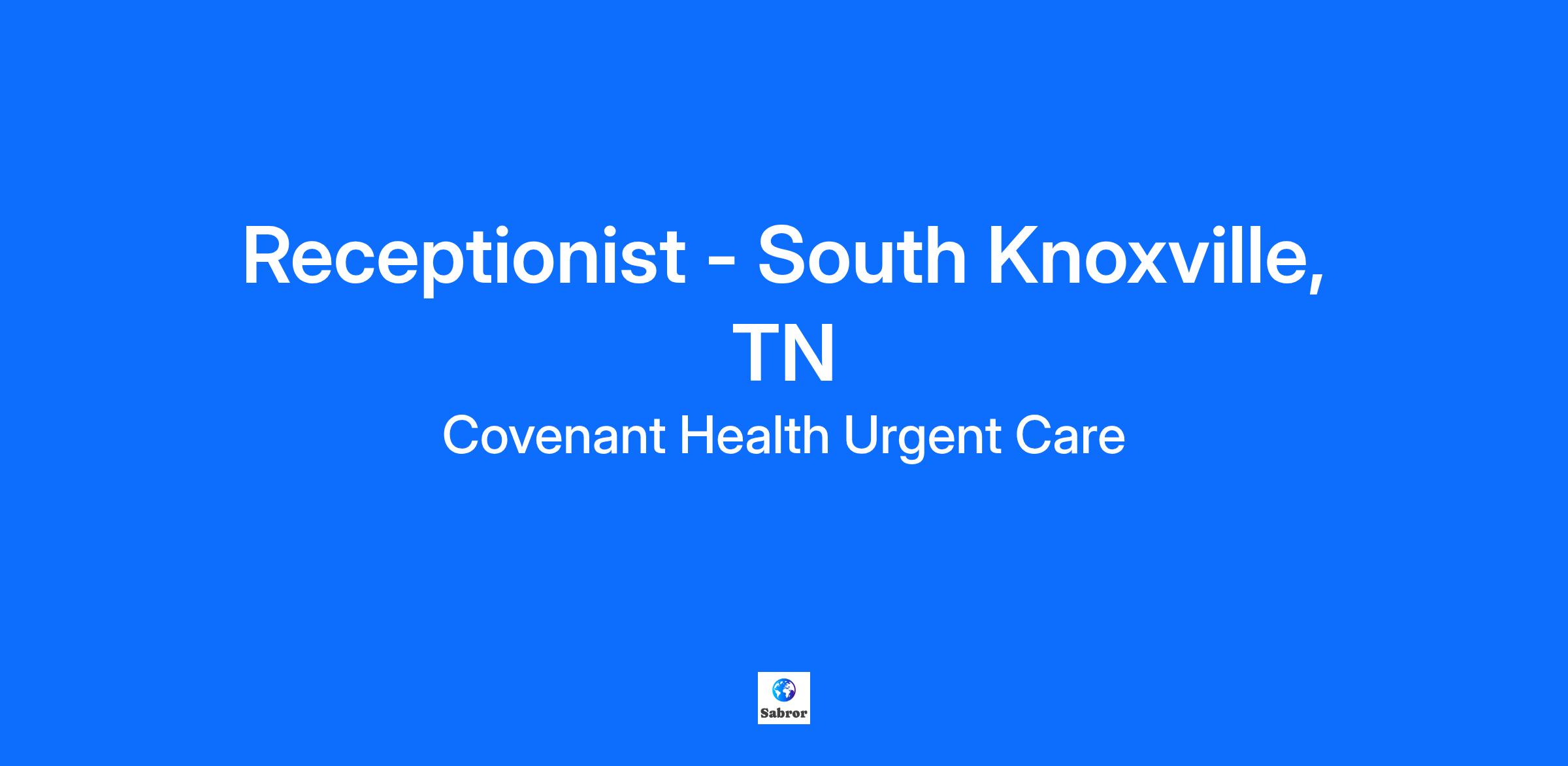 Covenant Health Urgent Care is dedicated to providing top-quality patient care to the Knoxville community. Receptionists are vital to the success of our clinical teams and crucial to providing fast, friendly, and affordable healthcare at Covenant Health Urgent Care centers. In partnership with Covenant Health, Covenant Health Urgent Care offers state-of-the-art onsite digital X-ray, EKG, and common laboratory assays 7 days per week, 8AM - 8PM.