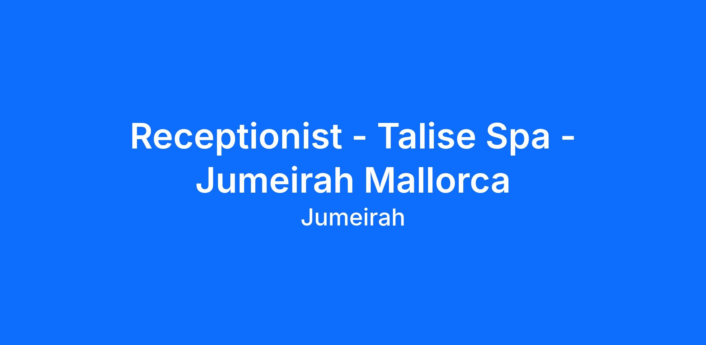 An opportunity has arisen for a Receptionist position to join our Spa Department in Jumeirah Mallorca.