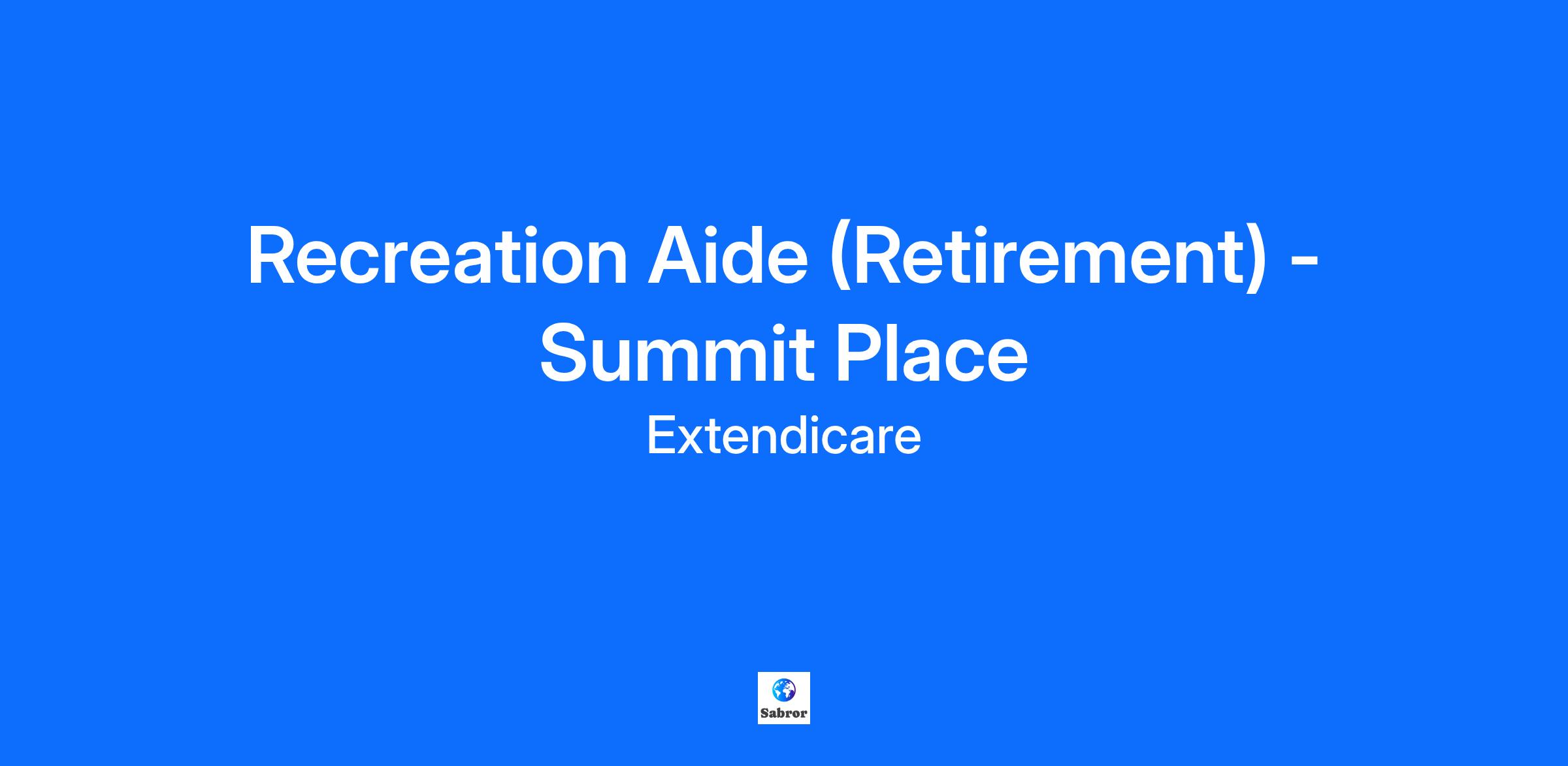 Recreation Aide (Retirement) - Summit Place