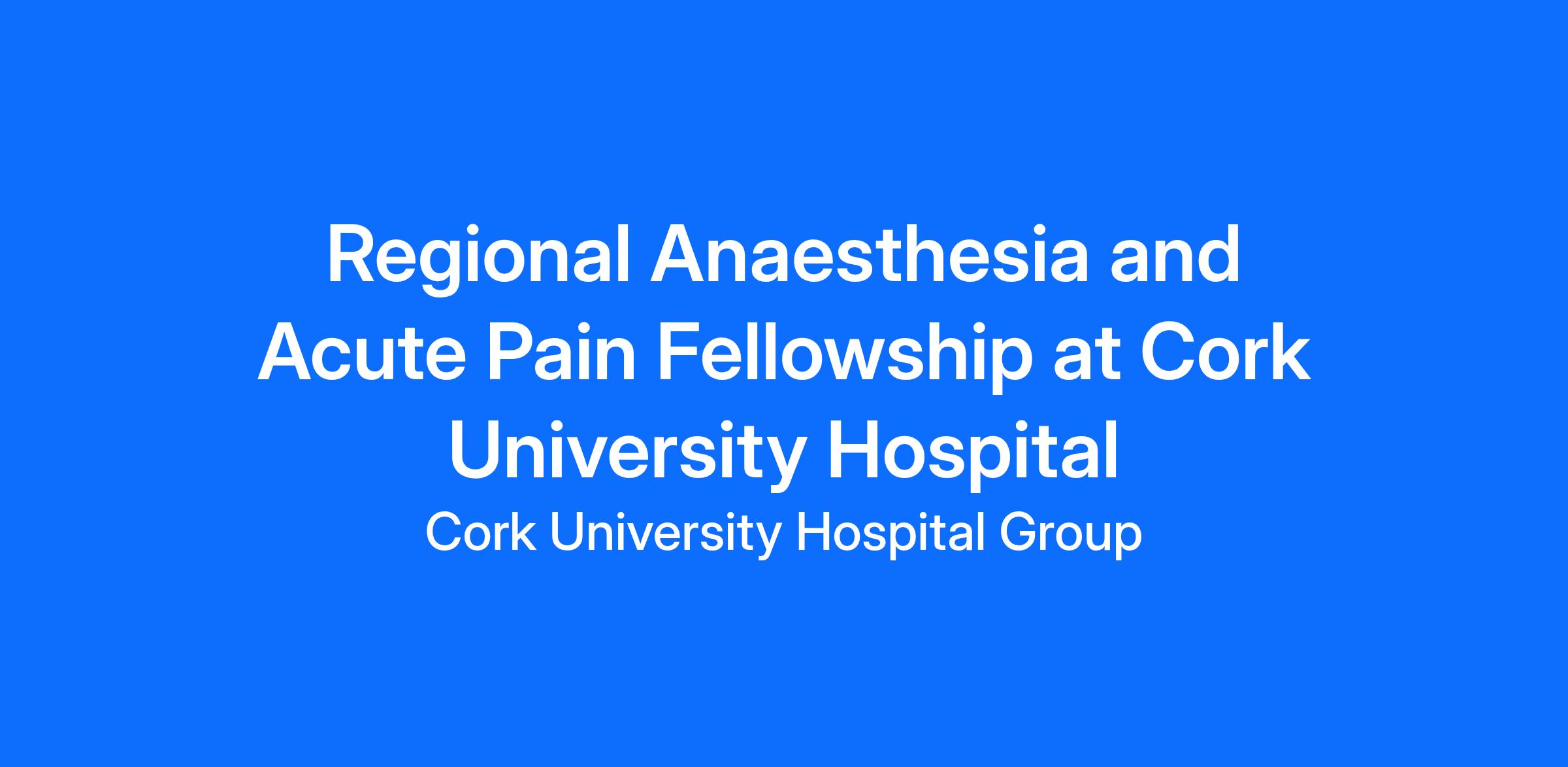Regional Anaesthesia and Acute Pain Fellowship, Cork University Hospital