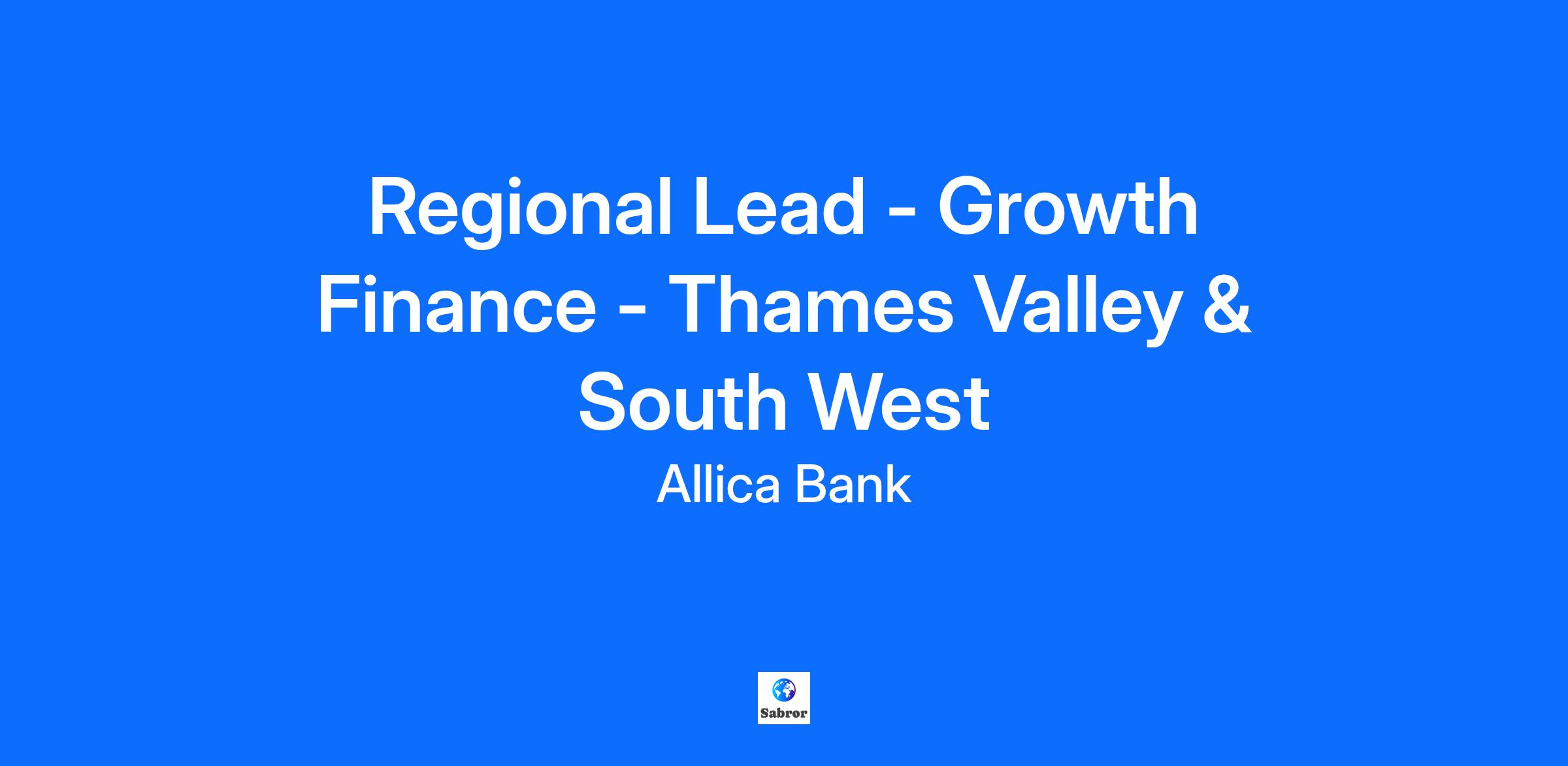 Regional Lead - Growth Finance - Thames Valley & South West