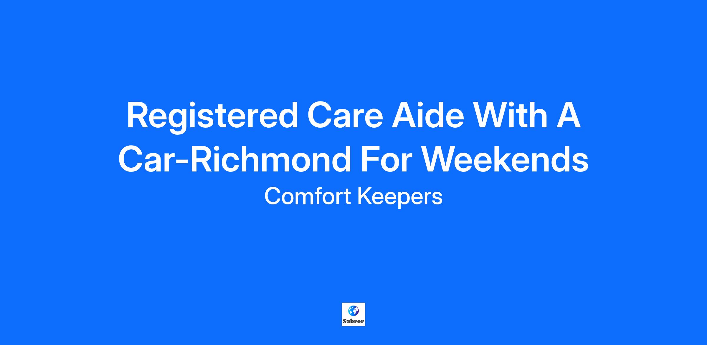 Want to be a Comfort Keeper? Comfort Keepers is looking for a Registered Care Aide (RCA) with a car, available for weekends in the Richmond area to join our growing team. We are a leading in-home care provider for seniors and other adults that require a helping hand or companionship in their home. In this position, you will provide non-medical, in-home support and home management services. Join a growing family dedicated to providing companionship, personal care and other health care needs for seniors in their own homes. Both part-time and full-time positions available. Our Personal Support Workers provide exceptional in-home and companion experiences and assist with services detailed in our customized personal care service plans. Comfort Keepers offers the following benefits: Competitive Pay – Including direct deposit and holiday pay - Starting at $23.00 per hour Paid Training – foster growth and development through paid web-based and in-person training Friendly Environment – 24-hour support available, a fun team-centric atmosphere Companionship & Friendship – Create lasting relationships with seniors and their loved ones Reimbursement – Get repaid for client related transportation Flexibility – flexible start dates, ability to work near your home Take the first step toward an exciting career with Comfort Keepers! Apply Today! Job Requirements: Driver's License and own vehicle is a MUST! Genuinely concerned about helping people Access to a mobile phone HCA Certificate and BC Registry Number is a MUST Current First Aid and CPR Training Available to work weekends and some overnight shifts is a bonus! Criminal Record Check Weekend availability is a MUST! Apply Today! Our office serves seniors in Vancouver and surrounding communities, including Richmond, Vancouver. This position may require travel to those areas – we do our best to match you with clients in your area.