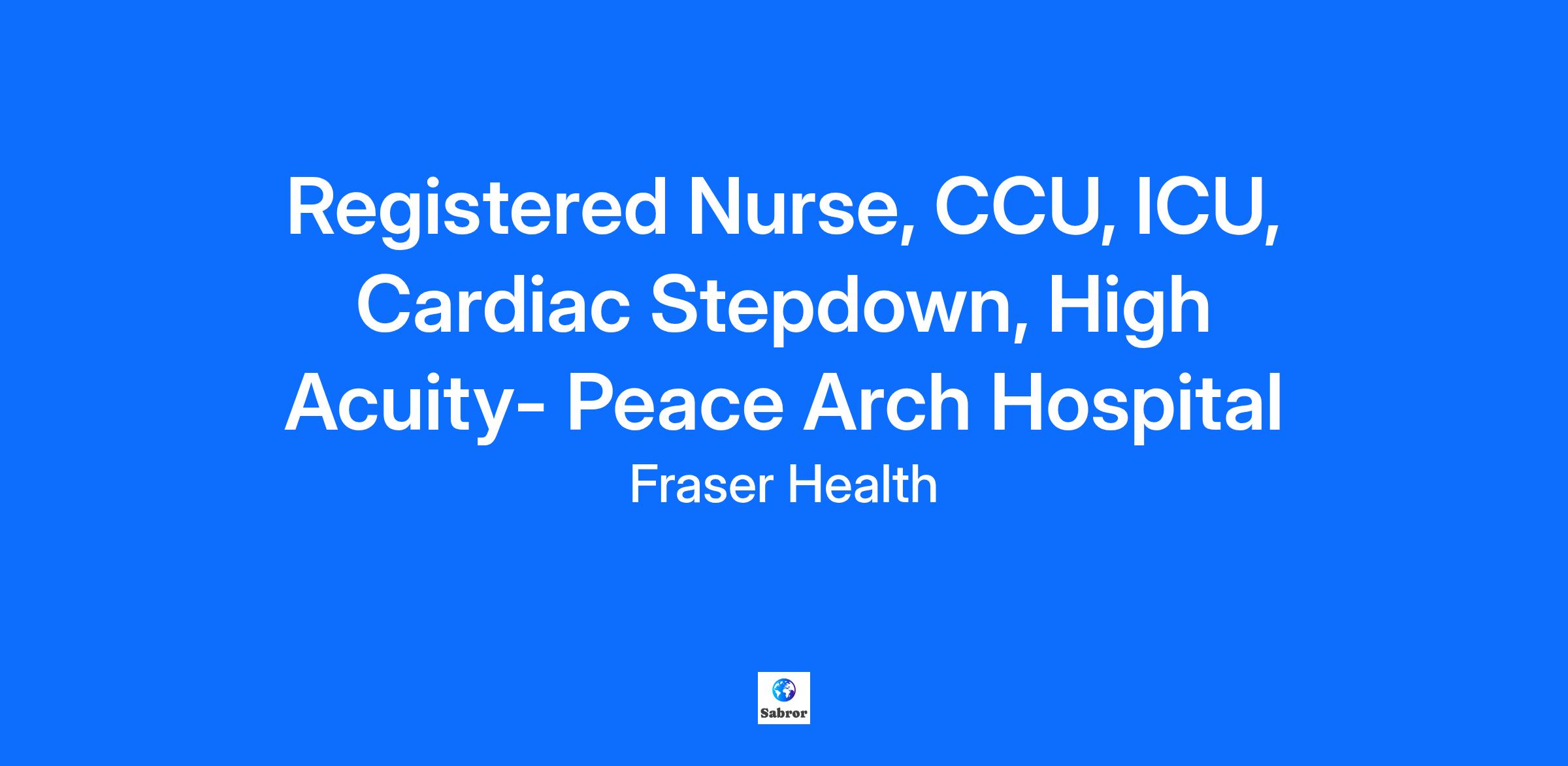 Salary The salary range for this position is CAD $41.42 - $59.52 / hour Job Summary We are currently hiring for a Relief Full Time Registered Nurse, CCU, ICU, Cardiac Stepdown, High Acuity to join our ICU team at Peace Arch Hospital located in White Rock, B.C. Connect with us! Joining our team offers you opportunities to work in a rapidly growing organization with health professionals who are excellent in their respective fields. Fraser Health offers opportunities for career growth and advancement and competitive benefits, including but not limited, to: Four weeks of vacation to start Comprehensive 100% employer paid benefits Immediate enrollment in a defined municipal pension plan 87% maternity top-up 50% subsidy on Translink passes *Eligibility based on employment status We invite you to apply today and find out why employees recommend Fraser Health to their friends as an exceptional place to work. We are committed to planetary health, we value diversity in the work force and seek to maintain an environment of Respect, Caring and Trust. Connect with us on our Careers social channels where you’ll learn about exciting opportunities, get career tips from our recruiters, and meet some of your future team members! You can also visit us on Indeed and Glassdoor. Instagram | Facebook | LinkedIn | X Detailed Overview In accordance with the British Columbia College of Nurses and Midwives (BCCNM) standards of practice and the Mission and Values of Fraser Health, and working collaboratively and in partnership with the interprofessional care team in the provision of person-centered care, the Registered Nurse provides direct patient care by assessing, planning, providing and evaluating nursing care to patients in an acute medical unit. Responsibilities Assesses patients and collects information from a variety of sources using skills of observation, communication, data review and physical assessment. Makes a nursing diagnosis of the patient''s condition and determines whether the condition can be improved or resolved by an appropriate nursing intervention. Plans, performs and evaluates nursing interventions and care. Collaborates with patients and their families/care givers in developing the care plan and encourages family participation in the development, implementation and ongoing modification of the care plan. Establishes a therapeutic relationship by demonstrating empathy, trust and respect, advocating for the patient's rights to privacy, dignity and access to information, and by ensuring the patient's choice and autonomy in decision making and care planning. Participates in the care and discharge planning process for patients on admission by ensuring the care plan is established and implemented effectively, updating care plan and intervening as appropriate, collaborating with the interprofessional care team to ensure comprehensive care planning and delivery, and collaborating and communicating with the Patient Care Coordinator on issues that will affect the care/discharge plan. Coordinates nursing care for the patient; sets priorities, assigns and delegates tasks to support staff, and makes referrals to the interprofessional care team according to established protocols and practice standards. Collaborates with members of the interprofessional care team including Physicians, Licensed Practical Nurses, Patient Care Coordinator, Clinical Nurse Educators, and other health care professionals/providers in the identification and resolution of issues, adjustments to care plans as required, and in regard to changes in patient condition. Teaches patients and families/care givers about illness prevention, health restoration and health maintenance to help patients accomplish their health care goals. Assesses learning needs of the patient and family/care giver; provides information and demonstration of care activities to support self-care and the discharge plan. Plans and discusses referral information with patient and their families/care givers and, in collaboration with members of the interprofessional care team, initiates referrals to appropriate health care/community agencies. Documents assessments, nursing diagnosis, observations, interventions, patient/family responses, outcomes/evaluations, and referrals according to practice standards and Fraser Health procedures. Participates on nursing committees, care conferences and councils as assigned or as agreed to with the Manager. Participates in research and quality improvement activities by identifying patient care issues, collecting data, and identifying needs and recommendations for corrective action and changes to practices, procedures or protocols. Participates in and attends in-services and other educational programs. Identifies own learning goals and maintains and updates current clinical competence and knowledge within area of practice. Acts as a preceptor or mentor to assigned new nursing staff and students; shares information, demonstrates care activities, participates in orientation. Provides feedback to the Manager/delegate regarding the effectiveness of patient care programs, policy/clinical decision support tools (e.g. clinical pathways, standards, order sets and procedures), and equipment. Performs other related duties as required. Qualifications Education and Experience Graduation from an approved School of Nursing with current practicing registration as a Registered Nurse with the British Columbia College of Nurses and Midwives (BCCNM). Completion of applicable post graduate course work, or an equivalent combination of education, training and experience. Current certification in Basic Cardiac Life Support (BCLS). Skills and Abilities Ability to complete initial and ongoing patient assessment (clinical and diagnostic reasoning) and provide nursing care through appropriate/prescribed technical, therapeutic, safety type interventions. Ability to communicate effectively with patients, families/care givers, the public, medical staff and membe