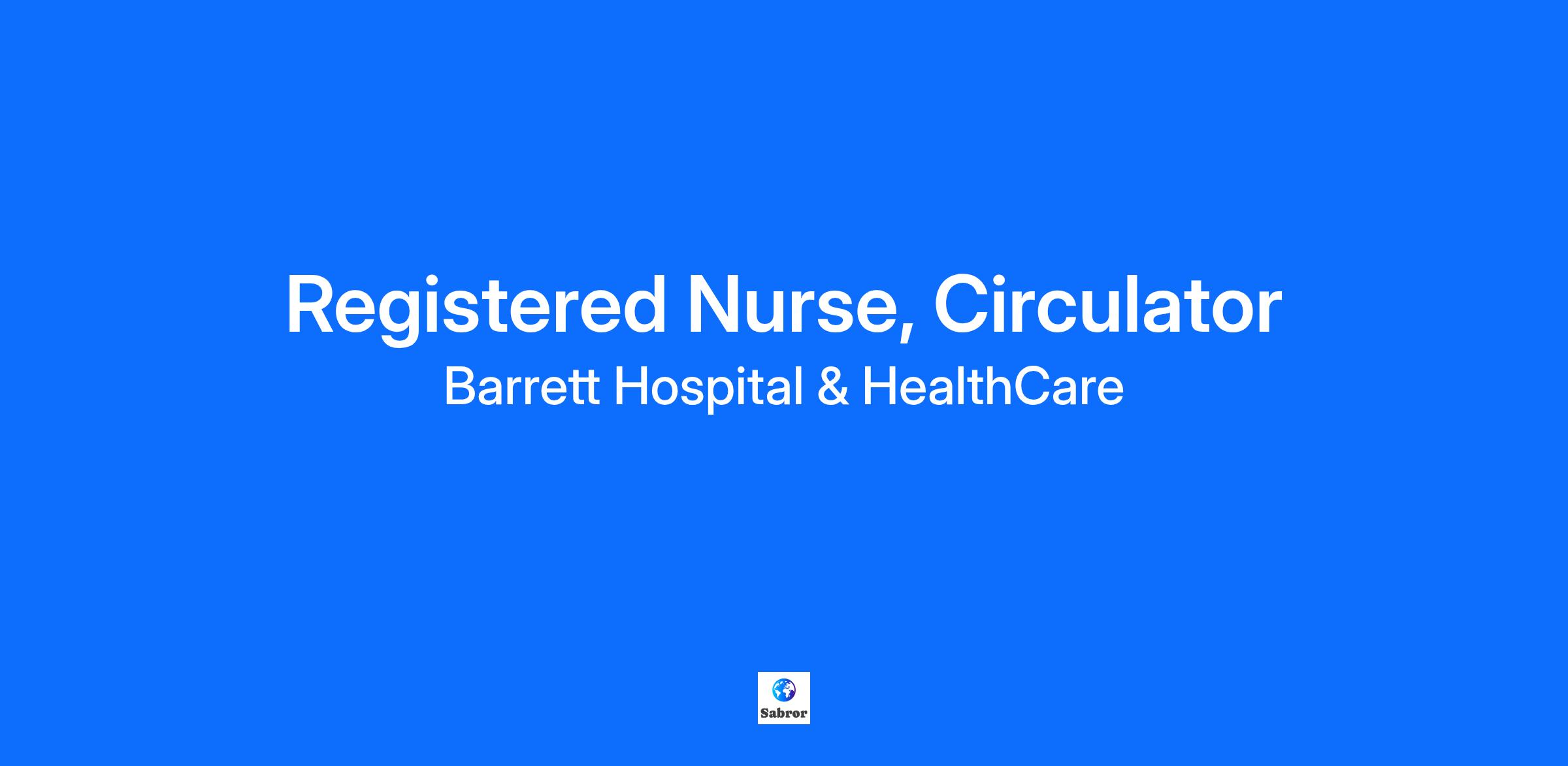 Barrett Hospital & HealthCare invites applications to fill a Registered Nurse/Circulator position to join our Peri-Operative/Surgical Services team. The Registered Nurse/Circulator is responsible for the practice of professional nursing, which includes assessment, planning, intervention, and evaluation of patients in all age groups (pediatric through geriatric). The Registered Nurse/Circulator is trained to advocate for and care for patients throughout their Surgical Services experiences. Incumbents will be required to work regularly scheduled shifts and assist in call coverage rotation. Successful candidates will have a passion for customer service excellence, teamwork and enjoy serving the public.