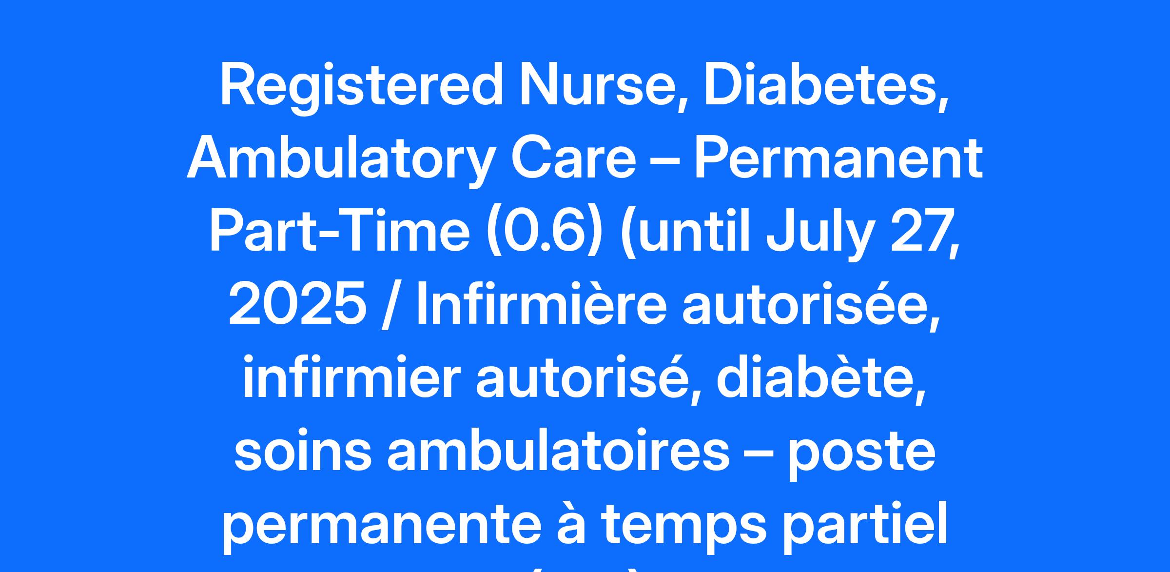 Compensation Pay Range: $39.07-$56.00 Job Description: Please Note: If you are a current CHEO employee with access to Workday, please apply to this posting via the Workday application as an internal applicant using the Jobs Hub. To successfully apply for this position, please submit your application by 11:59 pm the day before the advertised closing date in the posting to ensure your application is received. Ottawa is built on un-ceded Algonquin Anishinabek territory. The peoples of the Algonquin Anishinabek Nation have lived on this territory for millennia and we honour them and this land. Their culture and presence have nurtured and continue to nurture this land. CHEO also honours all First Nations, Inuit and Métis peoples and their valuable past and present contributions to this land. CHEO is one of the few stand-alone, global leaders in pediatric health and is home to more than 6,500 staff, clinicians, scientists and researchers, as well as volunteers – all of whom work together to help children and youth achieve their best lives. Within its own walls and through partnerships with community providers, CHEO has transformed from a 20th century acute care hospital into a 21st century integrated child and youth health system. Ranked in the top 1% of Canadian hospitals for the digitization of its clinical infrastructure, CHEO combines excellence in clinical care, research, and education to advance seamless care that’s provided where, when, and how it is needed. CHEO’s Research Institute is dedicated to world-class clinical, translational, and basic science research covering a wide range of children’s health concerns. CHEO has been named Canada’s best health-care employer by Forbes in 2024 and 2025 and is ranked second among Canadian hospitals on its list of Canada’s Best Employers for multiple consecutive years. For the 14th consecutive year in a row, the editors of Canada's Top 100 Employers has recognized CHEO as a top employer in the National Capital Region. Every year CHEO helps more than 500,000 children and youth from Eastern Ontario, western Quebec, Nunavut and Northern Ontario. POSITION SUMMARY In keeping with the mission statement of the hospital and the nursing department, the Registered Nurse is responsible for assessing, planning, implementing and evaluating nursing care for individual patients and families living with type 1 diabetes and may be on or transitioning to insulin pump therapy. The nurse assigned to this position is required to function independently and as a member of the Diabetes team in order to provide family focused and evidence-based nursing practice. DUTIES INCLUDE The primary responsibility of this position is as a Diabetes Nurse Educator and for the insulin pump program. Other duties include telephone counselling for families, extensive teaching of families and other health care professionals, participation in all clinical activities, participation in research and continuous learning to develop expertise in the specialty. The RN will also be involved in the development of electronic and educational resources for diabetes care and the insulin pump program. QUALIFICATIONS Vulnerable Sector Check (Essential) Current Certification of Registration with the College of Nurses of Ontario (Essential) Bilingualism (English/French) (Essential) BScN (current or in progress) (Essential) Minimum two years Diabetes Paediatric experience (Preferred) Certified Diabetes Educator (in progress or ability to achieve within one year) (Essential) Certified insulin pump trainer (Essential) Excellent interpersonal skills (Essential) Strong teaching skills (Essential) Demonstrated professionalism and interest in self development (Essential) Demonstrated strong family centered care skills (Essential) Ambulatory Care experience (Preferred) Advanced computer skills (Excel, Word, Epic, pump and meter downloads) (Preferred) * Please note you will be represented by the Ontario Nurses Association, (ONA). Effective March 29, 2021, CHEO will conduct a more comprehensive pre-screening and evaluation process. This process may include more varied and multidimensional testing such as a written test, practical exam, or other assessment. All candidates who meet the essential and preferred qualifications may be tested. Bilingualism (French/English) will be validated by a language proficiency assessment conducted by a third party provider. Candidates will be required to meet the minimum linguistic profile prior to the date of hire. Should you require accommodation during any phase in the recruitment process, please contact Human Resources at TalentAcquisition@cheo.on.ca. All information received in relation to accommodation will be kept confidential and will be handled in compliance with the Accessibility for Ontarians with Disabilities Act. CHEO is committed to providing a safe environment for staff, patients, and visitors. Consistent with that commitment, all applicants must be fully vaccinated against COVID-19 to be considered for any staff or volunteer opportunities. Applicants are also strongly encouraged to receive their COVID-19 booster shots when eligible to protect against the spread of COVID-19. Upon hiring, presentation of government issued documentation confirming full vaccination must be provided, or presentation of supporting documentation of a valid medical contraindication or other reasonable consideration pursuant to the Ontario Human Rights Code. We thank all those who apply, however, only those to be interviewed will be contacted. Veuillez noter : si vous êtes actuellement un employé du CHEO ayant accès à Workday, veuillez postuler à cette offre via l'application Workday en tant que candidat interne. Veuillez noter : pour postuler avec succès à ce poste, veuillez soumettre votre candidature avant 23 h 59 la veille de la date de clôture annoncée dans l'affichage pour vous assurer que votre candidature est reçue. Ottawa est bâtie sur un territoire non cédé 