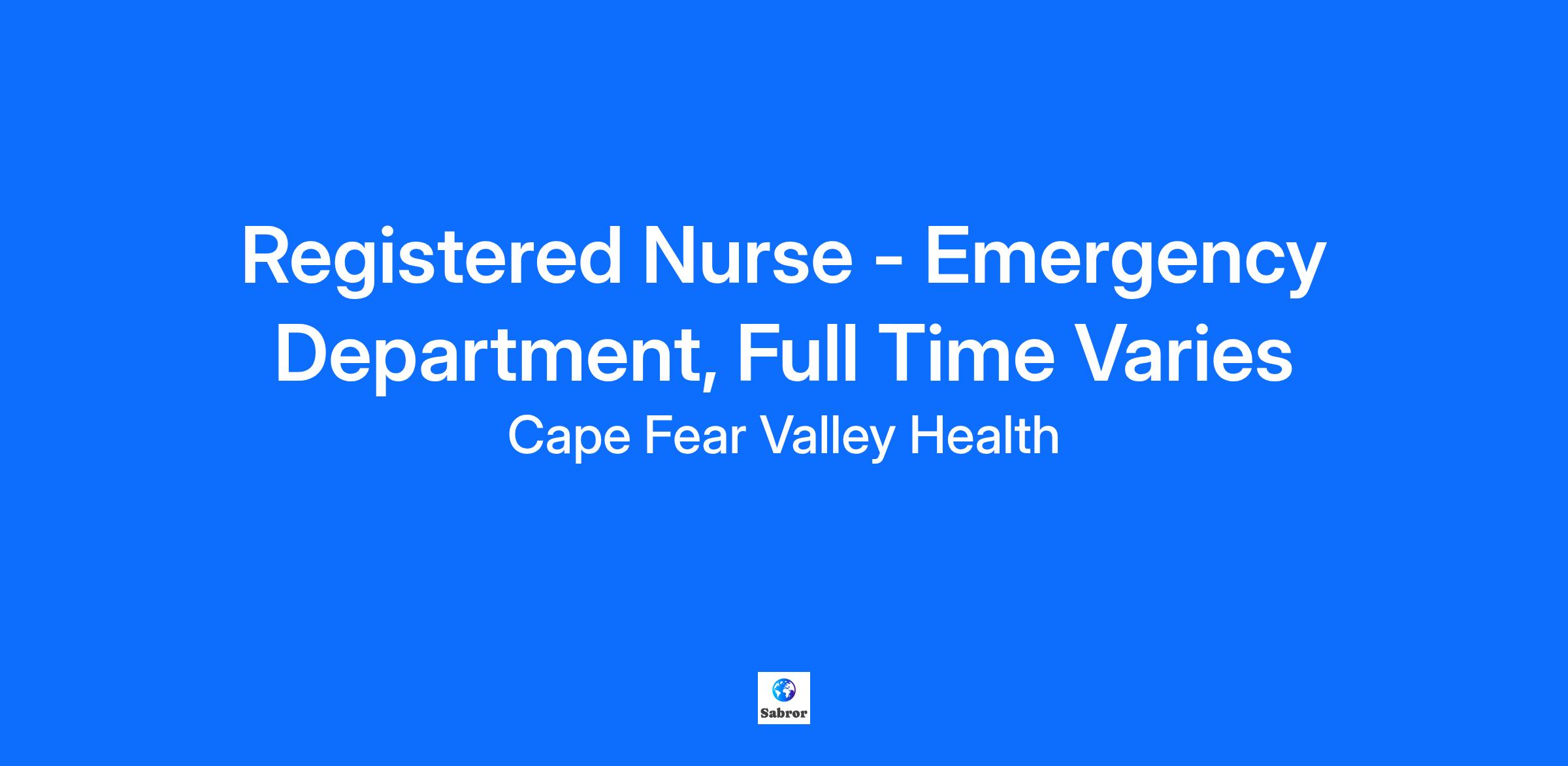 $20,000 Sign on Bonus and Relocation Available for Eligible Candidates. Facility Cape Fear Valley Medical Center Location Fayetteville, North Carolina Department Emergency Department Job Family Nursing Work Shift Summary Registered Nurse, RN plans and implements professional nursing care for patients in accordance with hospital policies. Assumes charge nurse responsibilities as assigned. Major Job Functions The following is a summary of the major essential functions of this job. The incumbent may perform other duties, both major and minor, that are not mentioned below. In addition, specific functions may change from time to time: Assesses the patient and identifies patient care needs Uses patient assessment information to organize appropriate patient care Plans, organizes, implements, and evaluates patient care Facilitates a safe environment Maintains required competencies Functions as charge nurse as assigned Maintains an accurate and relevant record of patient care Administers medication as ordered by physician Recognizes life threatening situations and responds appropriately Establishes collaborative interdisciplinary relationships with other Health System staff and medical staff Monitors the quality of care based on pre-established outcome-oriented indicators Actively participates in cost containment and assists in accurate charging for patient services Adjusts care based upon age-specific physiological and psychosocial needs of patients Supports patients in the practice of their cultural and spiritual beliefs within limits of medical regimen Other duties as assigned Minimum Qualifications The following qualifications, or equivalents, are the minimum requirements necessary to perform the essential functions of this job: Education and Formal Training: Associate's degree in nursing required Bachelor's degree in nursing preferred Current licensure in North Carolina as a Registered Nurse or Compact state licensure Unit Description: Main Emergency Department is a 64-bed adult level III trauma unit. Working on a track schedule. Patient ratio 1:3. Our Care team consists of Registered Nurses, a Clinical Educator, Nursing Assistant's, Unit Secretary, Resource Nurses, Physicians, Physician’s Assistant, Case Managers, Physical Therapists, Dieticians and Occupational and Speech Therapists, Charge Nurses New Graduate Nurses are accepted and welcome! Work Experience: 3-4 years of related clinical experience preferred Asthma exacerbations Diabetic Ketoacidosis Fever Seizures Sickle Cell Crisis Respiratory Complaints (RSV, pneumonia) Sepsis Syncope, near syncope Post op complaints Ear Infections Appendicitis Trauma-related injuries Lacerations Procedural Sedations Abuse and Sexual Assaults Strep throat & Tonsillitis Abdominal pain Various related emergencies pertaining to adults Knowledge, Skills, and Abilities Required: Demonstrates positive interpersonal skills Verbal and written skills required Demonstrates effective organizational and leadership skills Has knowledge of the age-specific physiological and psychosocial, developmental and spiritual needs of the patients typically served Physical Requirements: Speech and auditory acuity for communication of patient needs Visual acuity for observation of patients Much standing, walking, bending, and lifting May involve skin, eye, mucous membrane, or parenteral contact with blood or other potentially infectious material Required Licenses and Certifications BLS - American Heart Association, RN - Board Of Nursing Cape Fear Valley Health System is an Equal Opportunity Employer M/F/Disability/Veteran/Sexual Orientation/Gender Identity Explore the exciting opportunities at Cape Fear Valley — watch this short video to learn more! For exceptional healthcare come to Cape Fear Valley Health where caring employees are committed to integrity, patient-centeredness and excellence throughout the entire healthcare process. At Cape Fear Valley Health, our goal is to improve the quality of every life we touch. Our diverse team of doctors, nurses and staff work together to create a better experience for every patient, every time. Cape Fear Valley is a 950-bed, 8-hospital regional health system, the 8th largest in North Carolina, with more than 1 million inpatient and outpatients annually. A private not-for-profit organization with over 7,000 employees and 850 physicians. Our employees and physicians proudly serve a seven-county region of southeastern North Carolina, including Fayetteville, Fort Bragg, Hope Mills, Raeford, Lumberton, Elizabethtown, Clinton, Lillington, Dunn and beyond. Our medical facilities include Cape Fear Valley Medical Center, Highsmith-Rainey Specialty Hospital, Cape Fear Valley Rehabilitation Center, Behavioral Health Care, Bladen County Hospital, Hoke Hospital, Central Harnett Hospital, Betsy Johnson Hospital, as well as more than 60 medical offices and specialty care clinics spread throughout the Cape Fear region.