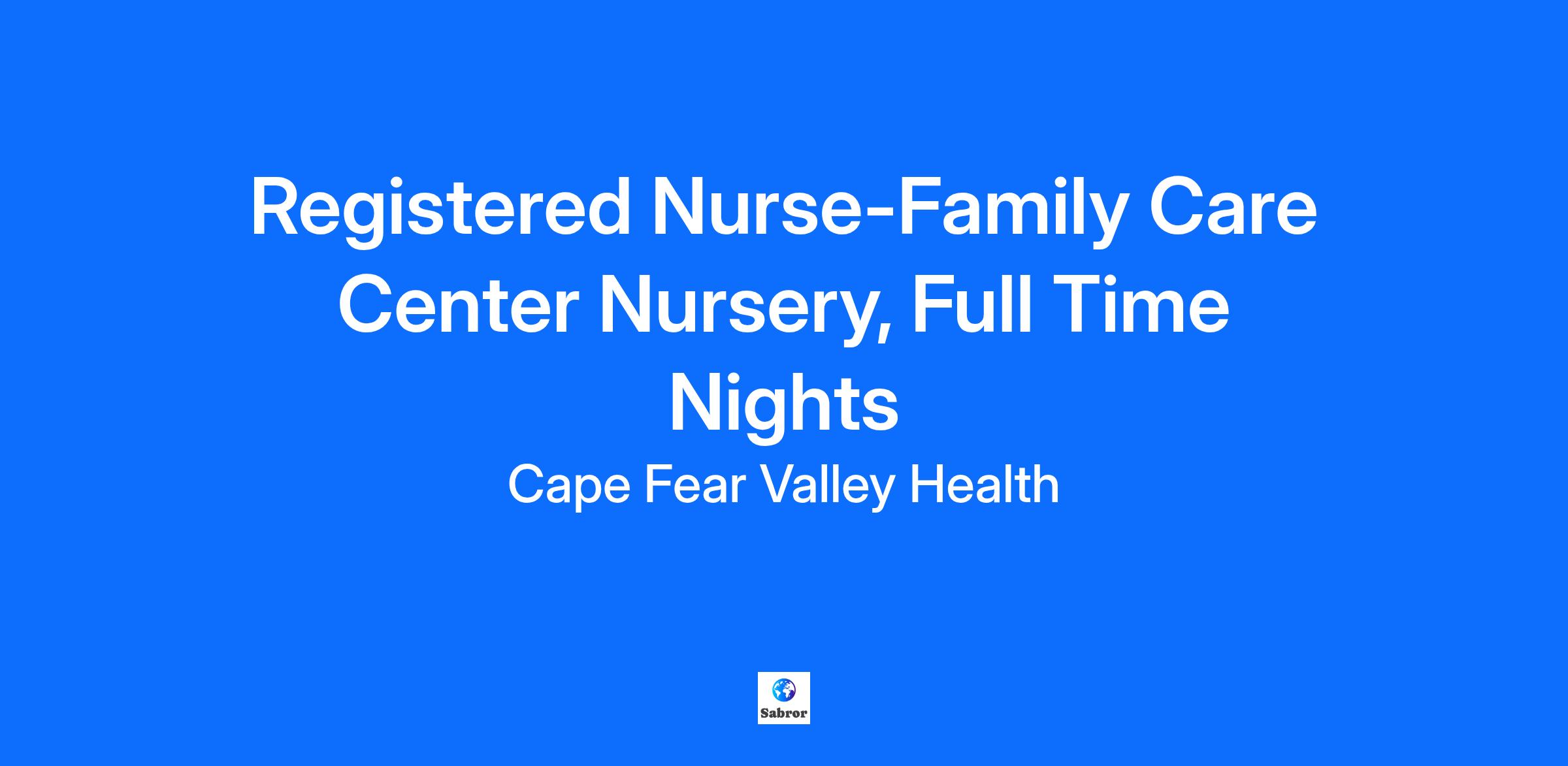 $20,000 Bonus and Relocation Assistance Available Facility Cape Fear Valley Medical Center Location Fayetteville, North Carolina Department Family-Centered Care Nursery Job Family Nursing Work Shift Nights (United States of America) Summary Registered Nurse, RN Plans and implements professional nursing care for patients in accordance with hospital policies. Assumes charge nurse responsibilities as assigned. Major Job Functions The following is a summary of the major essential functions of this job. The incumbent may perform other duties, both major and minor, that are not mentioned below. In addition, specific functions may change from time to time: Assesses the patient and identifies patient care needs Uses patient assessment information to organize appropriate patient care Plans, organizes, implements, and evaluates patient care Facilitates a safe environment Maintains required competencies Functions as charge nurse as assigned Maintains an accurate and relevant record of patient care Administers medication as ordered by physician Recognizes life threatening situations and responds appropriately Establishes collaborative interdisciplinary relationships with other Health System staff and medical staff Monitors the quality of care based on pre-established outcome-oriented indicators Actively participates in cost containment and assists in accurate charging for patient services Adjusts care based upon age-specific physiological and psychosocial needs of patients Supports patients in the practice of their cultural and spiritual beliefs within limits of medical regimen Other duties as assigned Minimum Qualifications The following qualifications, or equivalents, are the minimum requirements necessary to perform the essential functions of this job: Education and Formal Training: Associates Degree in Nursing required Bachelors Degree in Nursing preferred Current licensure in North Carolina as a Registered Nurse or Compact state licensure Unit Description: 30 bed Newborn Nursery that offers routine care for the term or late preterm neonates who have demonstrated successful adaptation to extra-uterine life. Patient ratio 1:3. New Graduate Nurses are accepted and welcome Work Experience: 1-2 years of related clinical experience preferred. Neonatal knowledge Knowledge, Skills, and Abilities Required: Demonstrates positive interpersonal skills Verbal and written skills required Demonstrates effective organizational and leadership skills Has knowledge of the age-specific physiological and psychosocial, developmental and spiritual needs of the patients typically served Physical Requirements: Speech and auditory acuity for communication of patient needs Visual acuity for observation of patients Much standing, walking, bending, and lifting May involve skin, eye, mucous membrane, or parenteral contact with blood or other potentially infectious material Required Licenses and Certifications BLS - American Heart Association, RN - Board Of Nursing Cape Fear Valley Health System is an Equal Opportunity Employer M/F/Disability/Veteran/Sexual Orientation/Gender Identity For exceptional healthcare come to Cape Fear Valley Health where caring employees are committed to integrity, patient-centeredness and excellence throughout the entire healthcare process. At Cape Fear Valley Health, our goal is to improve the quality of every life we touch. Our diverse team of doctors, nurses and staff work together to create a better experience for every patient, every time. Cape Fear Valley is a 950-bed, 8-hospital regional health system, the 8th largest in North Carolina, with more than 1 million inpatient and outpatients annually. A private not-for-profit organization with over 7,000 employees and 850 physicians. Our employees and physicians proudly serve a seven-county region of southeastern North Carolina, including Fayetteville, Fort Bragg, Hope Mills, Raeford, Lumberton, Elizabethtown, Clinton, Lillington, Dunn and beyond. Our medical facilities include Cape Fear Valley Medical Center, Highsmith-Rainey Specialty Hospital, Cape Fear Valley Rehabilitation Center, Behavioral Health Care, Bladen County Hospital, Hoke Hospital, Central Harnett Hospital, Betsy Johnson Hospital, as well as more than 60 medical offices and specialty care clinics spread throughout the Cape Fear region.