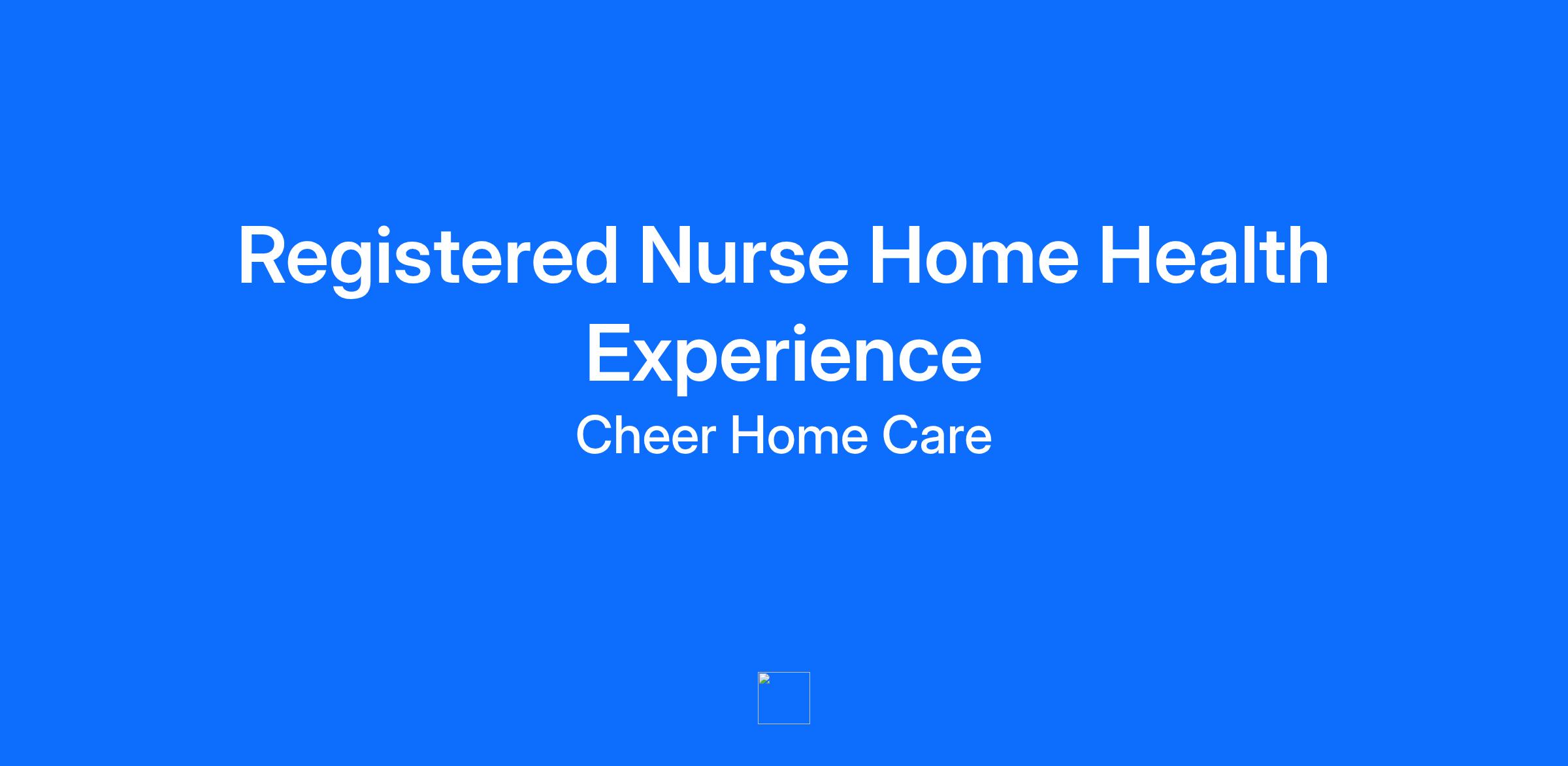 Hourly Pay Rate: $48-$75 based on experience Are you looking to make a POSITIVE IMPACT in your community? Do you believe nursing is more than tasks, that it is about connection, compassion, and making a difference?" Cheer Home Care is looking for a Registered Nurse who loves spending time with older adults and provide high quality care in home. The RN collaborates with interdisciplinary team members to develop and implement individualized care plans and provides constant feedback to clients, client representatives, and nurses. . This position responsibilities will include: Complete assessment of client and needs Education to client and families Chronic Care Management Develop care plan and establish goals Post-surgical and wound care as needed Wellness support Current, unrestricted California registered nurse license 3 years of experience as a registered nurse Home Health experience preferred Proof of Negative TB result Physical Screening Documentation within the last year Active California Drivers license and car insurance Cell phone with Internet Access Fun Work Environment Supportive Team and Management Anthem Blue Cross or Kaiser Health Insurance United Concordia Dental Insurance Vision Insurance Matching 4% 401K Plan Career Advancement Opportunities Hourly Pay Rate: $48-$75 based on experience. Potential for team bonus. Notice to Search Firms/Third-Party Recruitment Agencies: The Recruiting team manages the recruitment and employment process for Cheer Home Care Inc. or Cheer Health Care Inc. (“Cheer”). Cheer does not accept resumes from recruiters or search firms without an executed search agreement in place.