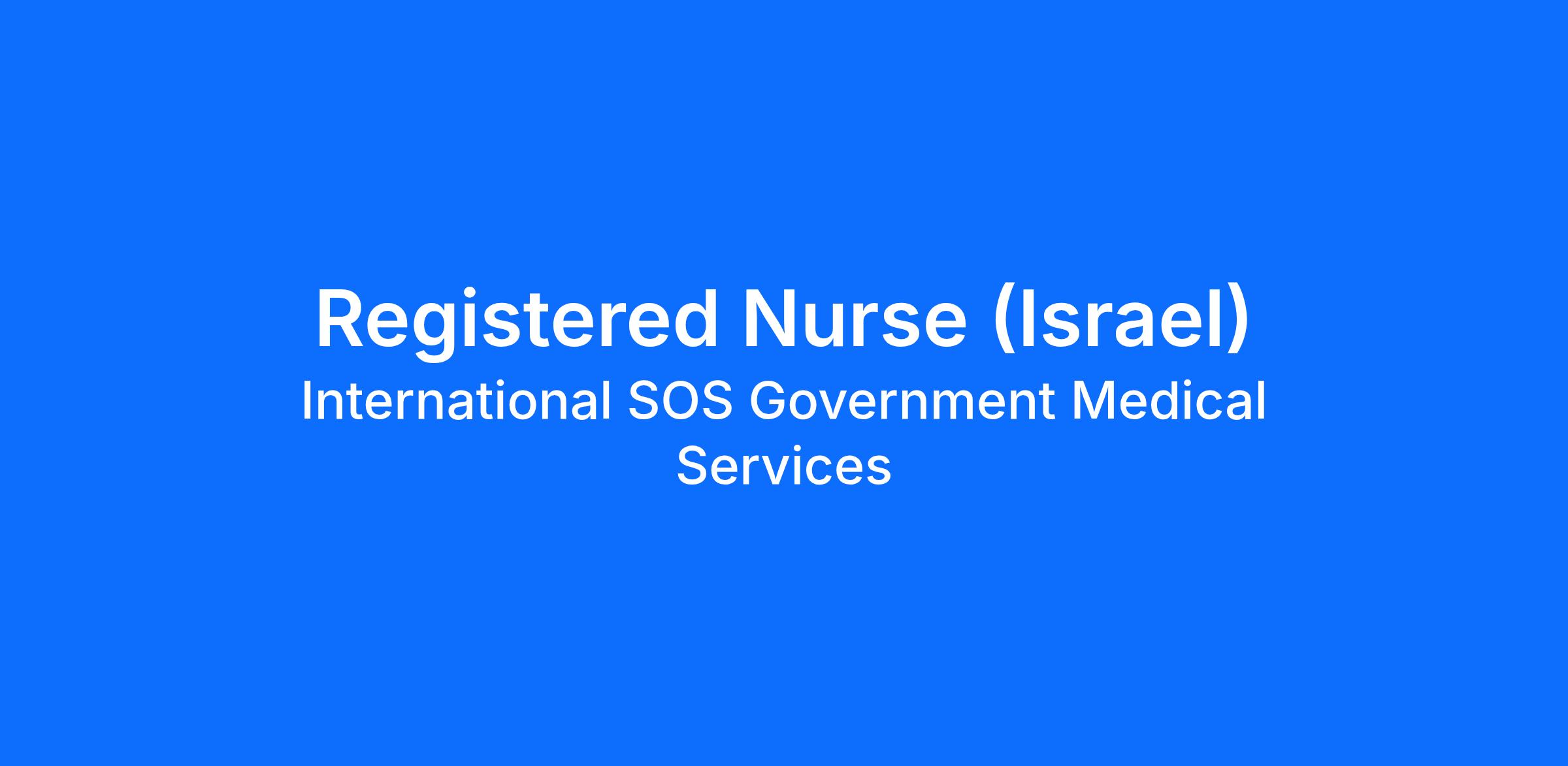The Registered Nurse in this position will represent International SOS Government Medical Services, Inc. and will provide comprehensive health services to DOS, DOD, and contractor personnel stationed in Israel. Registered Nurses will use a holistic approach to care for the patients requiring acute medical or surgical interventions. Nurses will be accountable clinically for ensuring nursing care compliance with accepted standards of care and clinical practice. Nurses will use clinical judgment in assessing, planning, implementing, documenting, and evaluating patient care in variety of settings where life-threatening disease or injury requires close monitoring and at times quick intervention.
