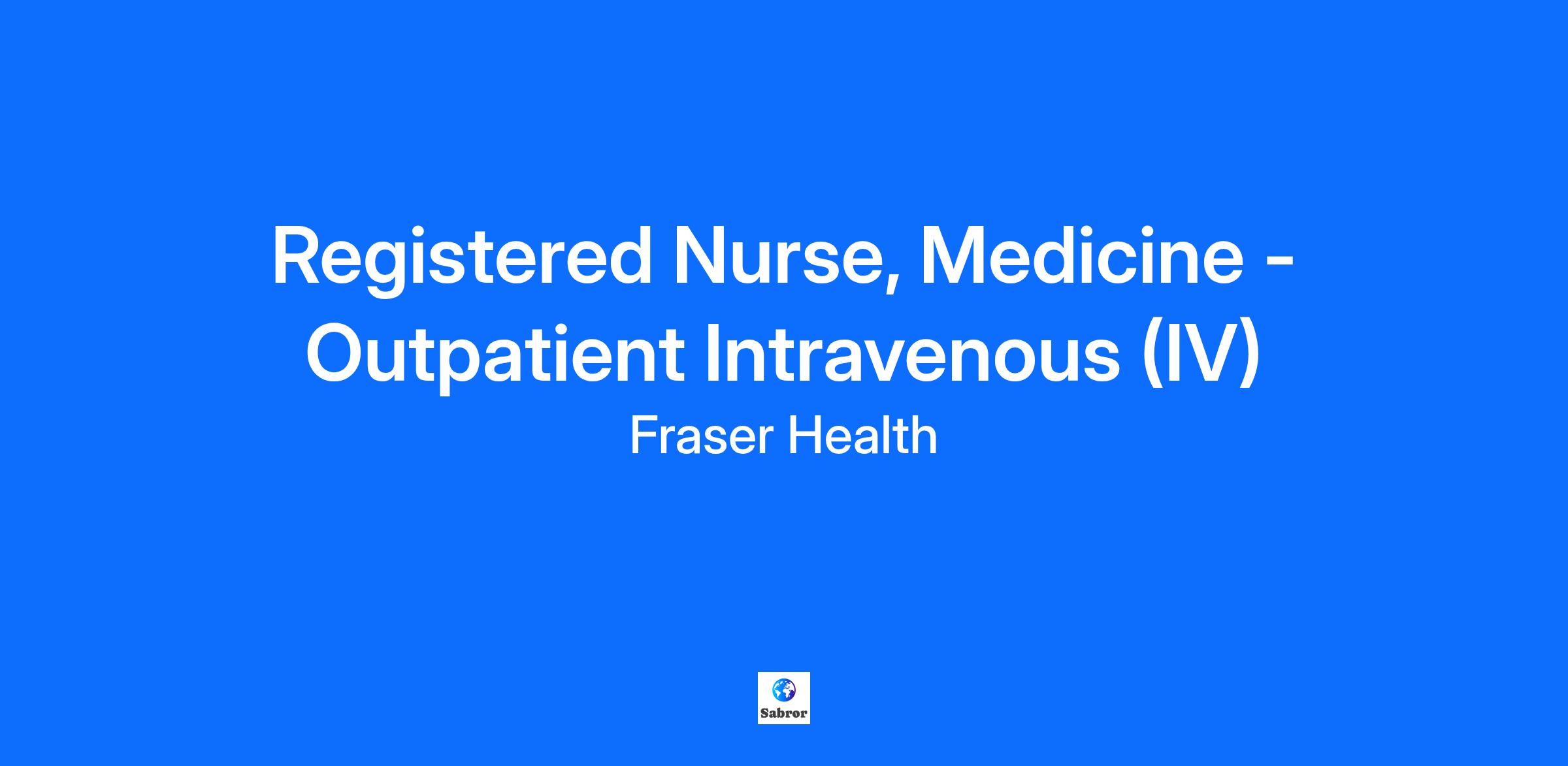 Registered Nurse, Medicine - Outpatient Intravenous (IV)