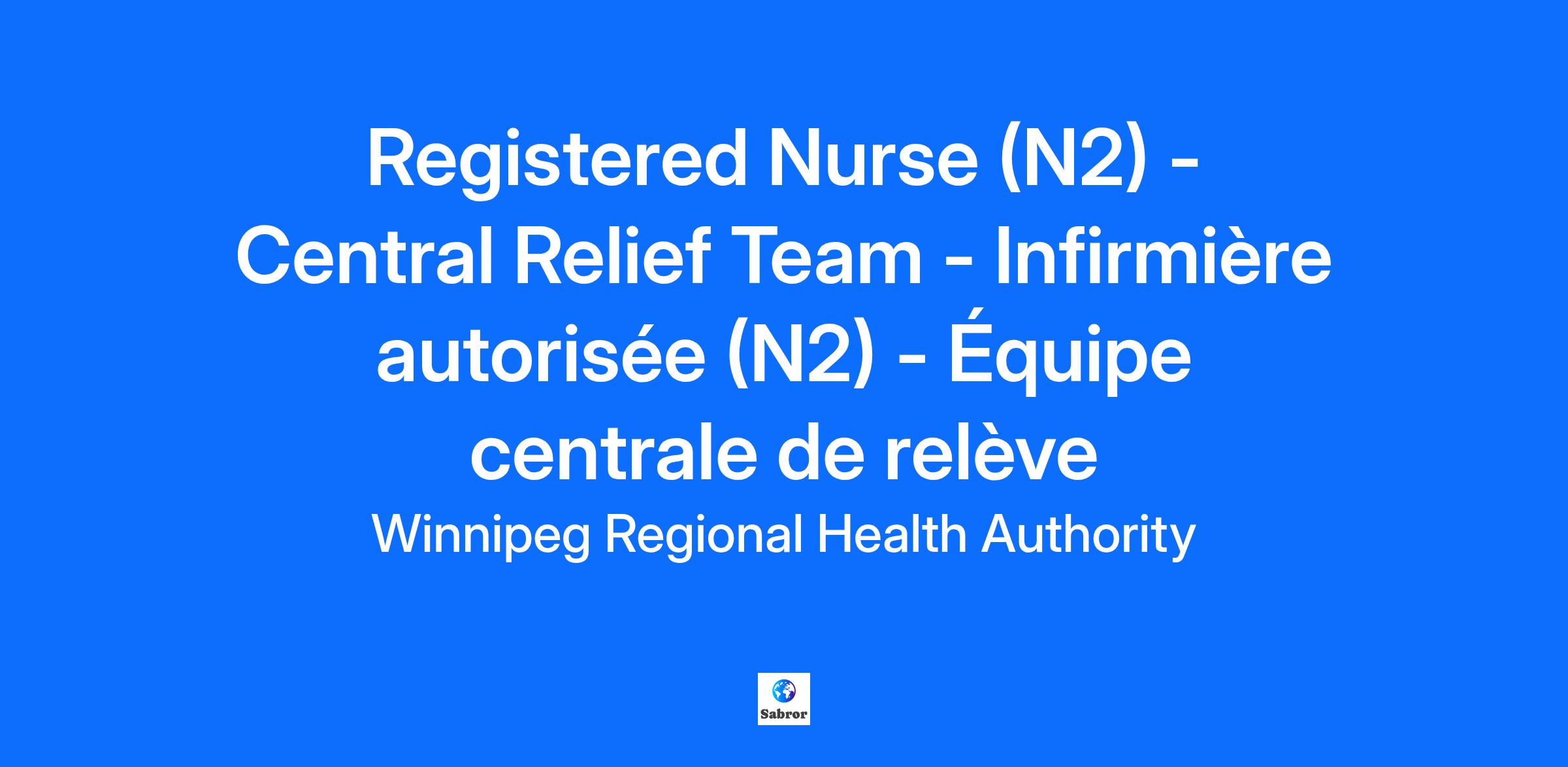 Registered Nurse (N2) - Central Relief Team - Infirmière autorisée (N2) - Équipe centrale de relève