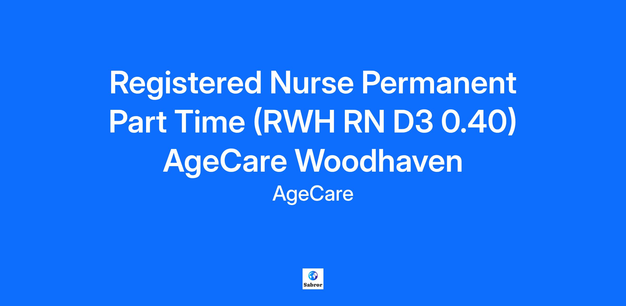 Registered Nurse Permanent Part Time (RWH RN D3 0.40) AgeCare Woodhaven