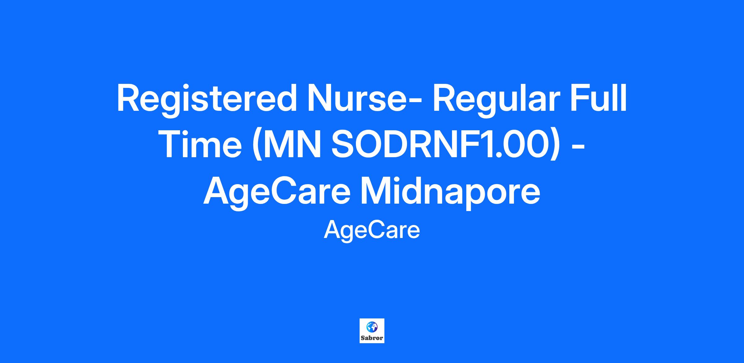 Registered Nurse- Regular Full Time (MN SODRNF1.00) - AgeCare Midnapore