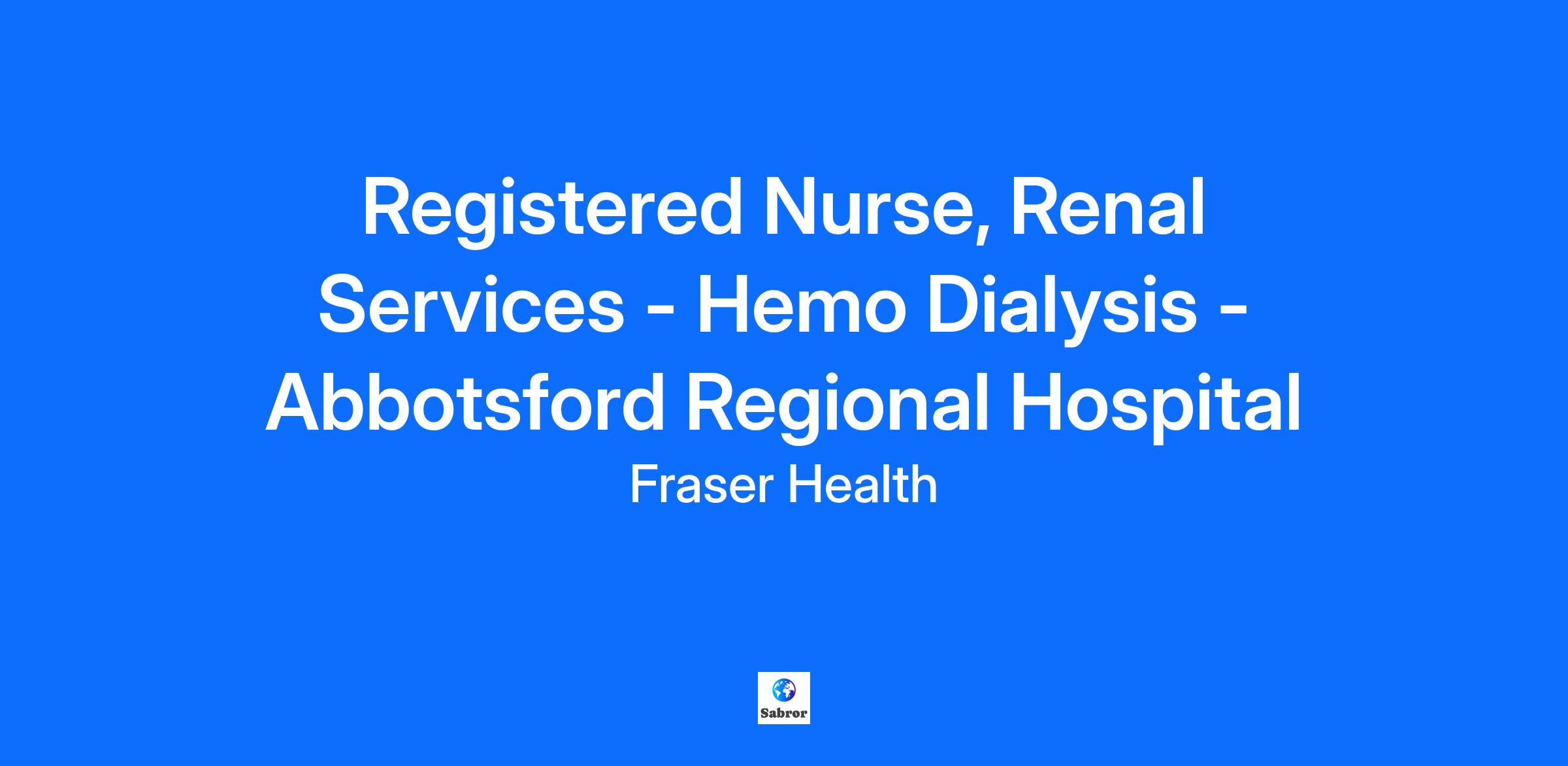 Salary The salary range for this position is CAD $41.42 - $59.52 / hour Job Summary We are currently hiring for a Relief Full Time Registered Nurse, Renal Services to join our Hemo Dialysis team at Abbotsford Regional Hospital located in Abbotsford, B.C. This position is available until approximately June 2026 or until the return of the incumbent. This position requires post-graduate specialty education in Nephrology. If you have not completed a post-graduate program in Nephrology (Hemodialysis-Renal) but are interested, please apply and indicate your interest in pursuing Specialty Education. Fraser Health offers sponsorship for RNs/LPNs to gain your specialty education through an in-house program affiliated with BC Renal. Connect with us! Joining our team offers you opportunities to work in a rapidly growing organization with health professionals who are excellent in their respective fields. Fraser Health offers opportunities for career growth and advancement and competitive benefits, including but not limited, to: Four weeks of vacation to start Comprehensive 100% employer paid benefits Immediate enrollment in a defined municipal pension plan 87% maternity top-up 50% subsidy on Translink passes *Eligibility based on employment status We invite you to apply today and find out why employees recommend Fraser Health to their friends as an exceptional place to work. We are committed to planetary health, we value diversity in the work force and seek to maintain an environment of Respect, Caring and Trust. Connect with us on our Careers social channels where you’ll learn about exciting opportunities, get career tips from our recruiters, and meet some of your future team members! You can also visit us on Indeed and Glassdoor. Instagram | Facebook | LinkedIn | X Detailed Overview In accordance with the British Columbia College of Nurses and Midwives (BCCNM) standards of practice and the Mission and Values of Fraser Health, and working collaboratively with the inter-professional care team in the provision of person-centered care, the Registered Nurse provides direct patient care by assessing, planning, providing and evaluating nursing care to patients. May be requested to perform duties at various sites within Fraser Health. Responsibilities Conducts a comprehensive nursing assessment of the patient on admission and at regular intervals. Assesses patient and collects information from a variety of sources using skills of observation, communication, data review and physical assessment. Makes a nursing diagnosis of the patient''s condition and determines whether the condition can be improved or resolved by an appropriate nursing intervention. Identifies risk factors. Plans, performs and evaluates nursing interventions and care. Collaborates with patients and their families/care givers, Physicians and members of the inter-professional care team in the development, implementation and ongoing modification of the care plan. Establishes a therapeutic relationship by demonstrating empathy, trust and respect, advocating for the patient/family's rights to privacy, dignity and access to information; ensures patient/family's choice and autonomy in decision-making and care planning. Participates in the care and discharge planning process for patients on admission; ensures the care plan is established and implemented effectively; updates care plan and intervenes as appropriate, collaborates with the inter-professional care team to ensure comprehensive care planning and delivery, and collaborates and communicates with the Patient Care Coordinator/Team Leader on issues that affect the care/discharge plan. Coordinates nursing care for the patient, sets priorities, assigns and delegates tasks to support staff, and makes referrals to the inter-professional care team according to established protocols and practice standards. Collaborates with members of the inter-professional care team including Physicians, Patient Care Coordinators, Clinical Nurse Educators, and other health care professionals/providers as required in the identification and resolution of issues, changes in patient condition, and adjustments to care plans. Teaches patients and families/care givers focusing on illness prevention, health restoration and health maintenance to help patients accomplish their health care goals. Assesses learning needs of the patient and family/care giver; provides information and demonstration of care activities to support self-care and the discharge plan. Plans and discusses referral information with patient and their families/care givers and, in collaboration with members of the inter-professional care team, initiates referrals to appropriate health care/community agencies. Documents assessments, nursing diagnosis, observations, interventions, patient/family responses, outcomes/evaluations, and referrals according to practice standards and Fraser Health procedures. Participates in and attends in-services and other educational programs. Identifies own learning goals and maintains and updates current clinical competence and knowledge within area of practice. Acts as a preceptor or mentor to guide the clinical experience of assigned new nursing staff and students; promotes the philosophy of family centered care, self-care and Best Practice principles; shares information, demonstrates care activities, and participates in orientation. Participates on designated programs and professional committees, care conferences and councils as assigned, or as agreed to with the Manager. Provides feedback to the Manager/delegate on the effectiveness of patient care programs, policy/clinical decision support tools (e.g. clinical pathways, standards of care, order sets and procedures), and equipment. Participates in quality improvement and risk management activities; identifies patient care issues, collects data, provides input/recommendations to the inter-disciplinary team on corrective action, and promotes changes to practices, procedur