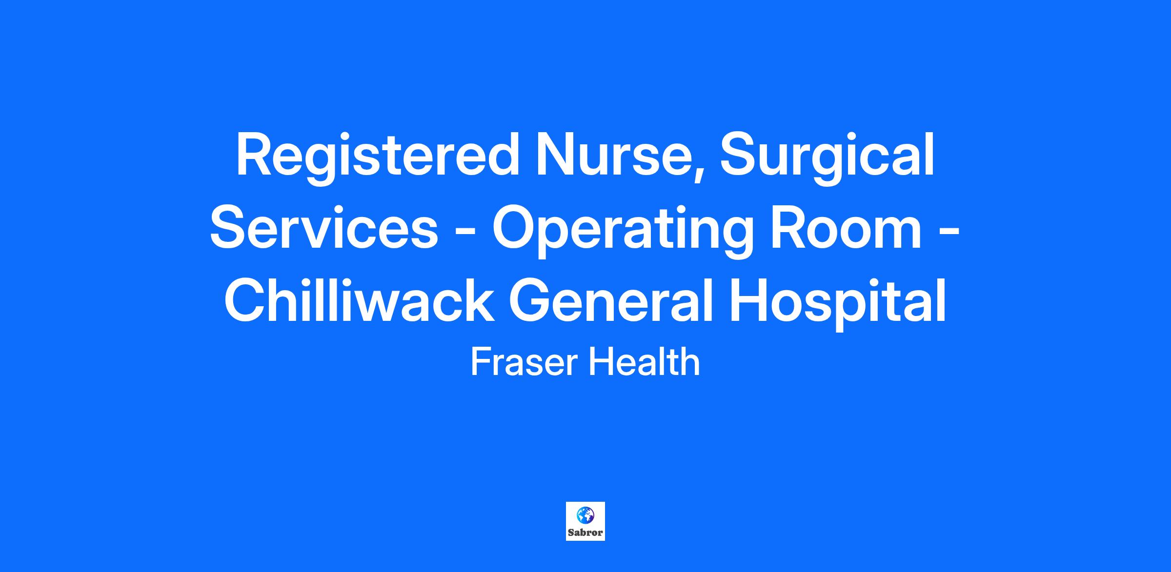 Salary The salary range for this position is CAD $41.42 - $59.52 / hour Job Summary Are you someone who has a real passion for helping others? Are you a registered Nurse looking to showcase your knowledge, skills, and abilities in a new and dynamic environment? If you've answered yes to these questions, then we want you to keep reading! We currently have an exciting opportunity for a Relief Full Time Registered Nurse, Surgical Services - Operating Room to join our team at Chilliwack General Hospital. Experience some of the benefits of working with us, including: Career advancement and growth opportunities Comprehensive health benefits including extended health and dental 100% paid by us, that cover you and your whole family. Health and well-being resources, including an employee and family assistance program. Generous vacation time: eligible employees can earn up to four (4) weeks of vacation per year, with the possibility of accruing extra time based on there tenor with us. Access to exclusive staff discounts and perks with various partners including, a Transit Incentive Program A defined pension plan. Join our team at Fraser Health! Detailed Overview In accordance with the British Columbia College of Nurses and Midwives (BCCNM) standards of practice and the Mission and Values of Fraser Health, the Registered Nurse (RN), O.R. provides direct nursing care to patients within the Operating Room (OR) according to established standards and administrative policies and procedures. Assesses patients physical and psycho-social needs; identifies problems, plans, implements, documents, evaluates and coordinates the nursing care of assigned patients and performs scrubbing and circulating duties. Responsibilities Assesses, plans, implements and evaluates nursing care of patients. Identifies actual or potential problems, plans interventions, performs planned interventions and evaluates outcomes. Receives and admits patients to the OR. Coordinates and provides nursing care to patients according to physician and anaesthetist orders and in conformance with established standards and hospital policies. Sets priorities, assigns and delegates tasks to appropriate staff Participates in identifying and reducing risk factors that may impact the patient and/or health care team. Acts as an advocate to protect and promote the patient's right to autonomy, respect, privacy, dignity and access to information. Modifies care as needs change. Initiates immediate treatment, such as applying non-invasive monitoring devices if required. Obtains, checks, sets up and positions supplies, instruments and equipment required for surgery ensuring that instruments and equipment are in working order. Reports instruments/equipment in need of repair. Follows standardized count policy and provides appropriate documentation. Performs scrub and circulation duties within the OR according to prescribed procedures and protocols. Collects information from a variety of sources using skills of observation, communication and physical assessment to enable the provision of appropriate nursing care. Participates in quality improvement activities and research by identifying patient care issues and collecting data. Participates as an active member on nursing and hospital committees and councils for improvement of patient care and/or work environment. Participates in the orientation and ongoing education of nursing staff and students by providing information and acting as a preceptor and mentor as appropriate. Participates in the evaluation of patient care programs, techniques, standards and procedures by providing feedback about effectiveness and patient care outcomes. Maintains a safe environment for patients, families and staff by adhering to established safety and emergency practices and procedures. Performs other related duties as assigned. Qualifications Education and Experience Graduation from an approved School of Nursing. Current practicing registration as a Registered Nurse with the British Columbia College of Nurses and Midwives (BCCNM). One (1) year's recent relevant clinical nursing experience in the designated clinical area, and completion of post graduate course work and/or certification applicable to the designated clinical area, or an equivalent combination of education, training and experience. Skills and Abilities Clinical proficiency in the designated clinical area. Ability to complete initial and ongoing patient assessment (clinical and diagnostic reasoning) and provide nursing care through appropriate / prescribed technical, therapeutic, and safety interventions. Ability to determine and deal with emergency situations. Ability to recognize acuity changes. Ability to use factual information, prior learning and basic principles and procedures to support nursing decisions and actions with relevant research-based evidence / evidence-informed practice. Ability to communicate effectively with patients, families/care givers, the public, medical staff and members of the interprofessional care team using verbal, written and electronic applications. Ability to promote person-centered care that demonstrates empathy for patients and families/care givers, sensitivity to diverse cultures and preferences, and patient advocacy. Ability to integrate and evaluate data from multiple sources to problem-solve effectively. Ability to organize and prioritize work. Ability to collaborate with and promote cooperation among members of the interprofessional care team. Ability to operate related equipment including relevant computer applications. Physical ability to perform the duties of the position. About Fraser Health Fraser Health is the heart of health care for over two million people in Metro Vancouver and the Fraser Valley in British Columbia, Canada, on the traditional, ancestral and unceded lands of the Coast Salish and Nlaka’pamux Nations and is home to 32 First Nations within the Fraser Salish region. People - those we care for and those who