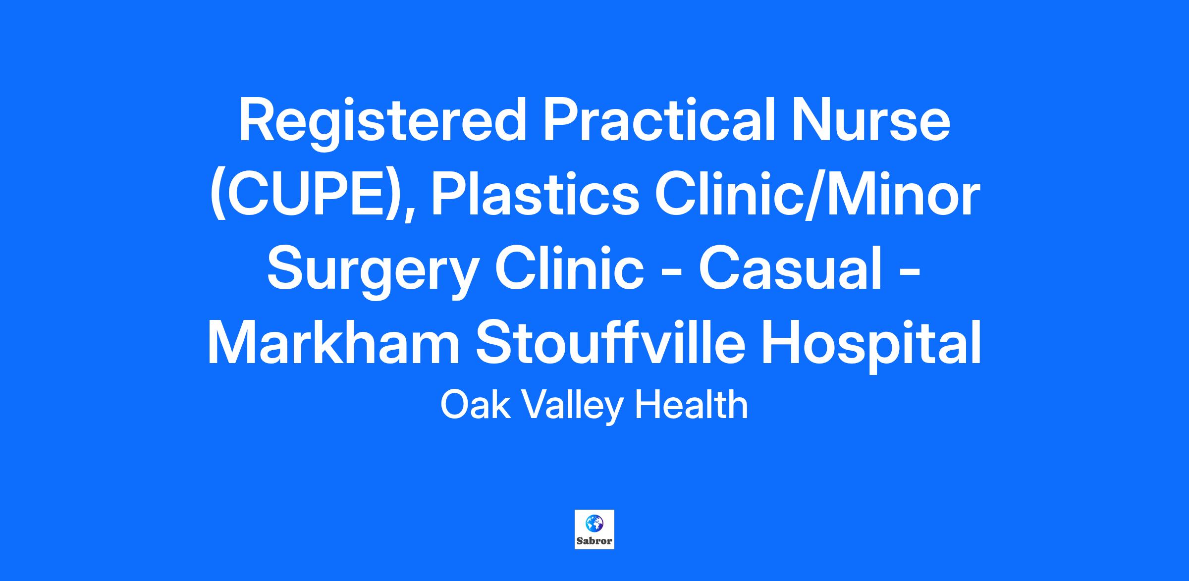 Please Note: If you are a current Oak Valley Health employee, apply to this job via the internal Workday application. Land acknowledgement: Oak Valley Health is honoured to provide care on the traditional and treaty territory of the Anishinaabeg, and acknowledge our closest Indigenous communities, the Chippewas of Georgina Island and the Mississaugas of Scugog Island. The land is encompassed within Treaty 13, Treaty 20, and the Williams Treaty. Today, this area is home to many diverse Indigenous Peoples, and we acknowledge the health disparities and barriers Indigenous Peoples face in accessing care. To support true healing, we are committed to understanding these challenges, learning from Indigenous knowledge, and taking action together to improve safe and equitable health care for current and future generations. Who you are: You encompass Oak Valley Health’s core values and live the words of respect, trust, commitment, compassion and courage You are a patient and/or client centered individual who performs at an exemplary standard You are a team player with excellent communication, critical thinking and prioritization skills Closing Date September 23, 2025 What we are looking for: As a member of our inter-professional team, you will work closely with Plastic Surgeons, Orthopaedic Technologists, the Fracture Clinic, Physiotherapists, Occupational Therapists and Wound Care Nurses in providing patient care within the Plastic Clinic. As a member of this team, you will also work collaboratively with General Surgeons, and Ophthalmologists to provide patient care within the Minor Surgery Clinic. You will utilize your clinical assessment, patient teaching communication, critical thinking and leadership skills in this fast-paced environment where our focus is patient/family centered care, evidence based practice and customer satisfaction. What you bring to the role: Certificate in Practical nursing required Post graduate certificates in aseptic procedures (Perioperative Certificate), physical assessment and medications is required Current Certificate of Registration with the College of Nurses Current BCLS certification Minimum 2 years recent experience working in an operating room setting as a scrub nurse Minimum of 2 years recent experience, within the past year, in an ambulatory care setting including Plastics, Fracture and minor procedures. Demonstrated knowledge of aseptic technique, completion of an operating room course Demonstrated knowledge of patient education Demonstrated knowledge of suture removal, dressing changes and assisting with minor procedures is required RPNAO membership is preferred Demonstrated excellent physical assessment skills Ability to critically think, problem solve and function in a fast paced clinic environment Ability to act as a resource and role model Ability to assist with start up of a new clinic Proficient computer skills Demonstrated commitment to a patient/family centred care environment Demonstrated ability to work effectively within an interprofessional team as well as independently Well developed organization, communication, interpersonal skills Evidence of ongoing professional development, continuing education and leadership experience Demonstrated good attendance and performance records with the ability to maintain these same standards Demonstrated commitment to a healthy and safe workplace for self and others (staff, patients, families, etc.) by taking all reasonable precautions and working in compliance with hospital related policies, health and safety legislation and best practices and completing relevant mandatory education as required Work Schedule: 07:30 AM - 03:30 PM, 07:30 AM - 11:30 AM, 08:00 AM - 04:00 PM, 08:00 AM - 12:00 PM, Please note schedules may change due to operational needs. Compensation: CU10 Range: $36.81 - $38.16 Who we are: Oak Valley Health is one of Ontario’s leading community health care organizations and include Markham Stouffville Hospital, Uxbridge Hospital, and our Reactivation Care Centre. Across our hospitals and the RCC we provide high quality, patient-centred care to more than 468,000 patients each year. We offer diagnostic and emergency services and deliver clinical programs in acute care medicine and surgery, addictions and mental health, and childbirth and children’s services. We are also proud to be part of the Eastern York Region North Durham Ontario Health Team (OHT). Our 542 physicians, 35 midwives, over 3,000 staff and 1,000 volunteers serve patients and families with an honoured to care mindset and are focused on delivering an extraordinary patient experience to the residents of Markham, Whitchurch-Stouffville, Uxbridge and beyond. We are dedicated to providing access to the right care, at the right time, in the right place by the right people and at the right cost. Are you ready to join us? Oak Valley Health diversity statement Oak Valley Health takes pride in serving some of Canada’s most diverse communities. We are committed to fostering an environment of equity and inclusivity where every person can work and receive care safely, openly and honestly. All qualified applicants will receive consideration and we encourage applications from Indigenous peoples, members of sexual minority groups, members of racialized groups, persons with disabilities, and all others who may contribute to the further diversification of Oak Valley Health. Furthermore, Oak Valley Health is committed to meeting the needs of all individuals in accordance with the Accessibility for Ontarians with Disabilities Act (AODA) and the Ontario Human Rights Code. Should you require accommodations during the recruitment and selection process, please contact Human Resources. We are honoured to be recognized as one of Forbes Canada's Best Employers for Diversity 2023. We ranked within the top 150 organizations across the country. Learn more about our commitment to EDI. Learn more about our Honoured to care culture: https://youtu.be/PV2Tyb