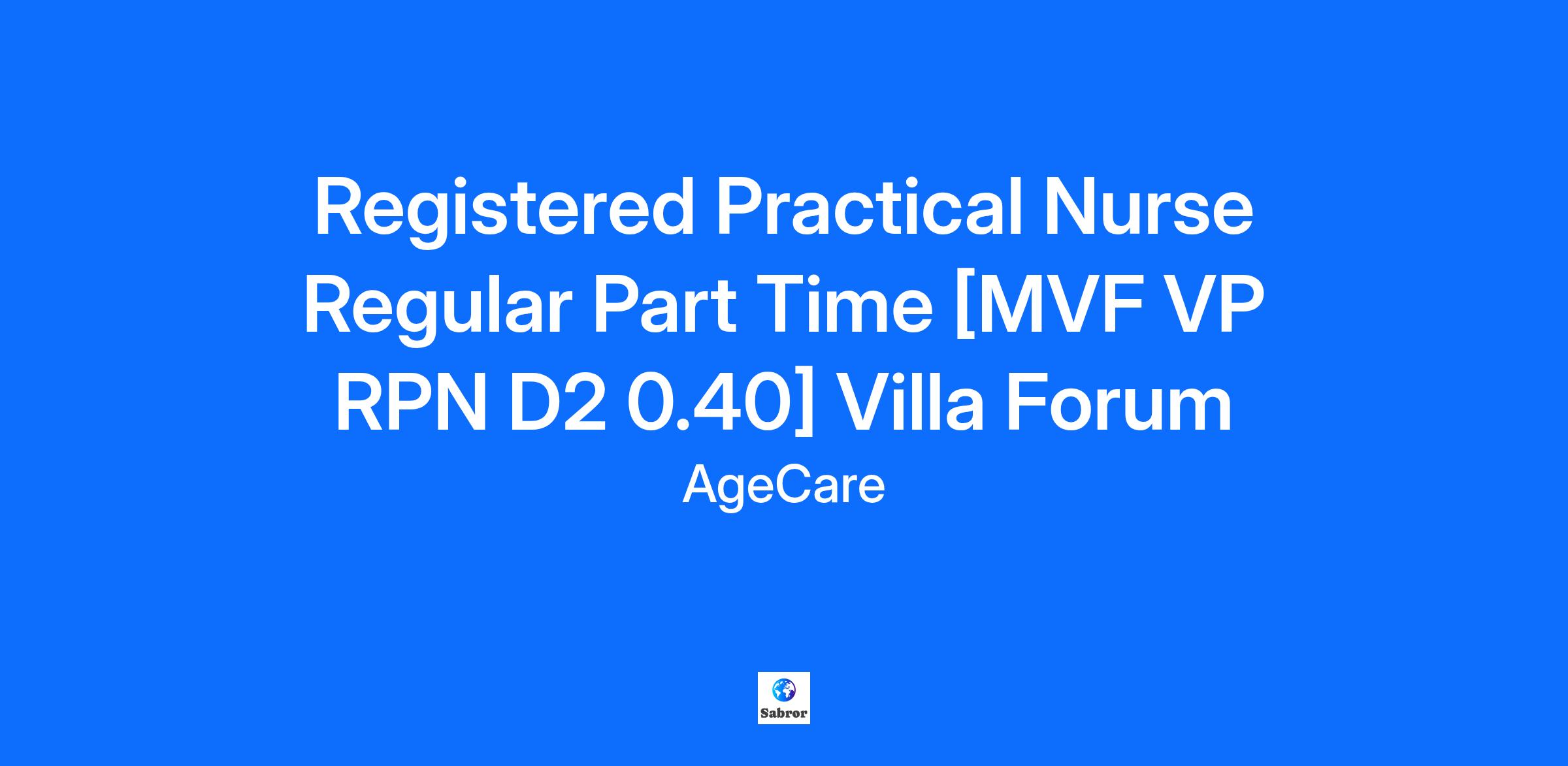 Registered Practical Nurse Regular Part Time [MVF VP RPN D2 0.40] Villa Forum