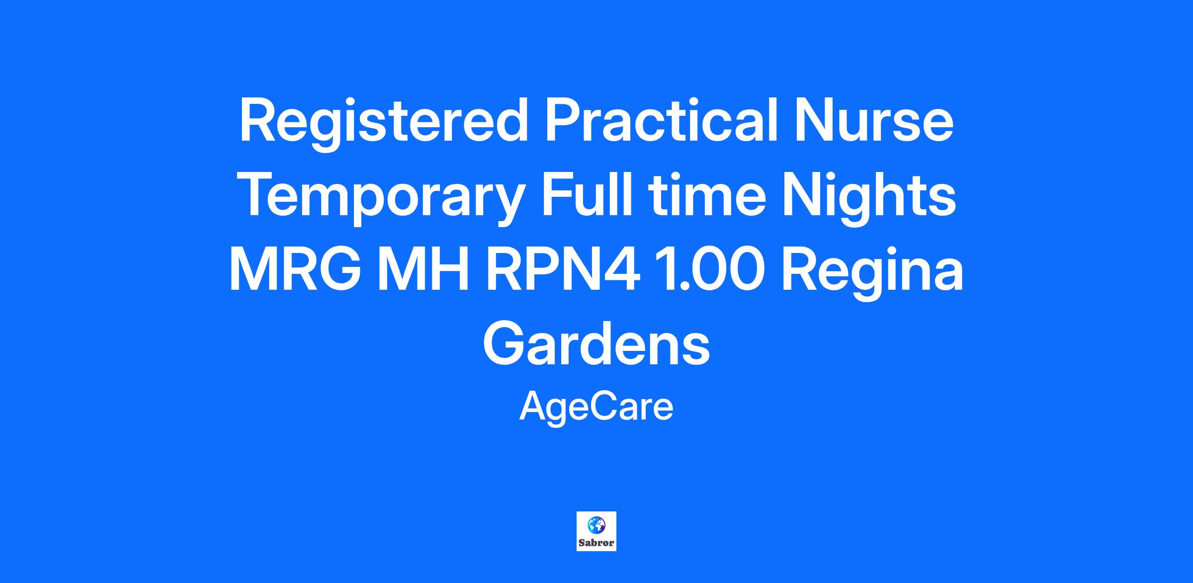 Registered Practical Nurse Temporary Full time Nights MRG MH RPN4 1.00 Regina Gardens