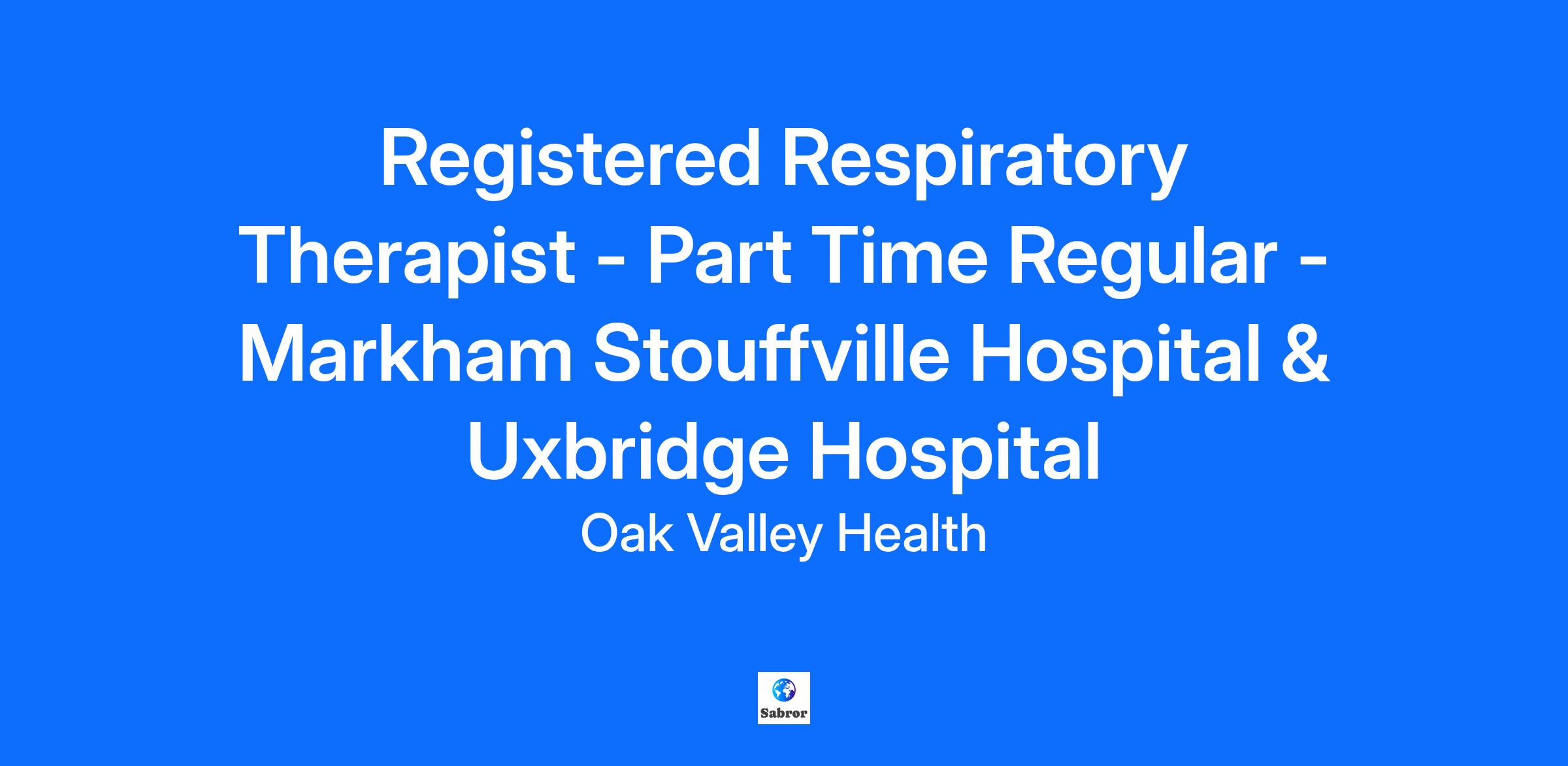 Please Note: If you are a current Oak Valley Health employee, apply to this job via the internal Workday application. Land acknowledgement: Oak Valley Health honours the traditional territory of the closest Indigenous communities, the Chippewas (chi-puh-waas) of Georgina Island and the Mississaugas of Scugog Island. The Haudenosaunee (Ho-de-no-shau-nee) and Anishinaabe (Ah-nishin-ah-beh) have lived, worked and existed on this land from time immemorial. This land is covered by Treaty 13 signed with the Mississaugas of the Credit, and the Williams Treaty signed with many Mississauga and Chippewa bands. We acknowledge that Indigenous Peoples were not asked to share their territory with settler populations and that we are all here as uninvited guests. We acknowledge and thank all generations of Indigenous Peoples across Turtle Island for their commitment, contributions, and protection of the land and its resources. Who you are: You encompass Oak Valley Health’s core values and live the words of respect, trust, commitment, compassion and courage You are a patient and/or client centered individual who performs at an exemplary standard You are a team player with excellent communication, critical thinking and prioritization skills What we are looking for: As a Registered Respiratory Therapist, you will become an integral member of the interprofessional team responsible for providing compassionate, patient and family centered care at Oak Valley Health (Markham Stouffville Hospital and Uxbridge Hospital). What you bring to the role: As a member of the corporate Respiratory Therapy Department, you will support both our Markham and Uxbridge Hospitals, primarily the Uxbridge Emergency Department. This role is a progressive approach where the scope of the RT is maximized and fully integrated into managing patient care along with the rest of the interprofessional team. The role will also provide some support to the Uxbridge Med/Surg inpatient unit for patients with respiratory care needs and in a critical care response capacity in a deteriorating patient scenario. Requirements include: Current registration with the College of Respiratory Therapists of Ontario and preferred membership to the Canadian Society of Respiratory Therapists and/or the Respiratory Therapy Society of Ontario Minimum 1 year of RRT work experience in acute care Preference given to applicants holding recent experience and demonstrated competency in ICU and ED and who have demonstrated the ability to assess the patients response to care, respond appropriately, problem solve and set priorities Current BCLS, ACLS and NRP is mandatory; current PALS is preferred Excellent communication, organizational and interpersonal skills Demonstrates initiative and the ability to function both independently and as a multidisciplinary team member in a fast-paced, demanding environment. Proficient computer skills Demonstrated good attendance record and performance record with the ability to maintain this same standard Demonstrates a commitment to a healthy and safe workplace for self and others (staff, patients, families, etc.) by taking all reasonable precautions and working in compliance with organization related policies, health and safety legislation and best practices and completing relevant mandatory education as required Work Schedule: Successful applicants should be available to work any shift, 7.5 and 11.25hrs, Days and Nights, weekdays, weekends and holidays. This position requires support to both the Markham site and the Uxbridge Site. Please note schedules may change due to operational needs. Compensation: OPCOM02 Range: $39.17 - $51.09 Who we are: Oak Valley Health is one of Ontario’s leading community healthcare organizations. Across our two hospital sites (Markham and Uxbridge) a Reactivation Care Centre (RCC), a Community Health Centre (CHC), and Hospital-to-Home programs, we provide high quality, patient-centred care to more than 468,000 patients each year. We offer diagnostic and emergency services, and deliver clinical programs in acute care medicine and surgery, addictions and mental health, and childbirth and children’s services. We are also proud to be part of the Eastern York Region North Durham Ontario Health Team (OHT). Our 542 physicians, 35 midwives, over 3,000 staff and 1,000 volunteers serve patients and families with an Honoured to Care mindset, and are focused on delivering an extraordinary patient experience to the residents of Markham, Whitchurch-Stouffville, Uxbridge and beyond. We are dedicated to providing access to the right care, at the right time, in the right place by the right people and at the right cost. Oak Valley Health Equity, Diversity, Inclusion and Belonging statement Oak Valley Health takes pride in serving some of Canada’s most diverse communities. We are committed to fostering an environment of equity and inclusivity where every person can work and receive care safely, openly and honestly. All qualified applicants will receive consideration and we encourage applications from Indigenous peoples, members of LGBTQ2+ communities, members of racialized groups, persons with disabilities, and all others who may contribute to the further diversification of Oak Valley Health. Furthermore, Oak Valley Health is committed to meeting the needs of all individuals in accordance with the Accessibility for Ontarians with Disabilities Act (AODA) and the Ontario Human Rights Code. Should you require accommodations during the recruitment and selection process, please contact Human Resources. We are honoured to be recognized as one of Forbes Canada's Best Employers for Diversity. We ranked within the top 150 organizations across the country. Learn more about our commitment to EDIB. Oak Valley Health is one of Ontarioʼs leading community health care organizations. Across our two hospitals, Markham Stouffville Hospital and Uxbridge Hospital, as well as our Reactivation Care Centre, we deliver safe, high-quality c