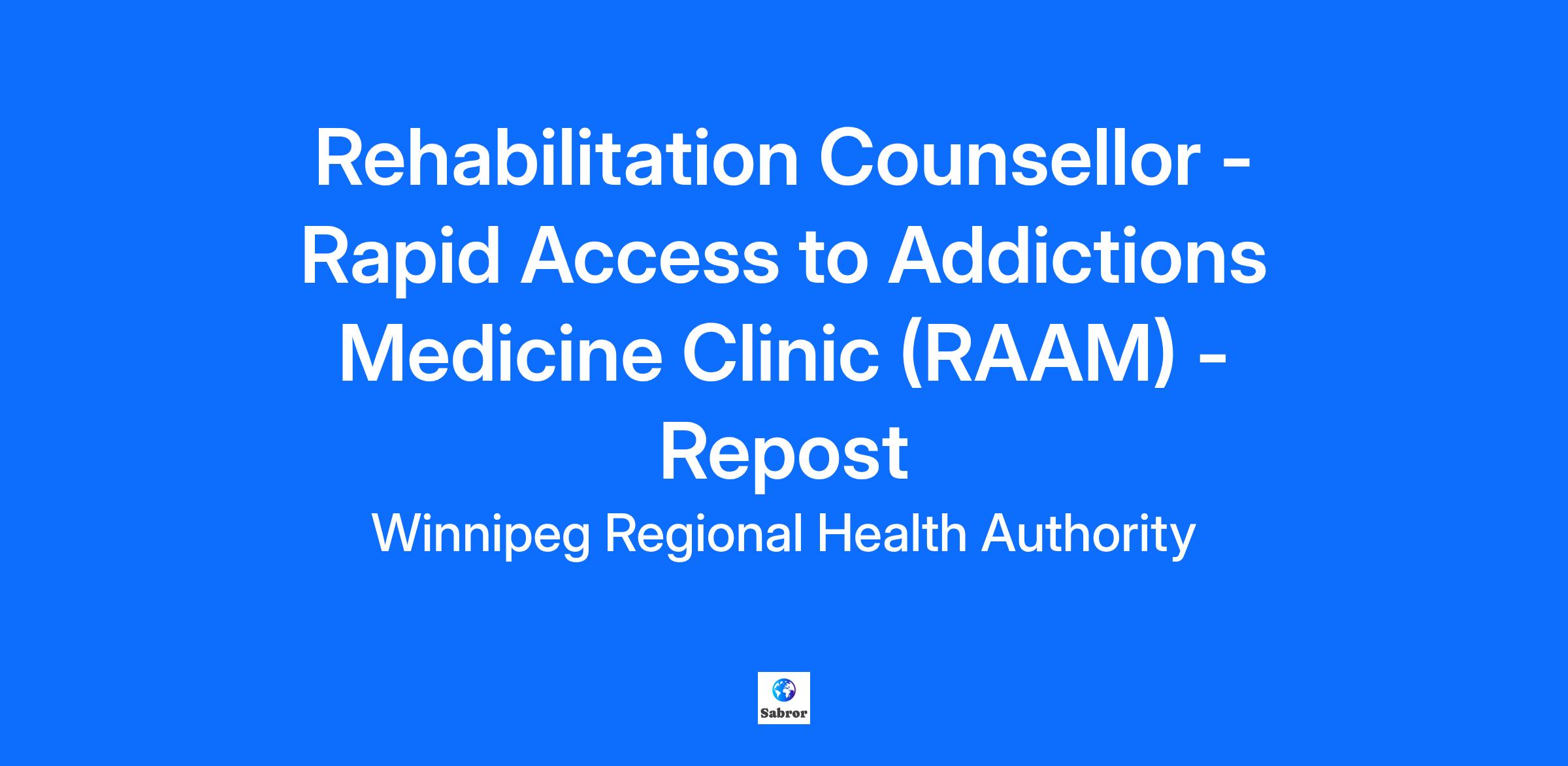 Rehabilitation Counsellor - Rapid Access to Addictions Medicine Clinic (RAAM) - Repost