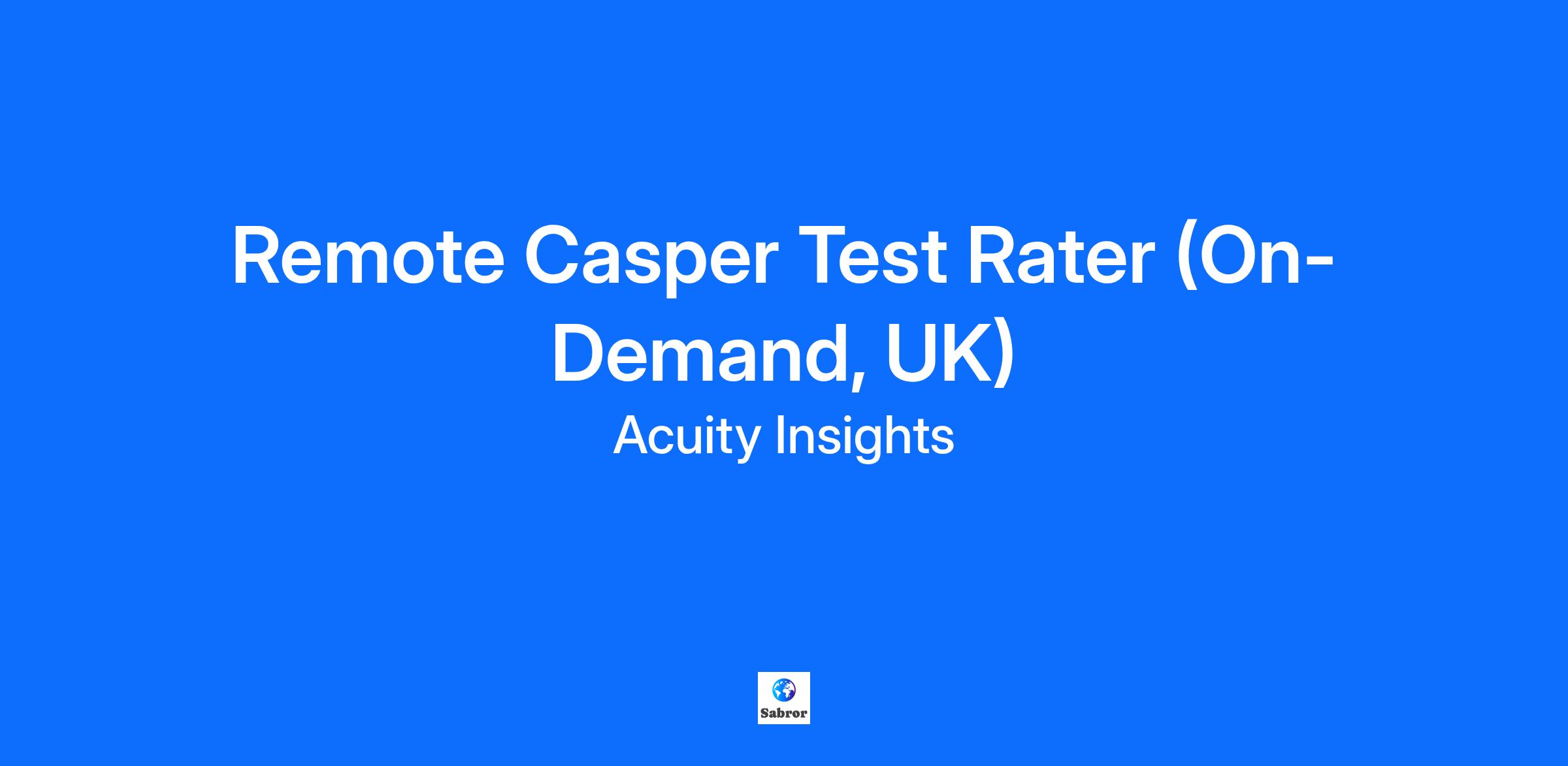 Imagine a world where everyone’s full potential is recognized and nurtured. That’s what we’re building at Acuity Insights. We believe higher education admissions should look beyond grades and consider the whole person—their experiences, strengths, and unique qualities. Our flagship assessment, Casper, helps make this possible. It’s an online test that presents real-life scenarios to evaluate important soft skills like empathy, self-awareness, resilience, and ethical judgment. By looking beyond academic performance, Casper helps create more diverse applicant pools and supports admissions teams in selecting students who are best prepared for success. Rating a Casper test is a critical part of that work, and we’d like to invite you to join our Rater community as an on-demand contractor. As a Rater, you have the chance to help our U.K.-based partners make informed admission decisions. It is a role that: Is open to people with a variety of backgrounds and experiences. Is flexible and remote, which means you can work at your own pace from anywhere within the U.K. Provides you with the opportunity to supplement your income with socially impactful work. What You’ll Do as a Casper Rater Become a certified Rater. Complete virtual, scientifically backed, onboarding training to learn how to rate test responses of applicants to academic programs, including how to combat implicit bias. Complete ongoing training and mandatory annual recertification. Participate in ongoing refresher training and complete our required paid annual Rater recertification, ensuring your quality of work remains high. Rate and score Casper responses. Read and review applicant text and video responses, compare them to the overall pool of test takers, and assign scores following scoring guidelines. Share feedback. Provide feedback to help improve and optimize the Casper test, platforms, and content. Foundations for Success as a Casper Rater Consistent Engagement & Professionalism. You demonstrate high commitment by consistently participating in rating sessions and upholding a professional demeanour, recognizing the significance of your contribution. Ongoing Skill Development. You regularly engage in the required training and feedback activities to stay informed on best practices and ensure that your evaluations are current and reliable. Effective Communication & Responsiveness. You exhibit clear and effective communication, responding promptly to surveys and feedback, and reflecting a proactive and collaborative mindset. Empathy & Understanding. You approach every response with empathy and fairness, recognizing the impact your evaluations can have on an applicant’s academic journey. Bias Awareness & Integrity. You maintain strong self-awareness, actively reflecting on and addressing potential biases to provide objective and equitable evaluations. Payments We issue payments for work you’ve completed via PayPal once a month. While there’s no guaranteed minimum work, you can access a quarterly testing schedule, which allows you to choose when to work and estimate potential earnings. Pay may include activities outside of rating, like job training and participating in research studies. To Qualify as a Casper Test Rater, you must: Be a U.K. citizen. Currently residing in the U.K. Have your own desktop/laptop computer to work on. Have no plans to apply to and become a student in a program using Casper in the next 2-3 years. Communicate effectively and proactively in writing, enabling you to raise issues and clearly articulate Casper score choices. Demonstrate you have the following soft skills: Communication Self-awareness Professionalism Empathy We welcome applicants from all walks of life across the U.K., which means you’ll also be part of a diverse group of Raters! Steps to Become a Casper Rater Submit Your Application. Complete the online application form. It includes multiple questions to determine if you meet the basic qualifying criteria to become a Casper Rater. Take a Mini-Casper and Reading Comprehension Test. If the basic criteria are met, you’ll receive an invitation to take a shortened version of the Casper test. Your responses will be reviewed and rated to determine if you share the four aspects listed in the previous section. You’ll also be required to take a reading comprehension test aimed at evaluating your ability to read and understand written information. This step may take up to 25 minutes to complete. Meet a Member of the Rating Team. Successful candidates will be invited to a 20-minute 1-1 video conversation with a member of our Rating Team to verify your information. This is also an opportunity for you to ask any questions you still have about rating and the role. Complete Paid Online Rater Training. You will receive an invitation to complete our scientifically backed Rater training, which you must complete within 5 business days. Regardless of the outcome, you will be compensated for your time. Become a Certified Rater. You’ve successfully completed the necessary steps to become a Casper Test Rater. You’re now certified and can start rating Casper test responses! Casper Rater Training Our Casper Rater training program will equip you with the skills and knowledge needed to make fair, unbiased judgments. It includes 8 modules covering topics such as Fundamental Rating Principles, Quality Assurance, and Implicit Bias Training. Throughout the program, you will complete knowledge checks, activities, and exercises that assess and deepen your understanding of the rating criteria. These interactive elements reinforce learning by enabling you to apply knowledge in realistic scenarios, building confidence and accuracy in your evaluations. Before certification, you must successfully complete a calibration assessment and demonstrate consistent alignment with benchmark ratings to ensure your readiness for live assessments. About Casper Casper was invented in 2010 by Acuity Insights co-founders