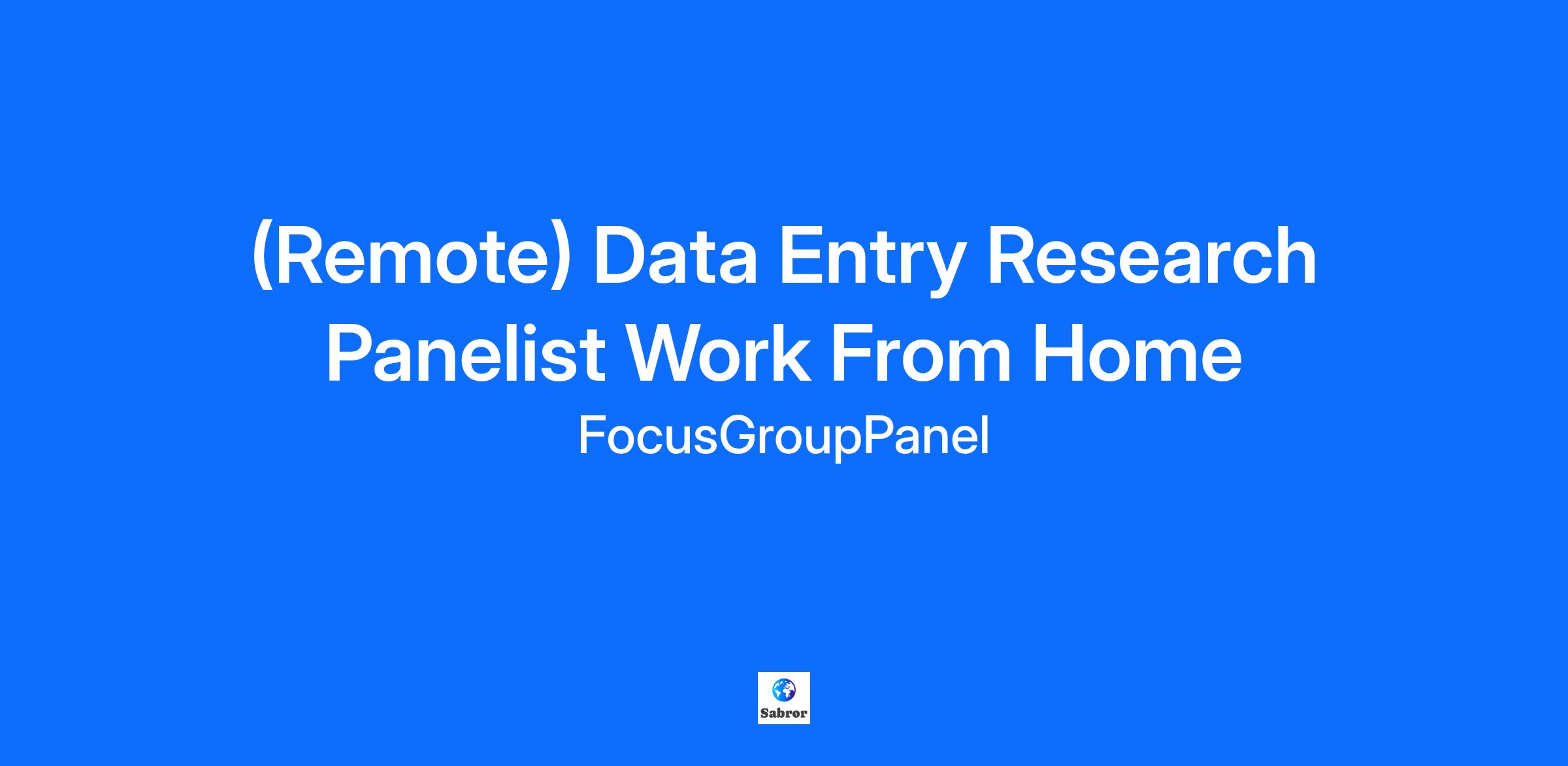 (Remote) Data Entry Research Panelist Work From Home