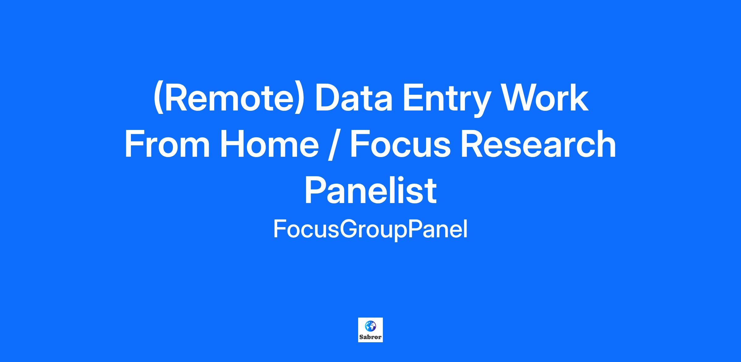 (Remote) Data Entry Work From Home / Focus Research Panelist