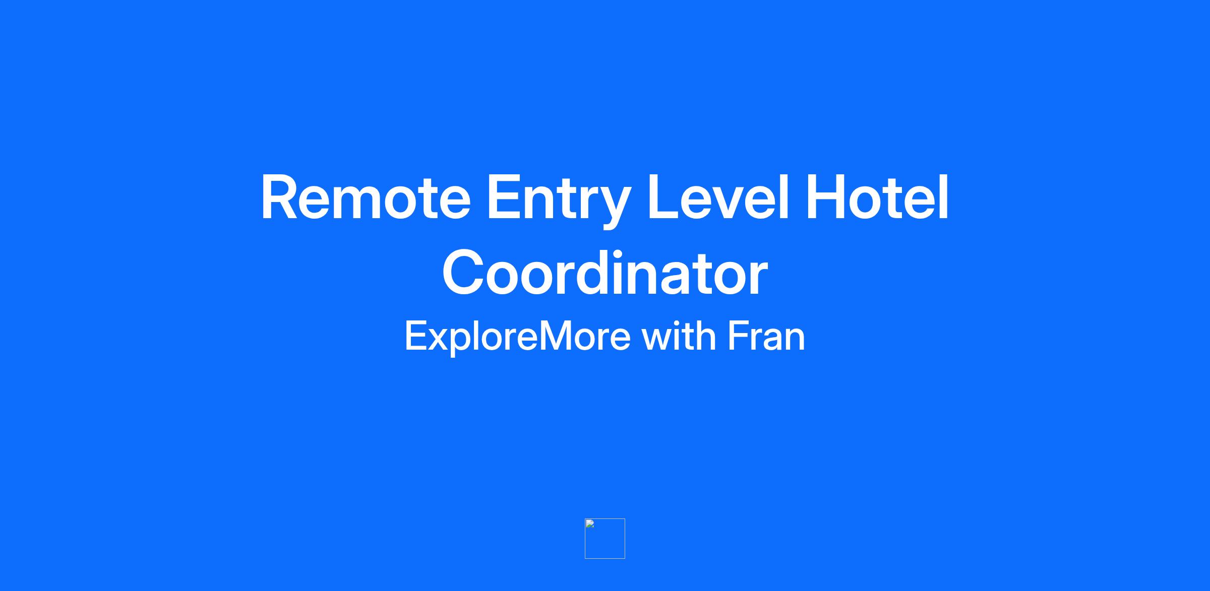 We are seeking a motivated and detail-oriented Entry Level Hotel Coordinator to support our travel planning team. In this role, you will assist with researching hotel accommodations, coordinating reservations, and helping clients select the best lodging options for their trips. This is an excellent opportunity for someone who enjoys hospitality, organization, and providing excellent service in a remote work setting. Key Responsibilities: Research and compare hotel options based on client preferences and budgets Prepare and organize quotes, confirmations, and itinerary details Assist clients with basic hotel inquiries and reservation updates Accurately maintain booking information and client records Collaborate with travel partners and hotel suppliers when needed Provide professional and courteous communication with clients and vendors Strong communication and customer service skills High attention to detail and ability to multitask Proficiency with basic computer applications (email, Microsoft Office or Google Workspace, internet navigation) Comfortable researching hotels and navigating booking platforms Reliable internet connection and designated workspace at home Previous experience in hospitality, administration, or customer service is helpful but not required Flexible remote work schedule Career growth potential in the hospitality and travel industry Supportive and collaborative team environment Opportunity to gain valuable hotel and travel industry experience Access to exclusive travel perks and discounts (after meeting eligibility requirements)