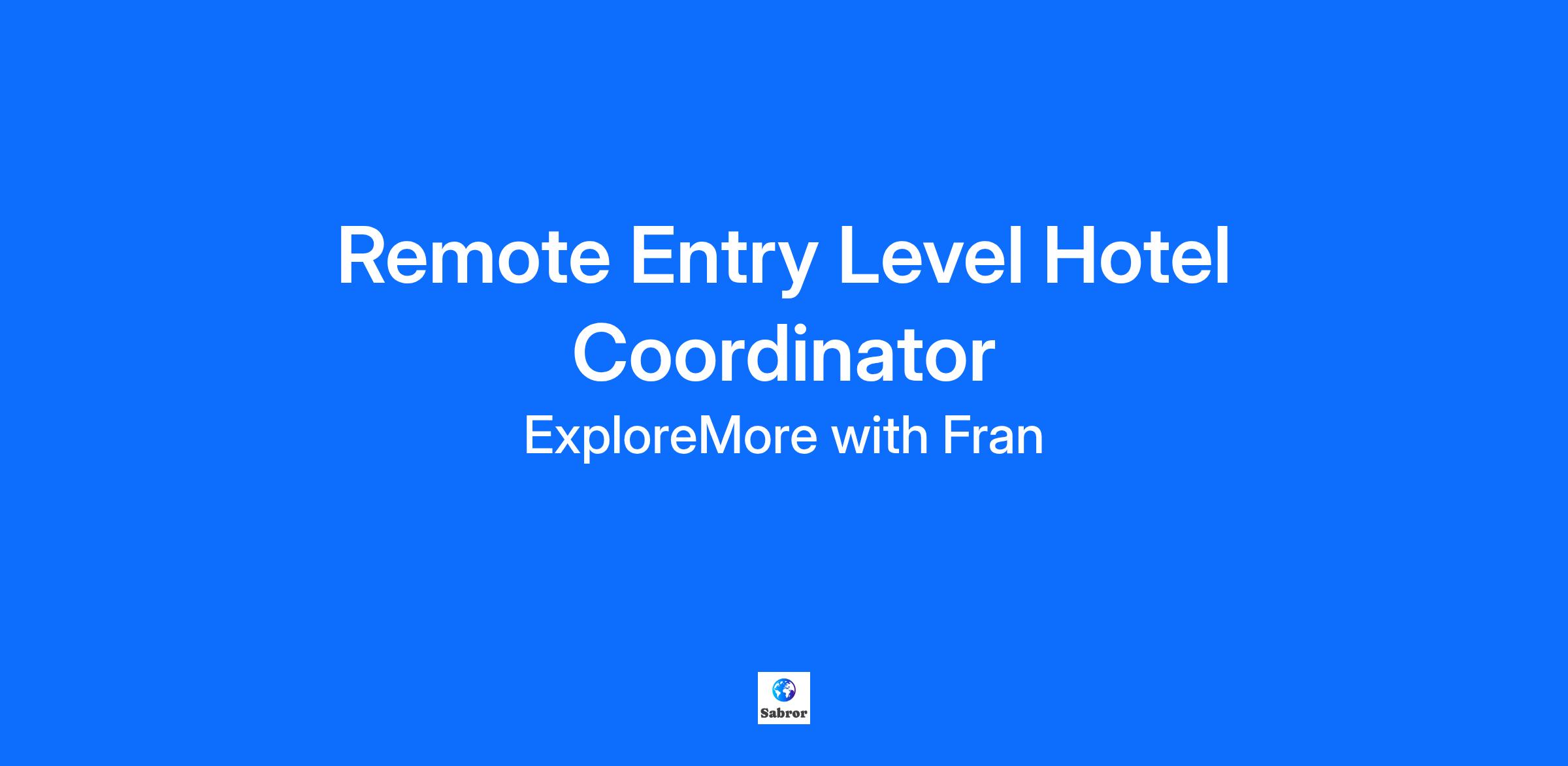 We are seeking a motivated and detail-oriented Entry Level Hotel Coordinator to support our travel planning team. In this role, you will assist with researching hotel accommodations, coordinating reservations, and helping clients select the best lodging options for their trips. This is an excellent opportunity for someone who enjoys hospitality, organization, and providing excellent service in a remote work setting. Key Responsibilities: Research and compare hotel options based on client preferences and budgets Prepare and organize quotes, confirmations, and itinerary details Assist clients with basic hotel inquiries and reservation updates Accurately maintain booking information and client records Collaborate with travel partners and hotel suppliers when needed Provide professional and courteous communication with clients and vendors Strong communication and customer service skills High attention to detail and ability to multitask Proficiency with basic computer applications (email, Microsoft Office or Google Workspace, internet navigation) Comfortable researching hotels and navigating booking platforms Reliable internet connection and designated workspace at home Previous experience in hospitality, administration, or customer service is helpful but not required Flexible remote work schedule Career growth potential in the hospitality and travel industry Supportive and collaborative team environment Opportunity to gain valuable hotel and travel industry experience Access to exclusive travel perks and discounts (after meeting eligibility requirements)